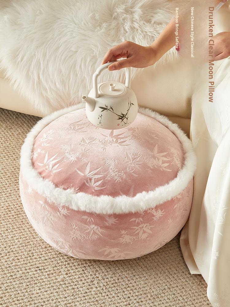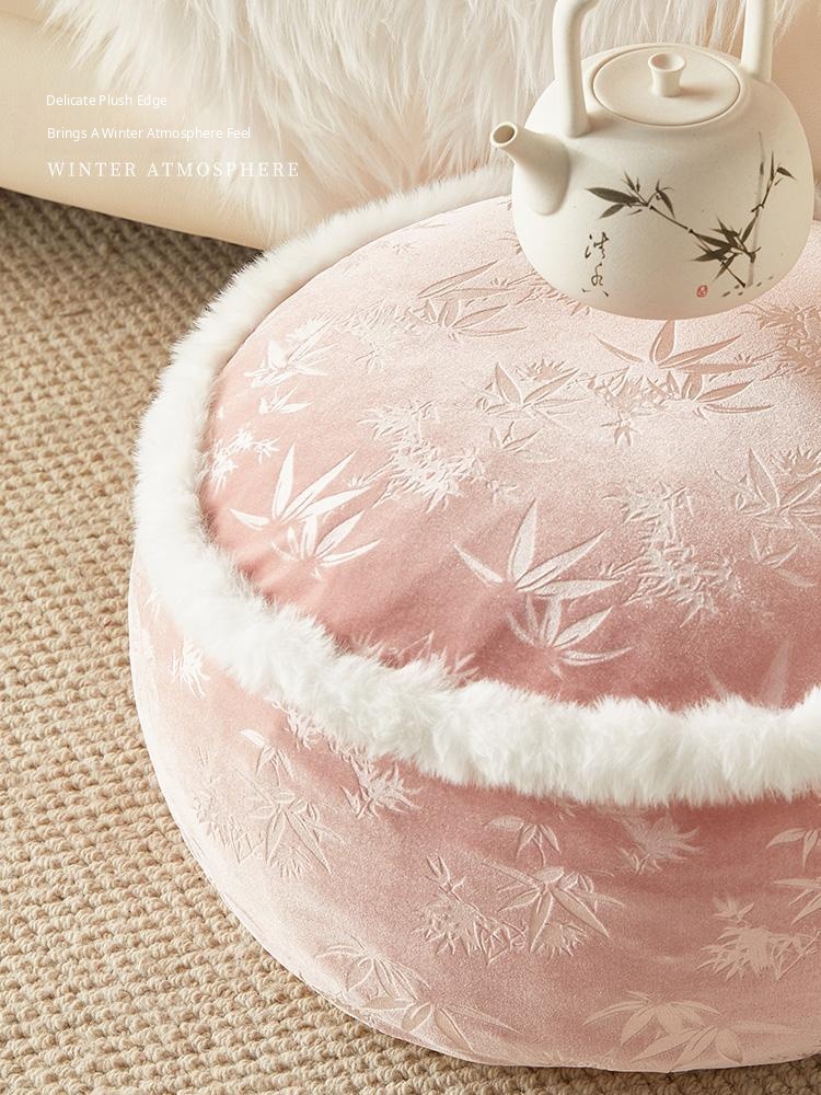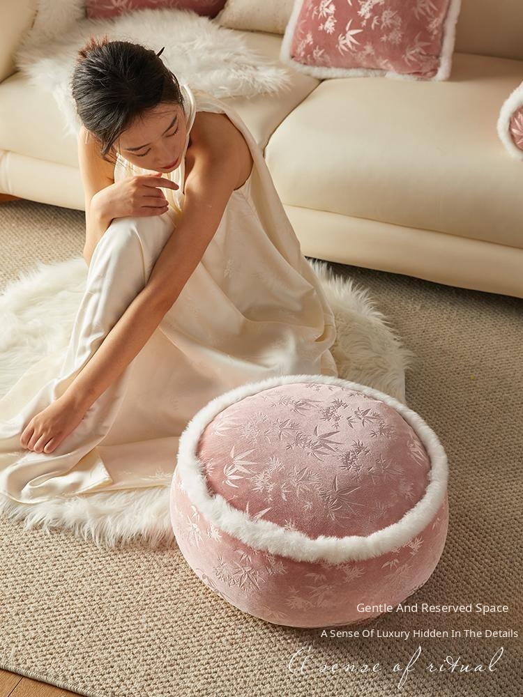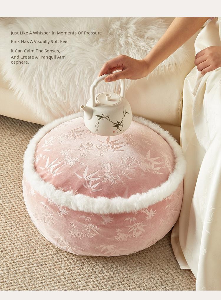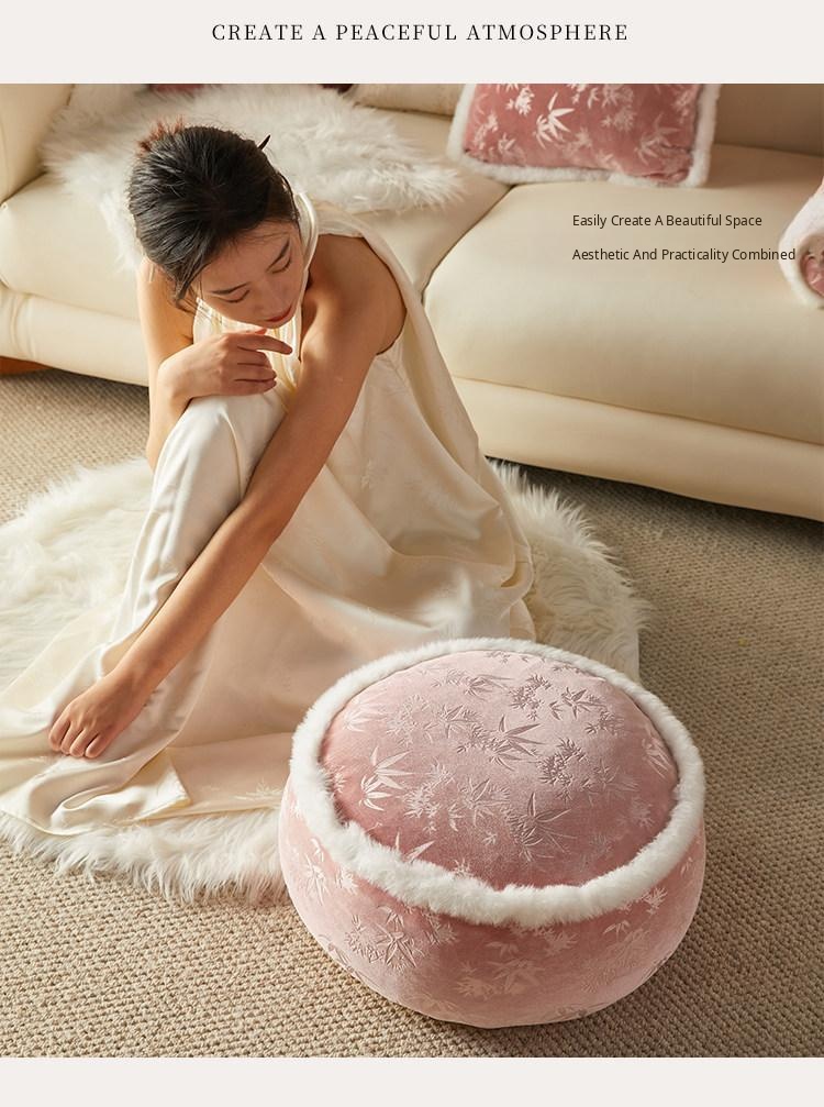 Elegant New Chinese-Style Floor Cushion - Premium Pink Meditation Stool for Living Room and Balcony, Perfect for Winter Sitting and Relaxation