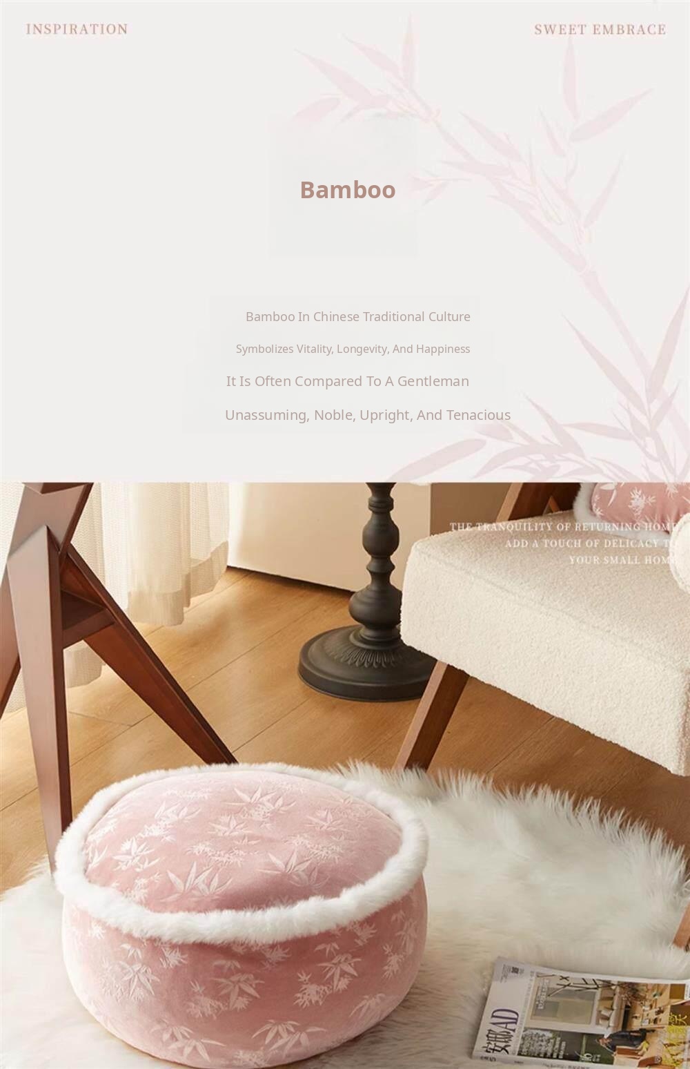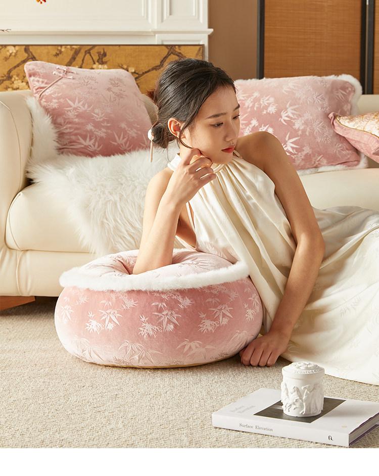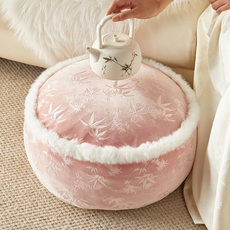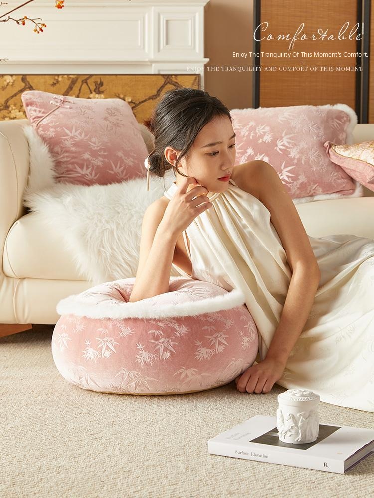 Elegant New Chinese-Style Floor Cushion - Premium Pink Meditation Stool for Living Room and Balcony, Perfect for Winter Sitting and Relaxation