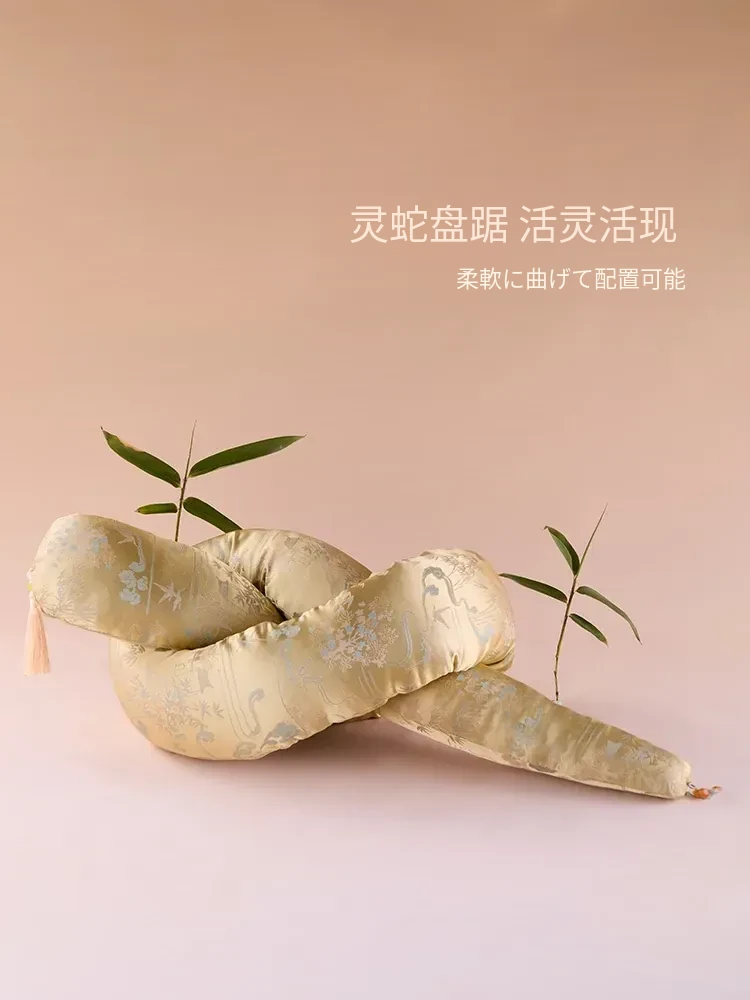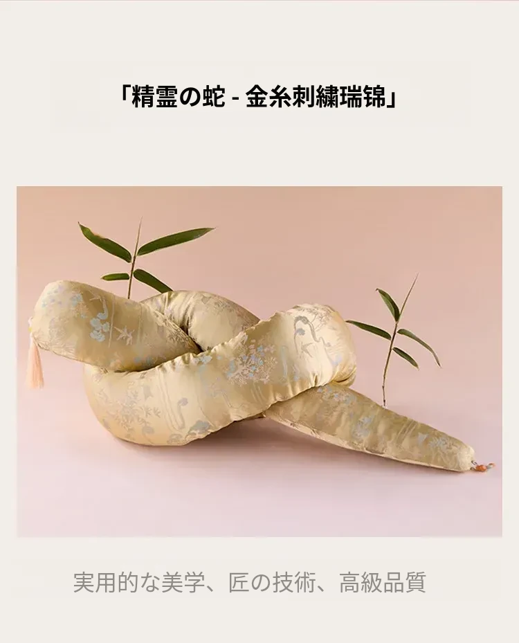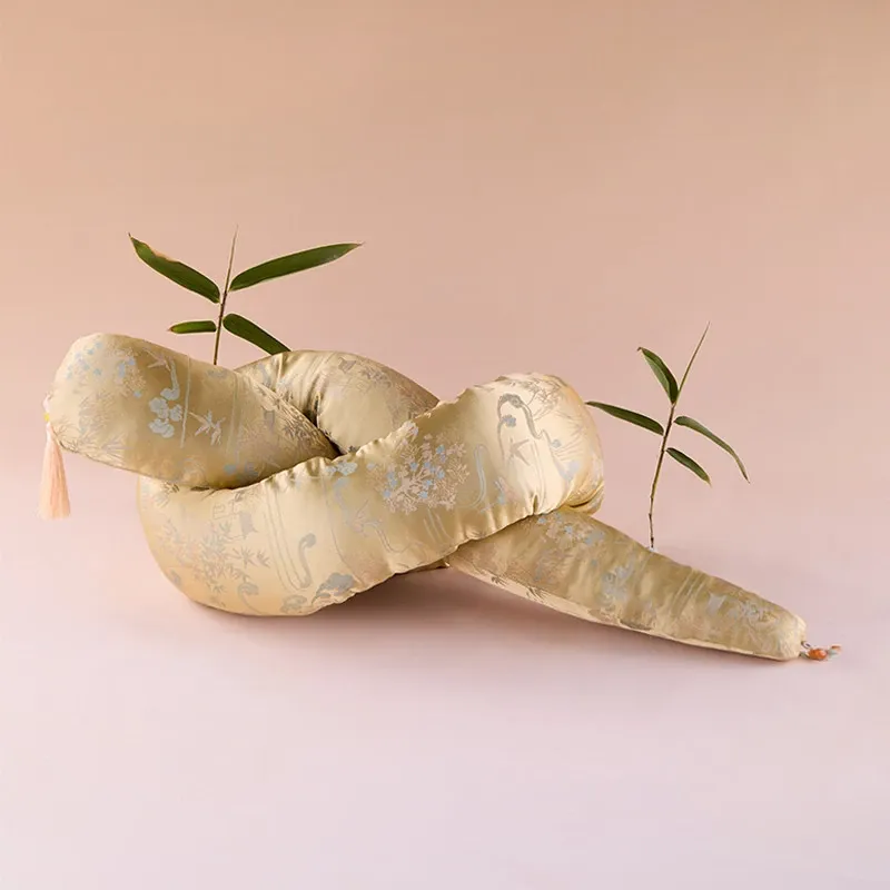 灵蛇绕福長条抱枕-金糸刺繍錦