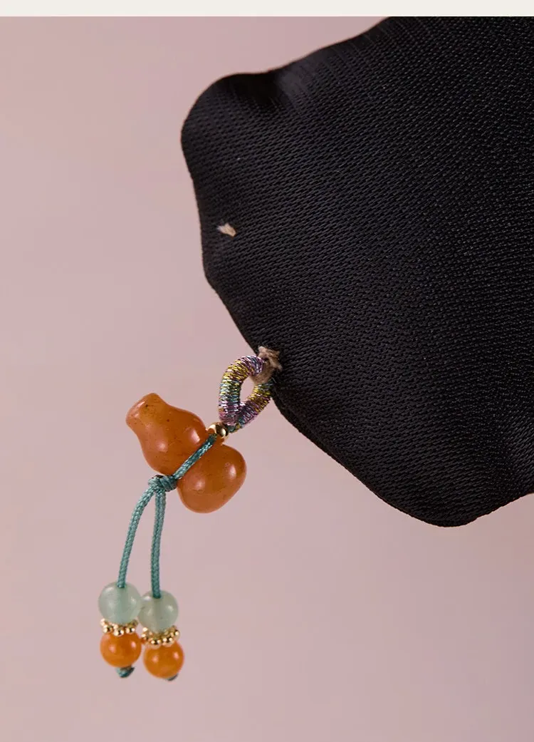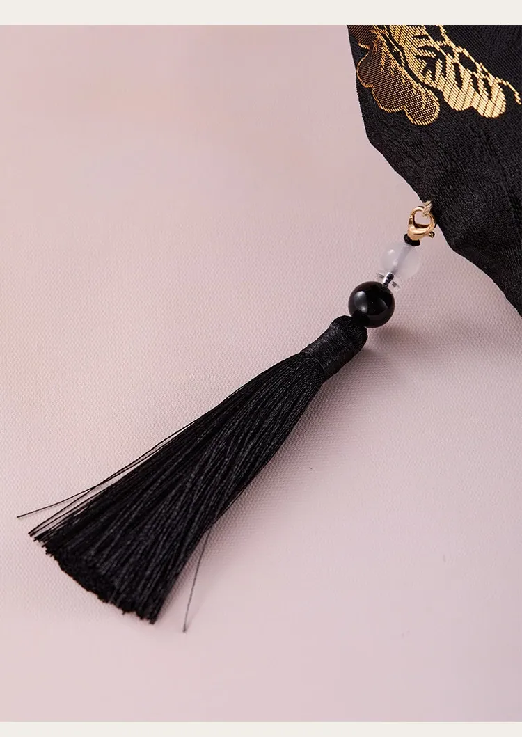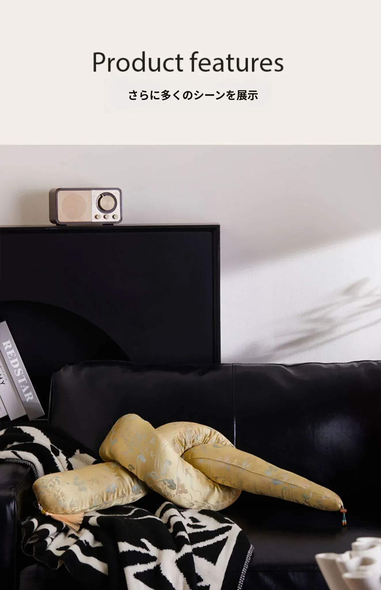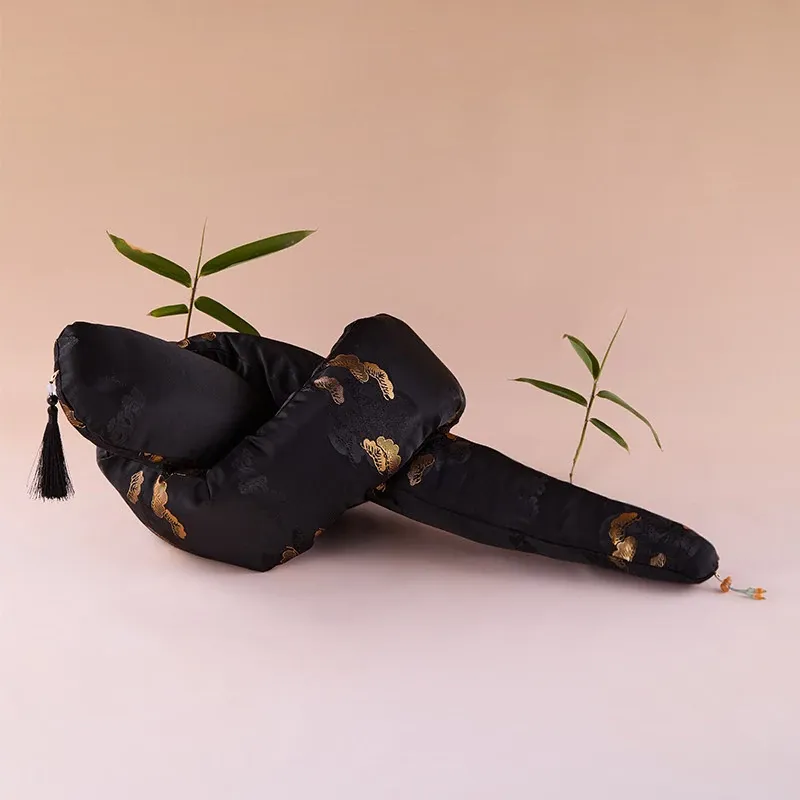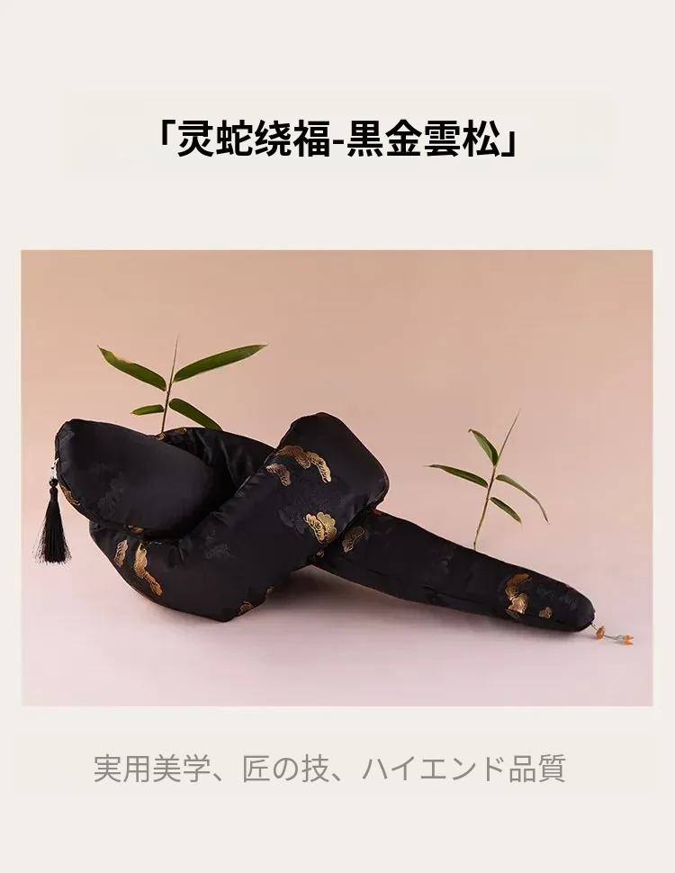 灵蛇绕福長条抱枕-黒金云松