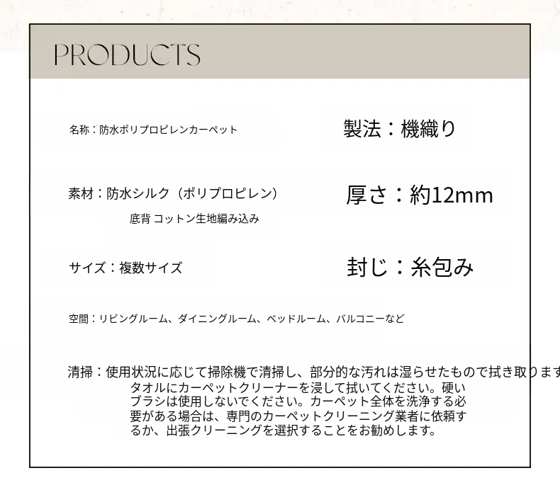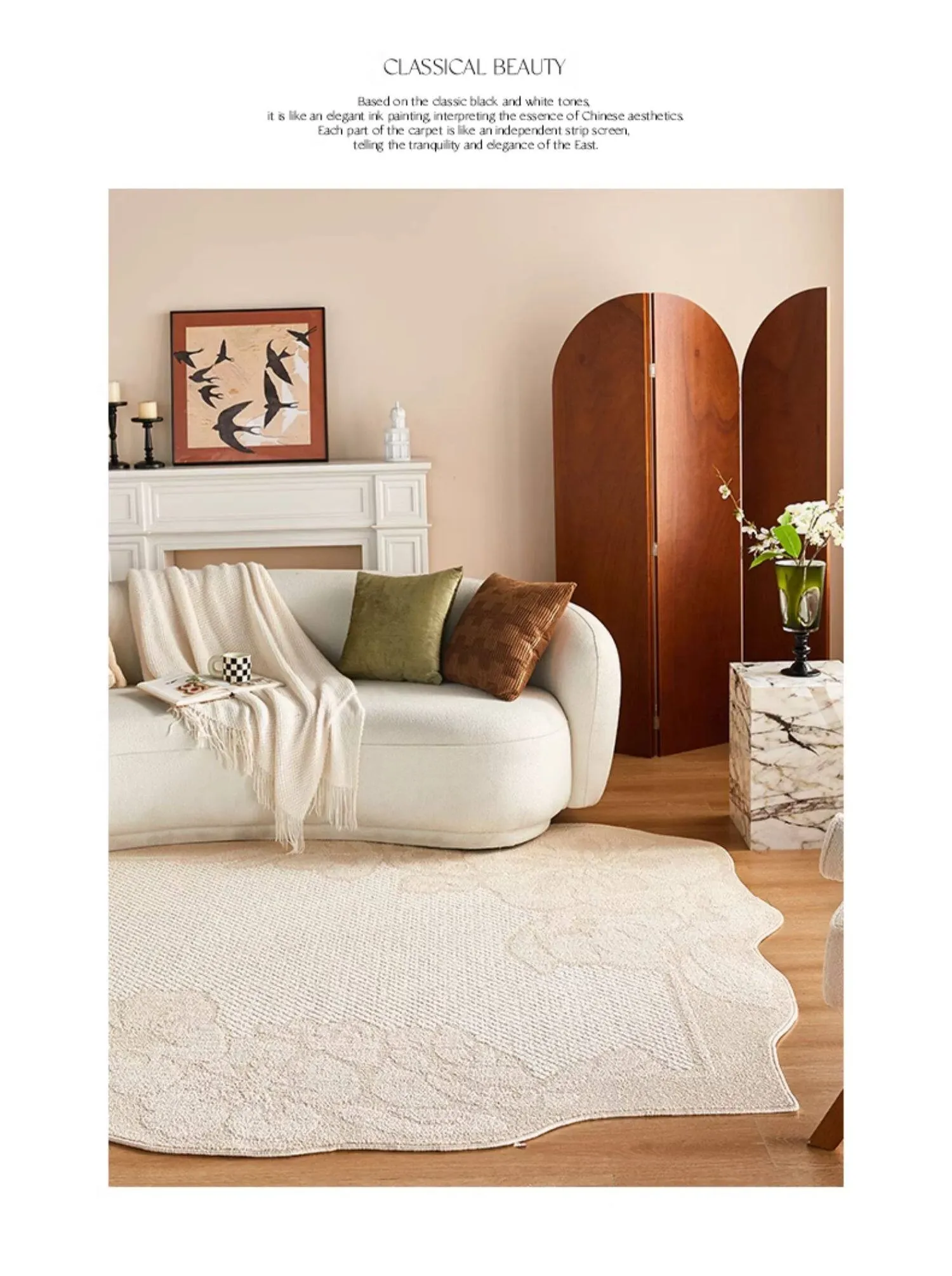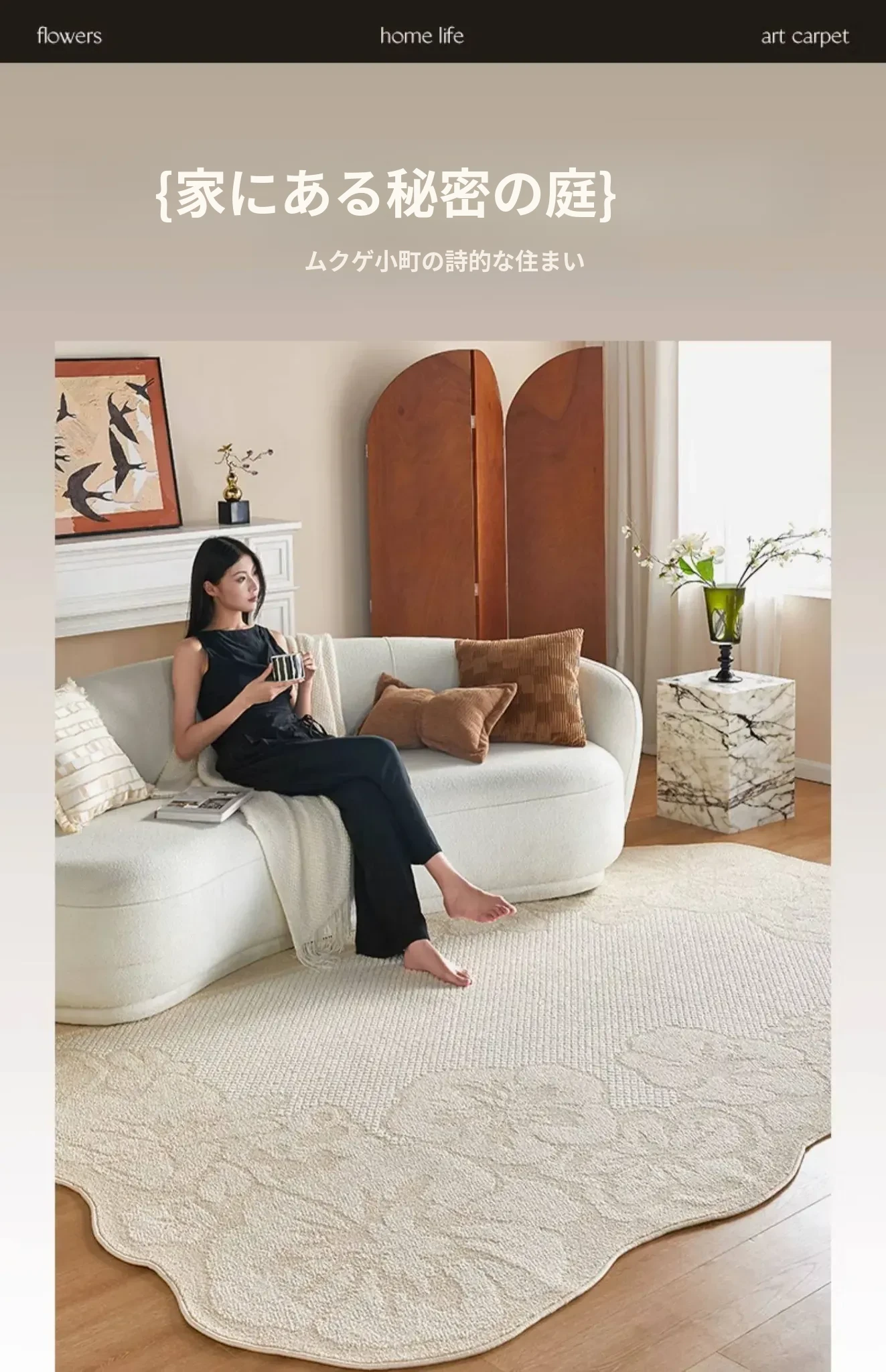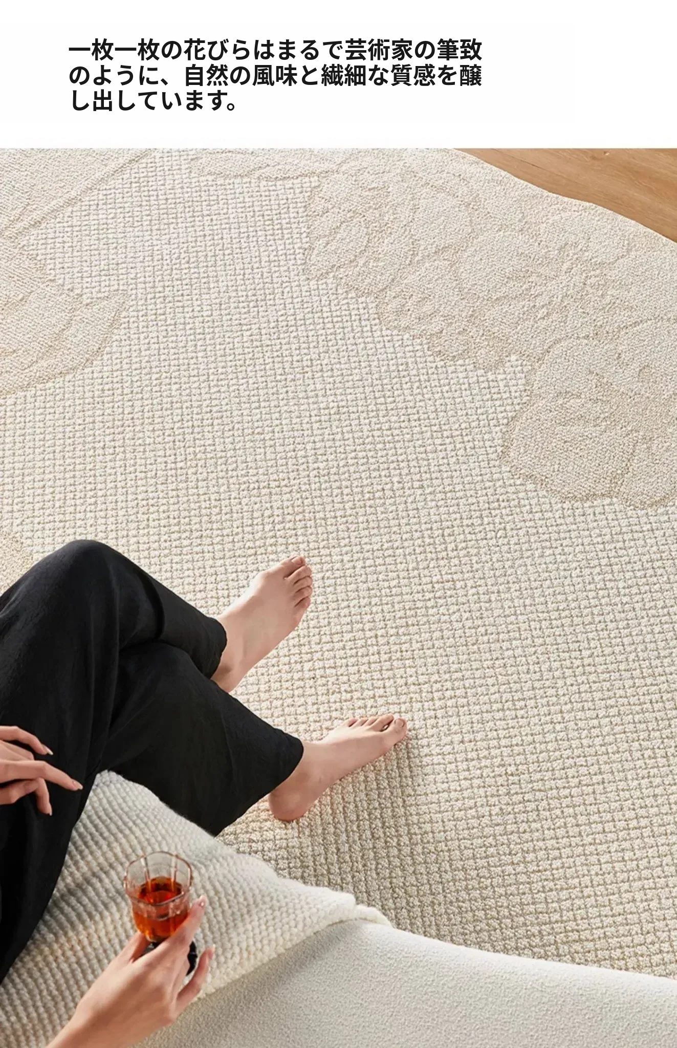 フランス風クリーミーなリビングルームラグ、防水・防汚でカジュアルなソファーテーブルマット、耐汚れ・厚手のクローゼットマット。おしゃれで快適な空間を演出!