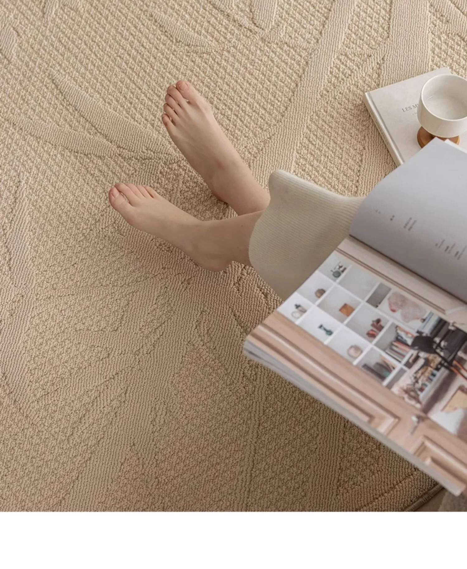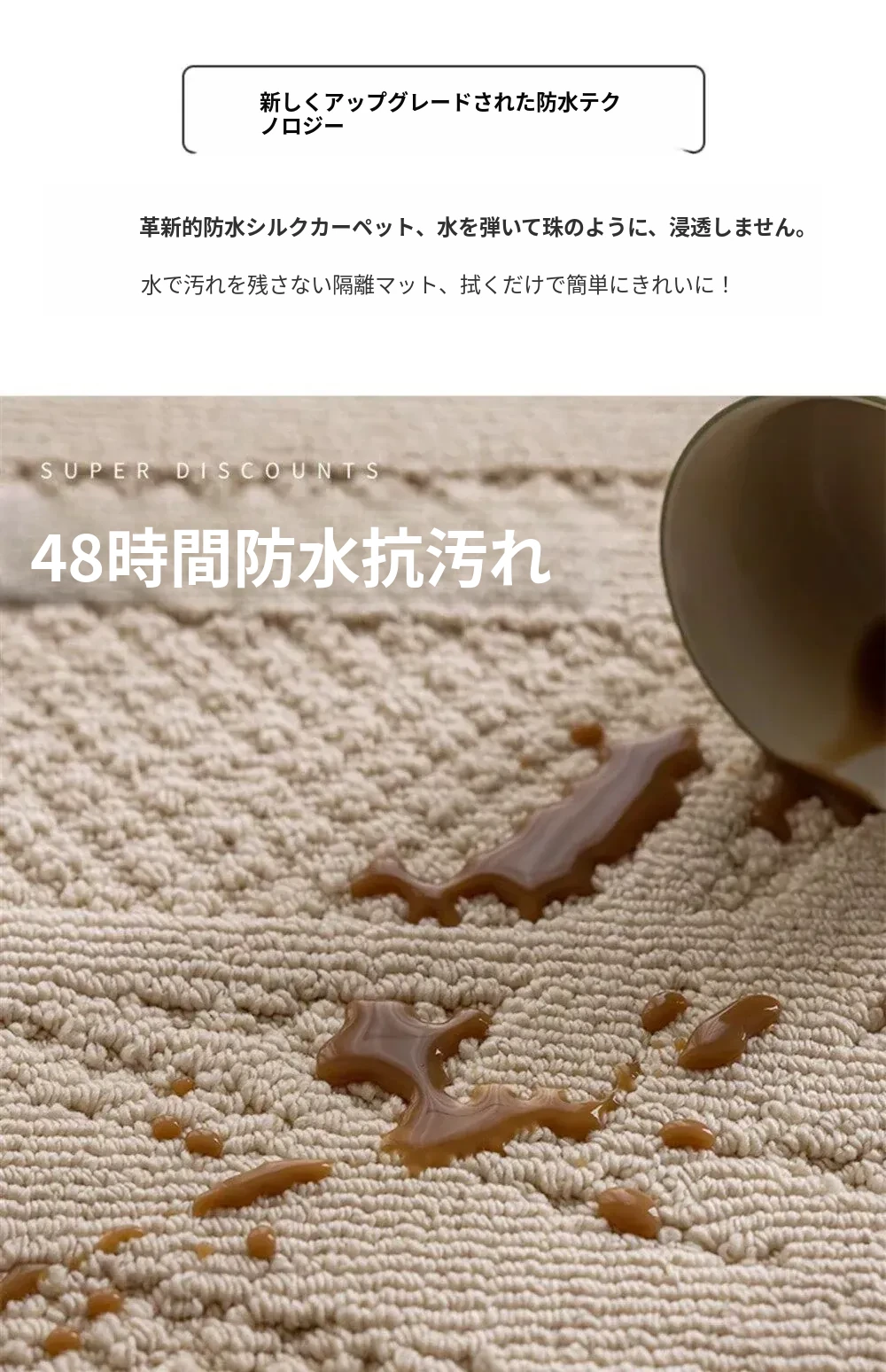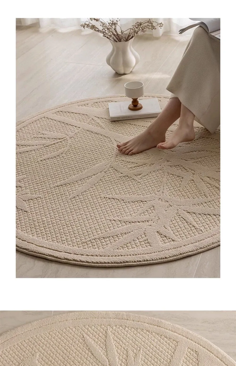 フランス風クリームカラーのリビングルーム用ロッキングチェアマット、一人掛けソファマット、クローゼット用防水・汚れ防止・手入れ不要のコーヒーテーブルマット。おしゃれで実用的なインテリアを実現!