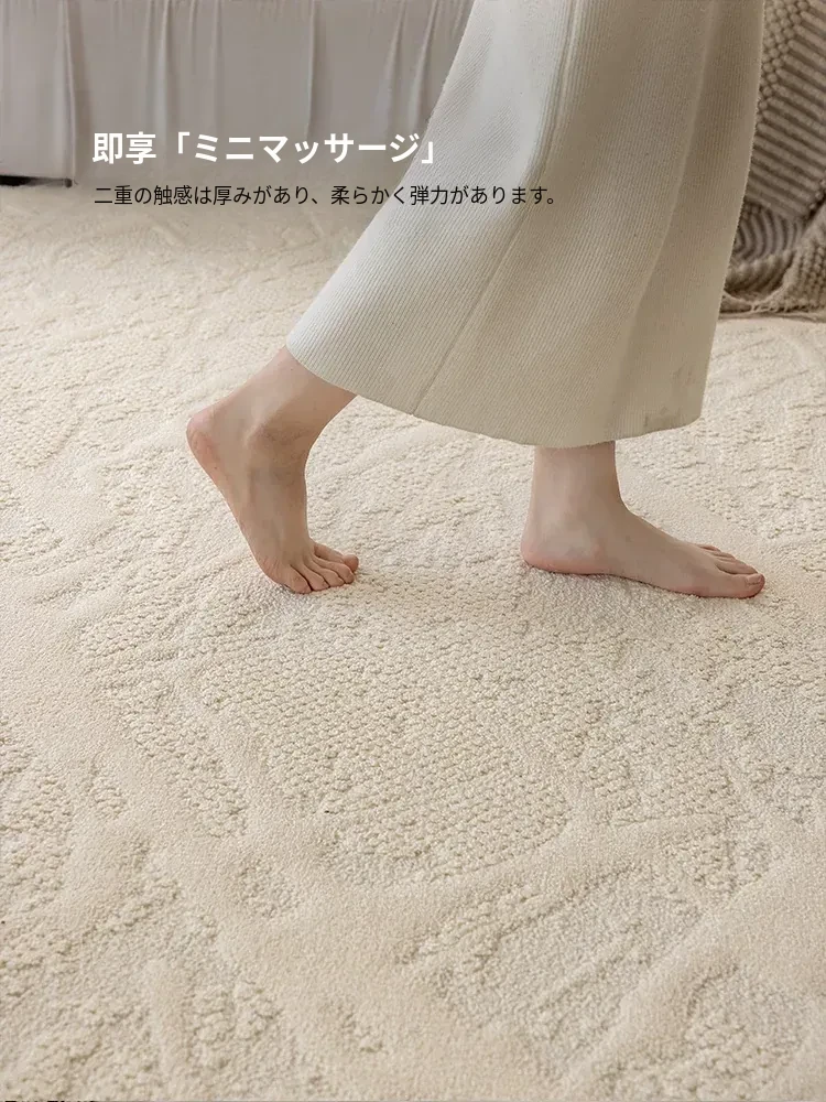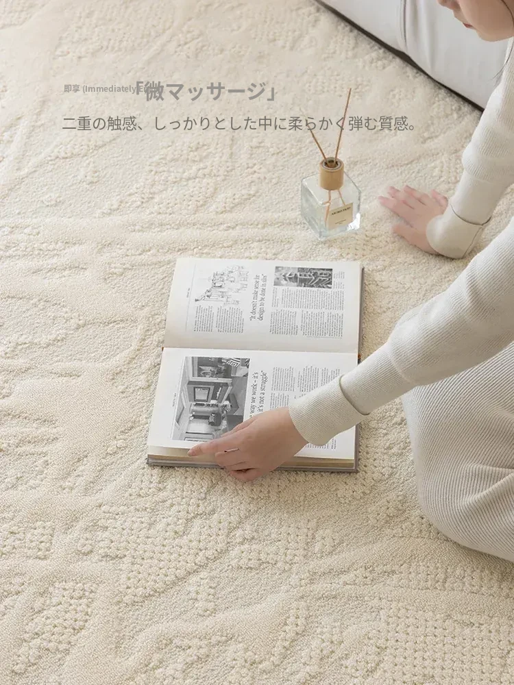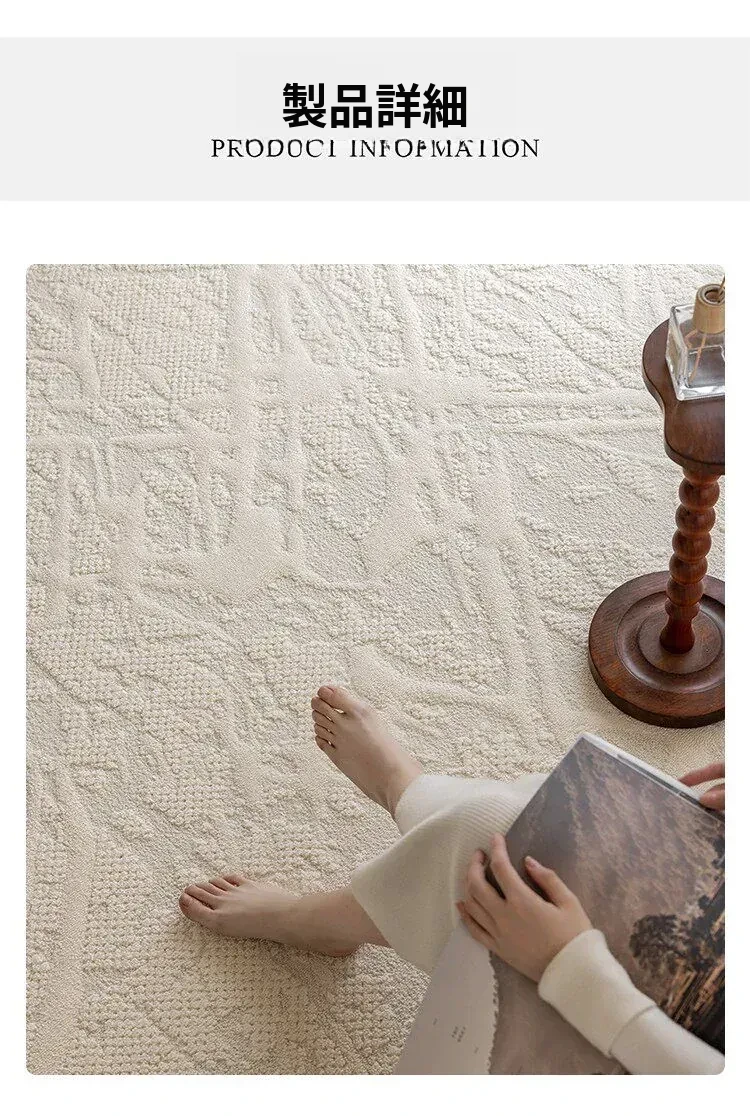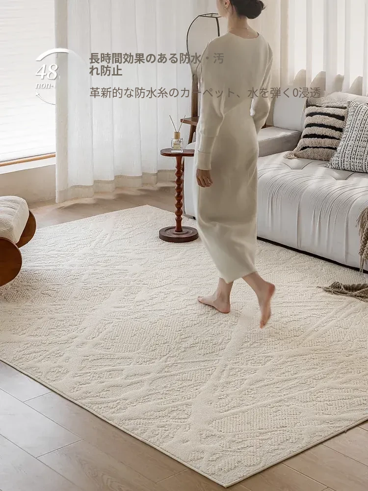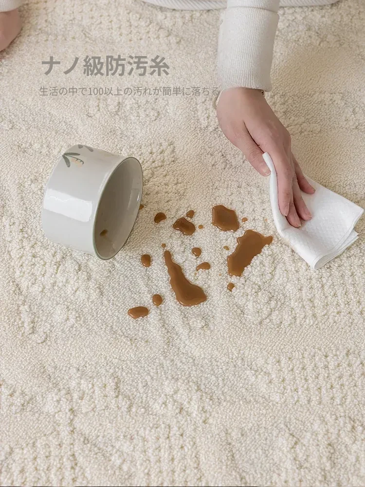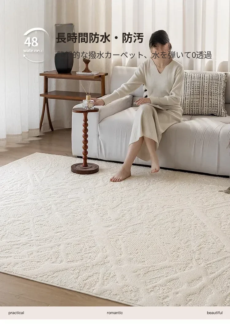 フランス風クリームカラーのリビングルームラグ - 防水・防汚・洗濯不要!厚手で防音効果もあり、高級感溢れるソファ用ブランケットとしても最適な茶卓マット。