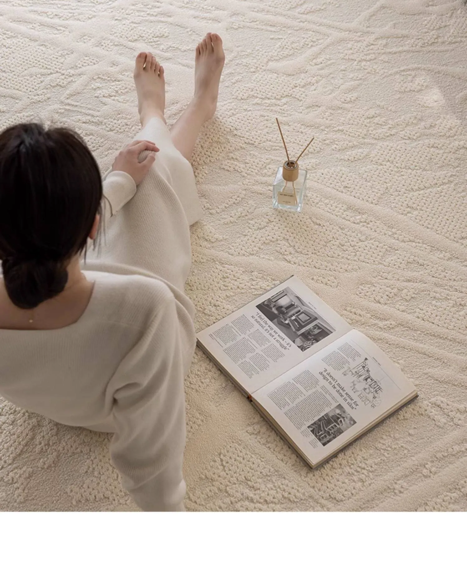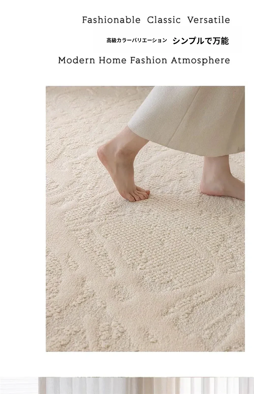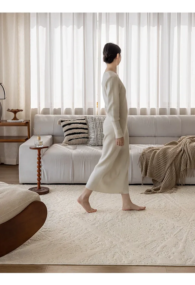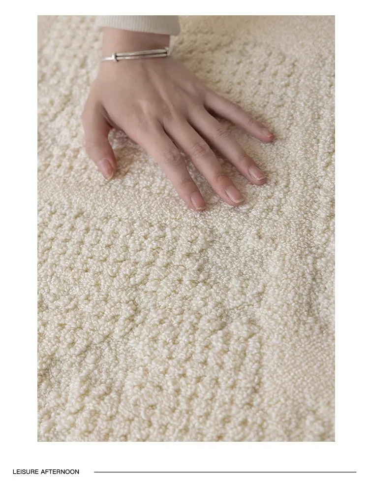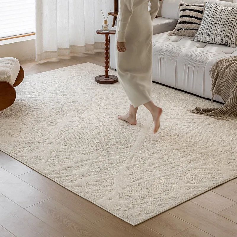 フランス風クリームカラーのリビングルームラグ - 防水・防汚・洗濯不要!厚手で防音効果もあり、高級感溢れるソファ用ブランケットとしても最適な茶卓マット。