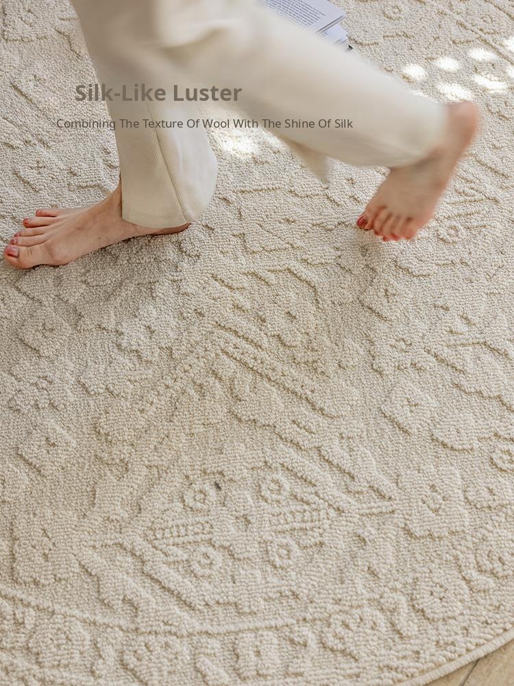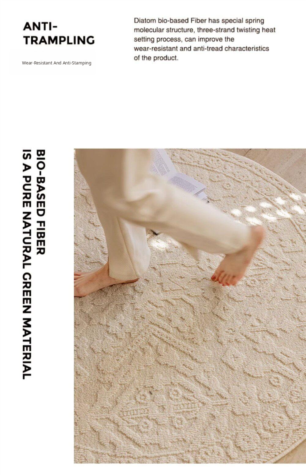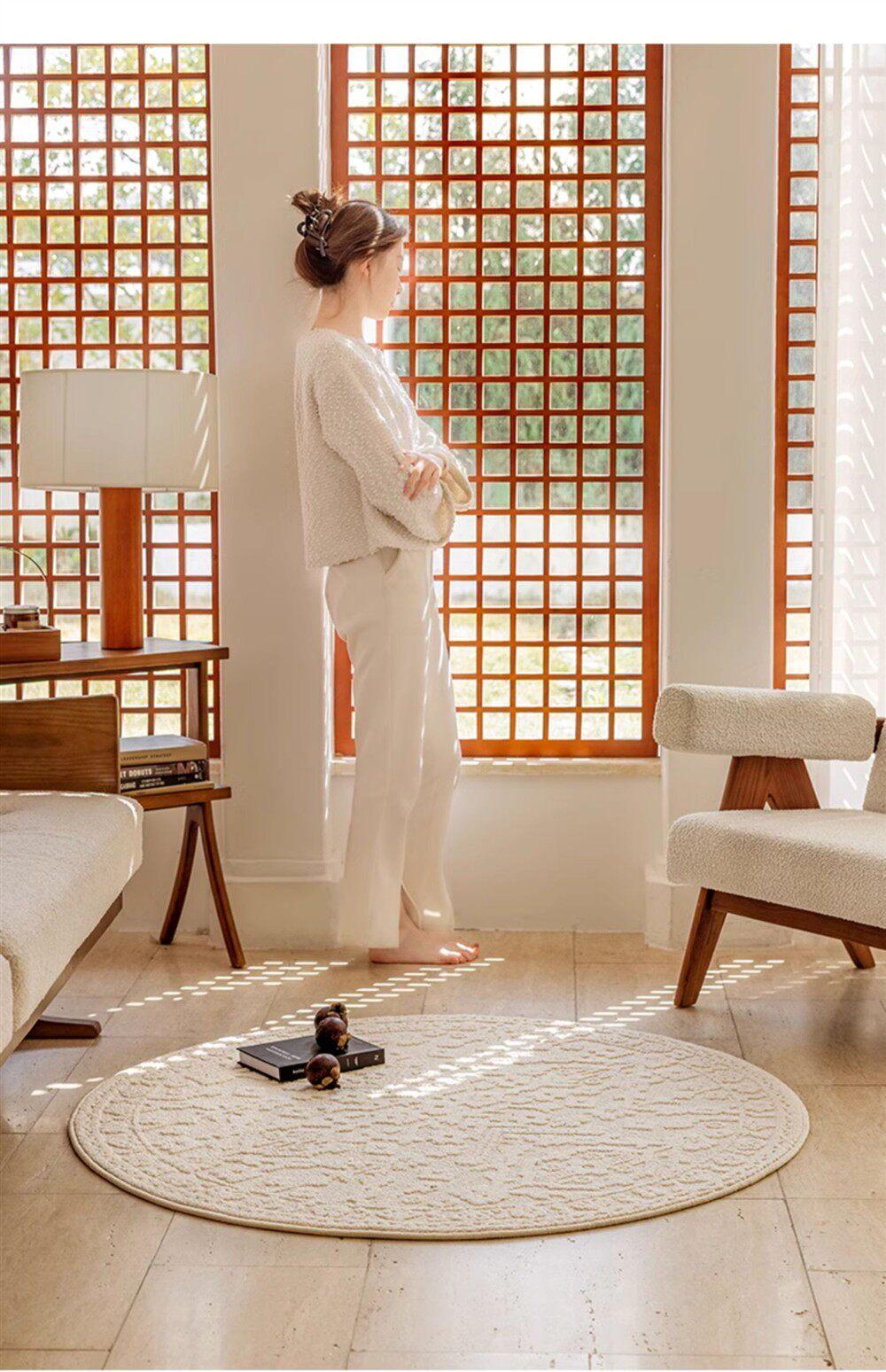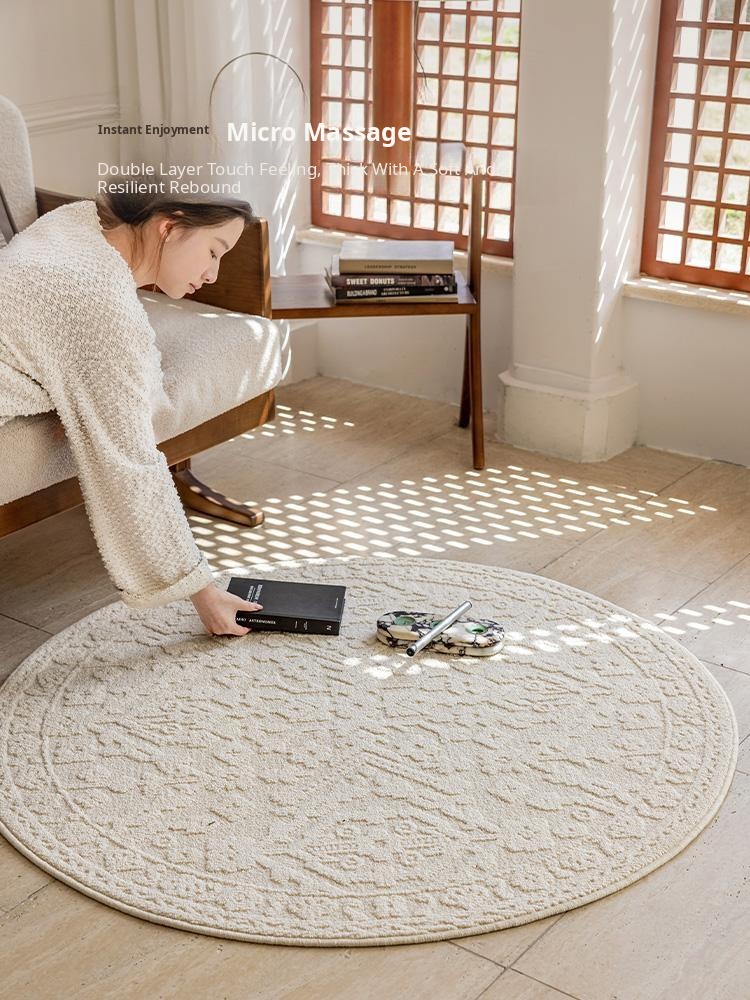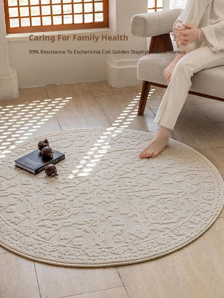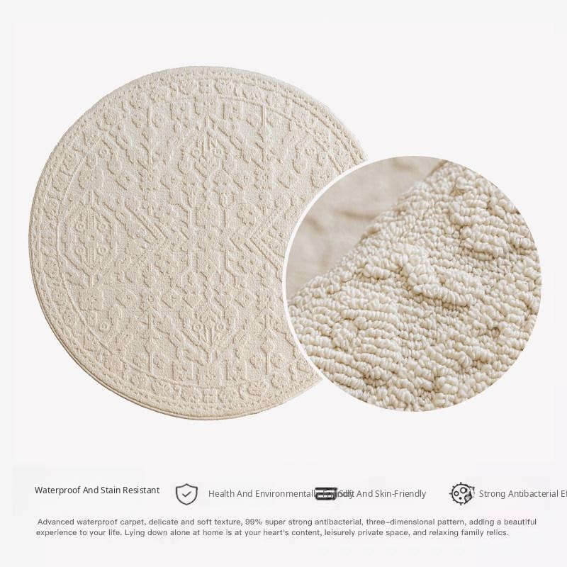 French Cream-Style Living Room Carpet - Wabi-Sabi Round Rug for Study and Bedroom, Sofa Blanket, Waterproof, Stain-Resistant, Easy to Clean Coffee Table Mat