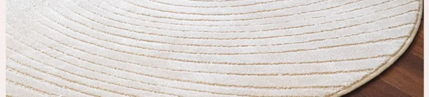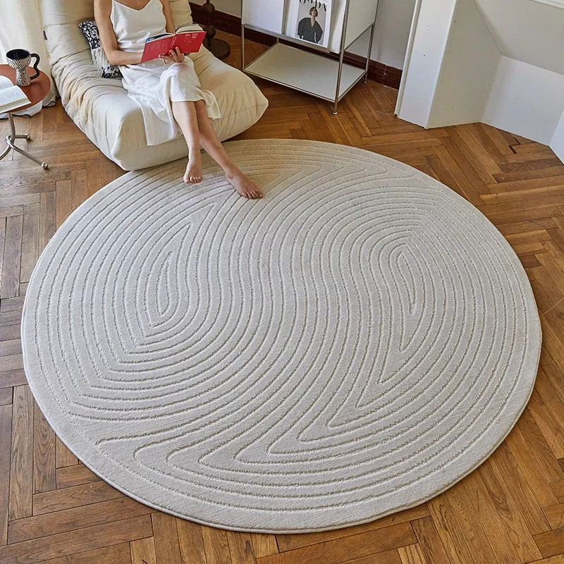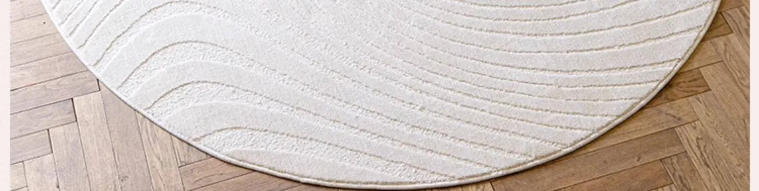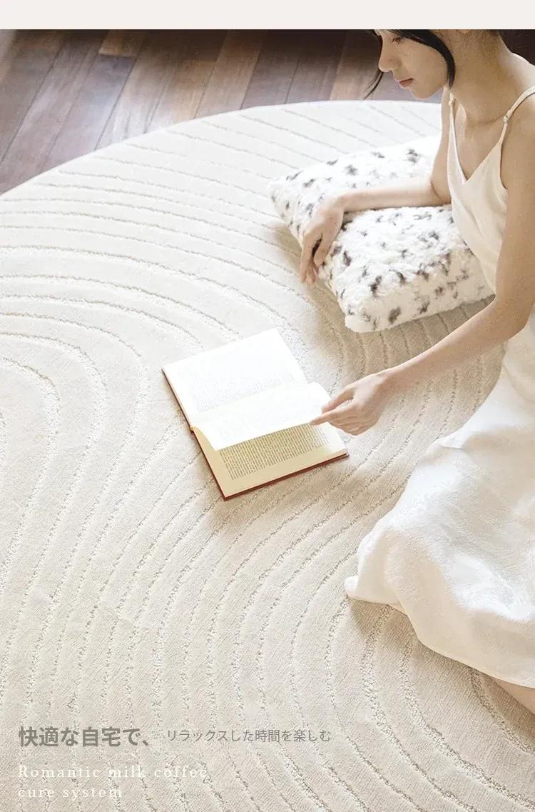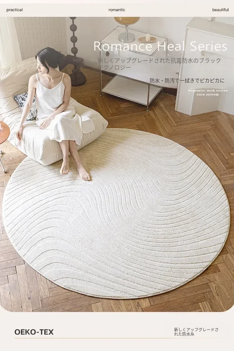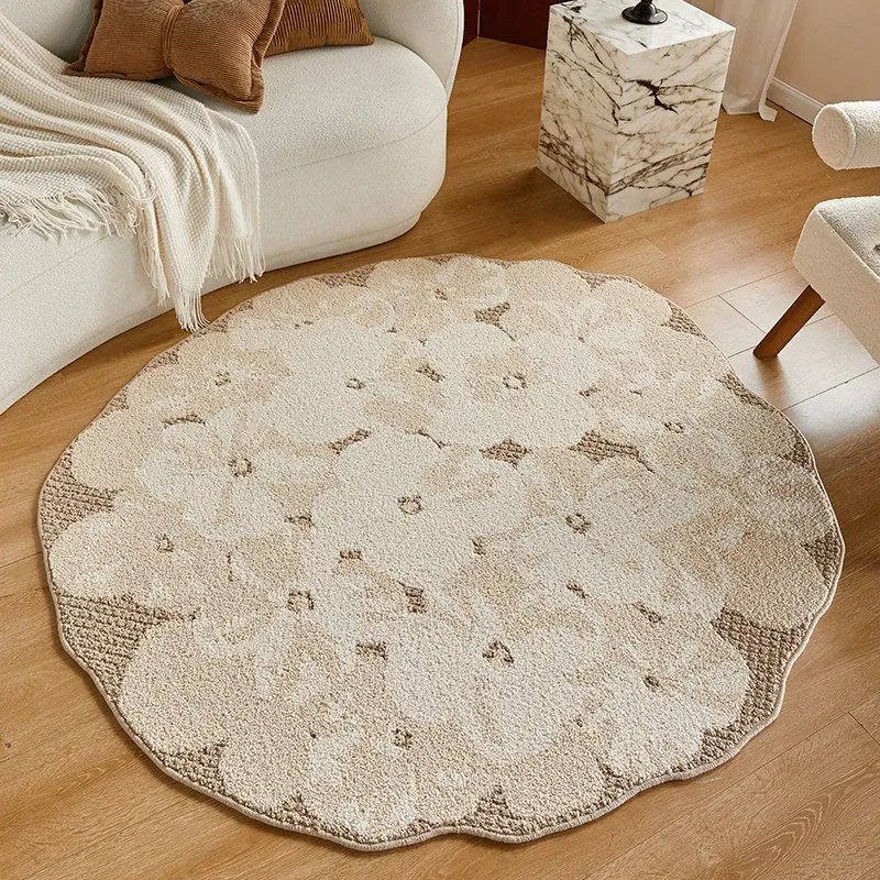 フレンチクリームスタイルのラウンドカーペット - 高級感あふれるリビングにぴったり!防水・汚れ防止機能付き、ソファやベッドサイドに最適な優雅なデザイン。おしゃれな生活空間を演出します!