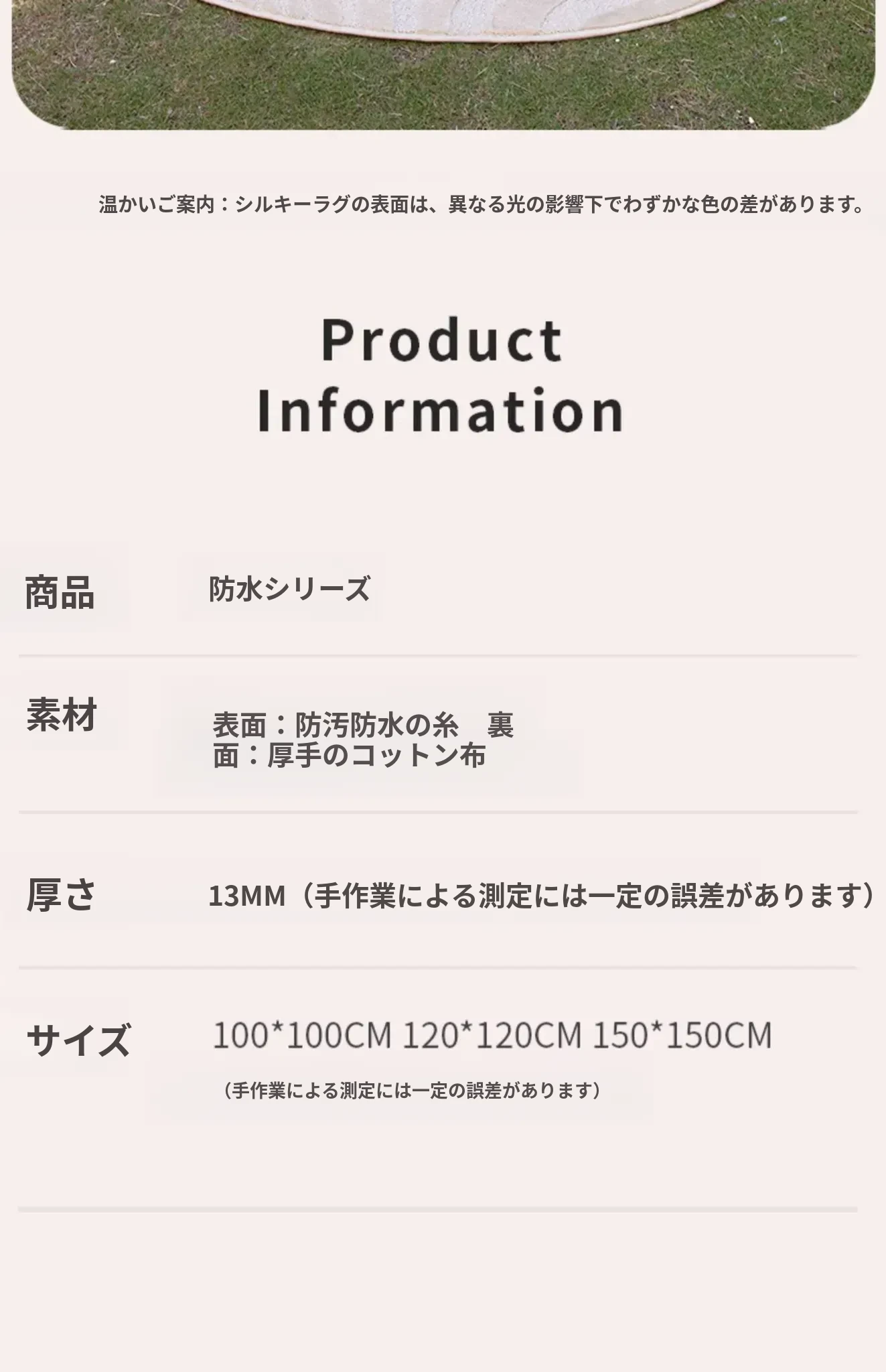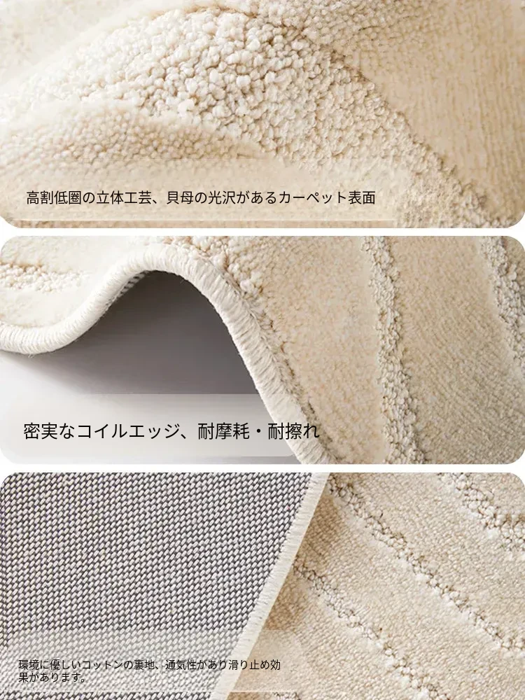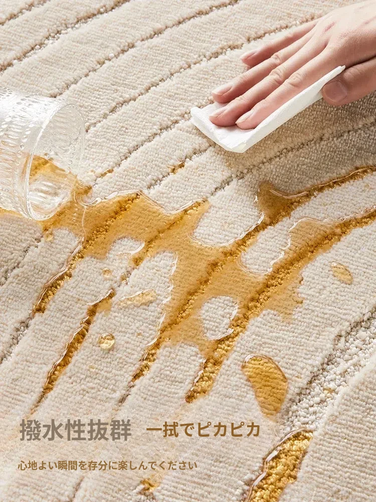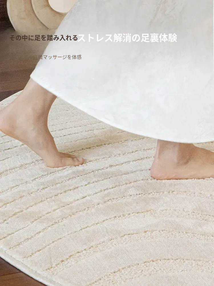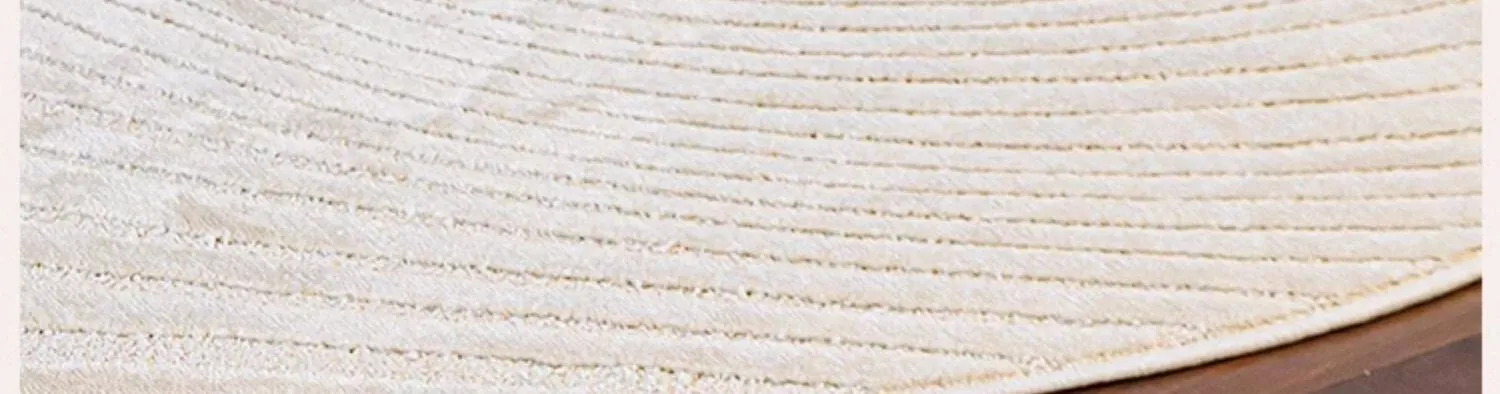 フレンチクリームスタイルのラウンドカーペット - 高級感あふれるリビングにぴったり!防水・汚れ防止機能付き、ソファやベッドサイドに最適な優雅なデザイン。おしゃれな生活空間を演出します!