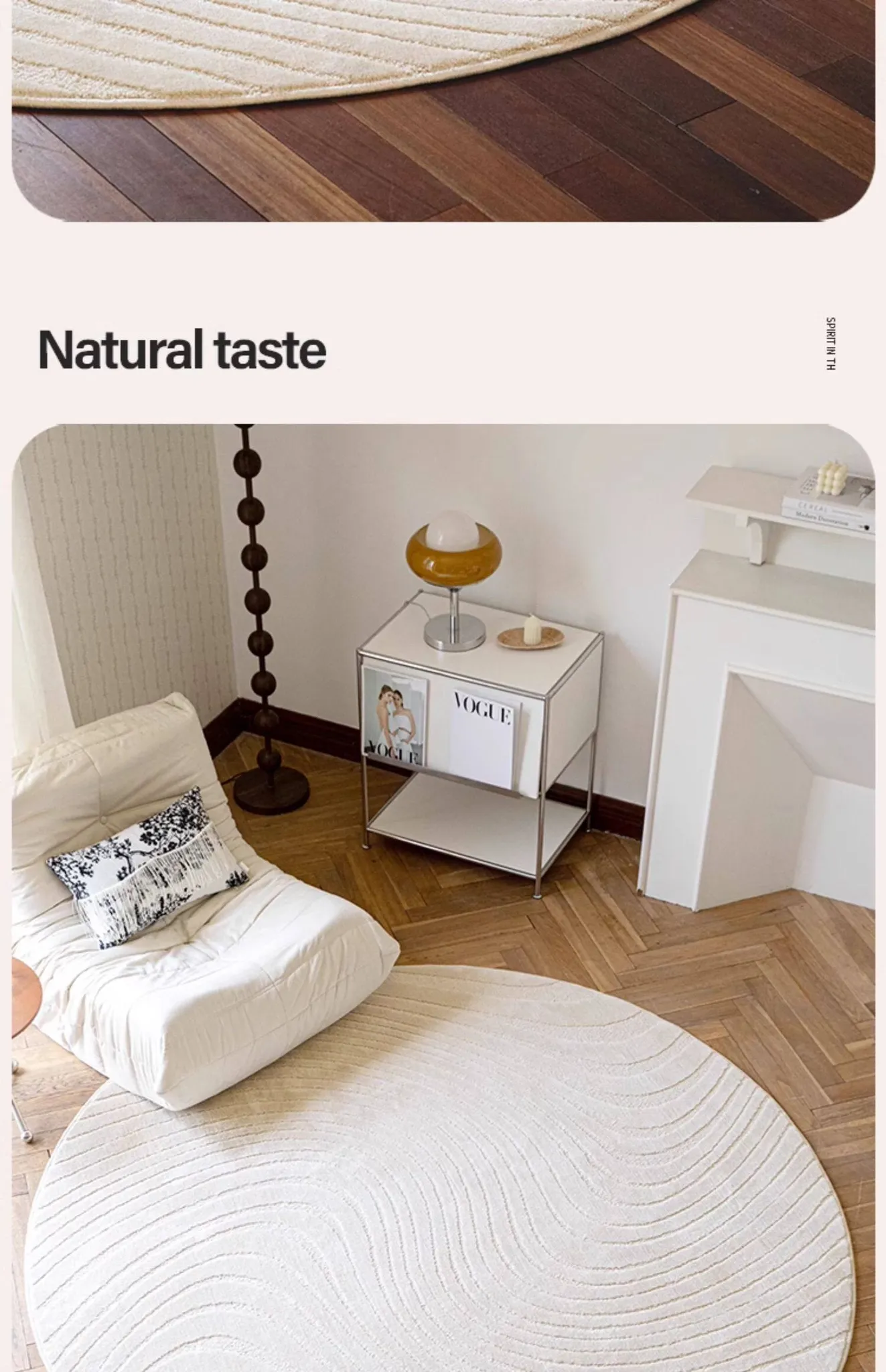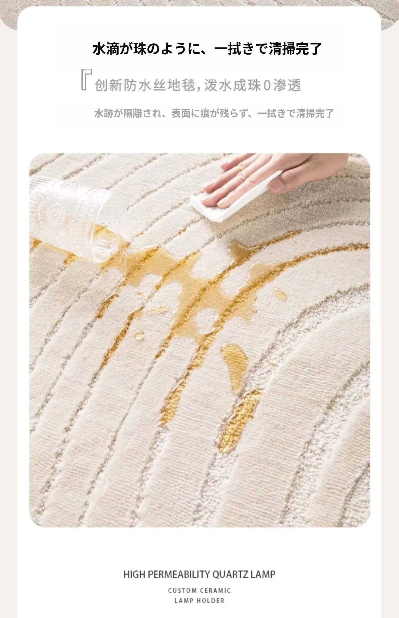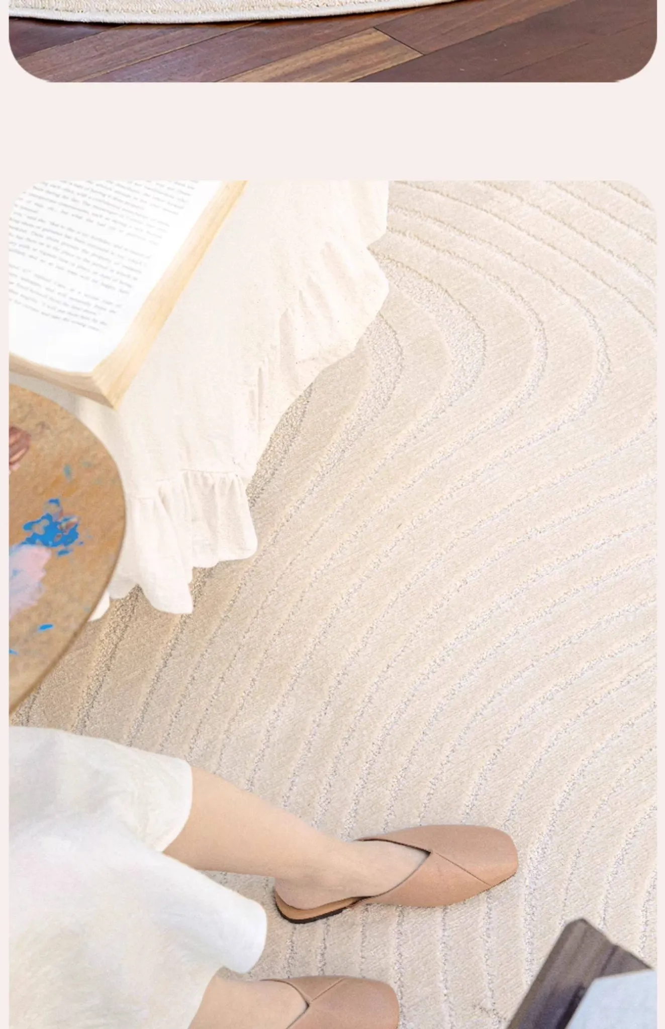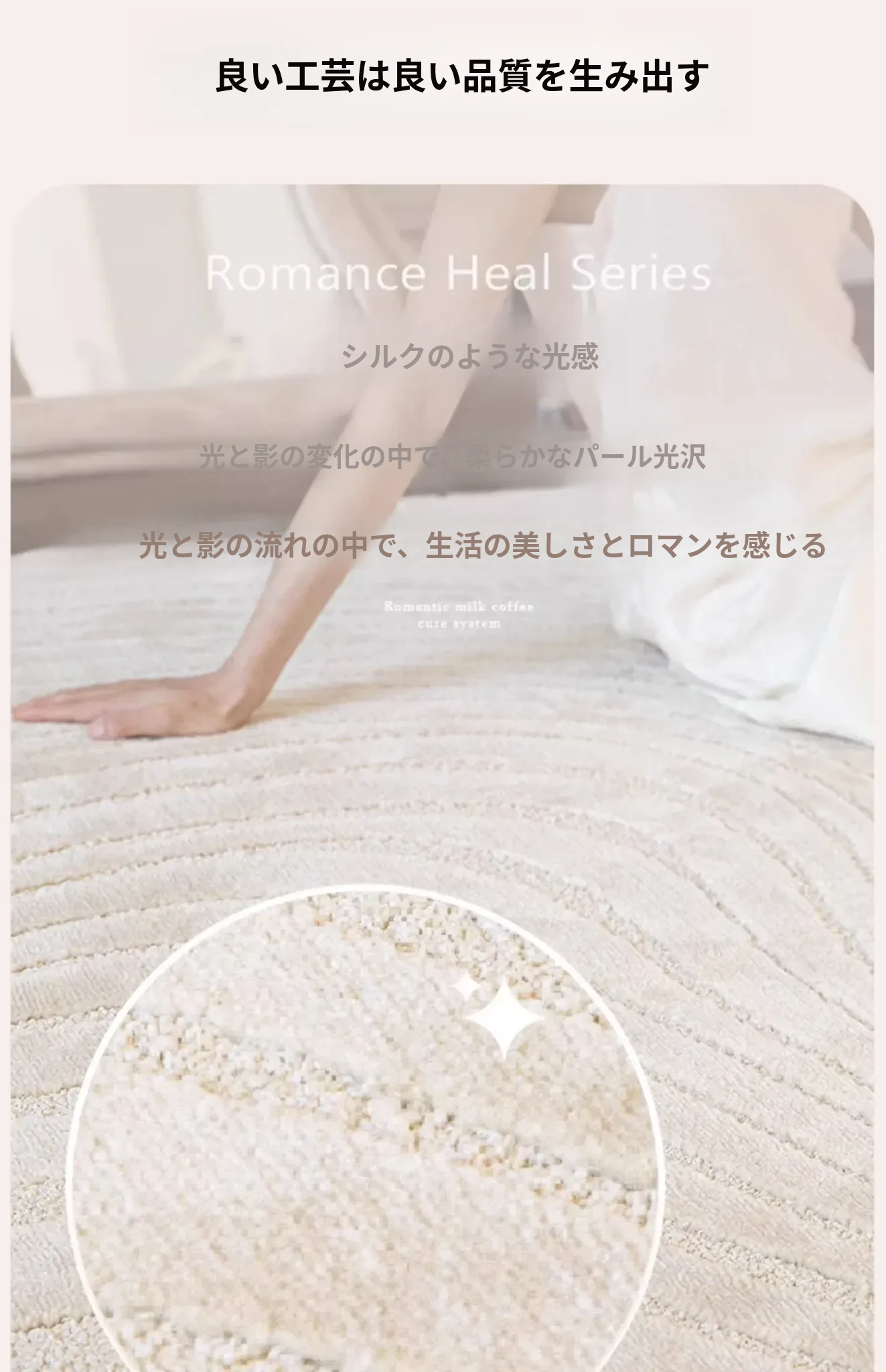 フレンチクリームスタイルのラウンドカーペット - 高級感あふれるリビングにぴったり!防水・汚れ防止機能付き、ソファやベッドサイドに最適な優雅なデザイン。おしゃれな生活空間を演出します!