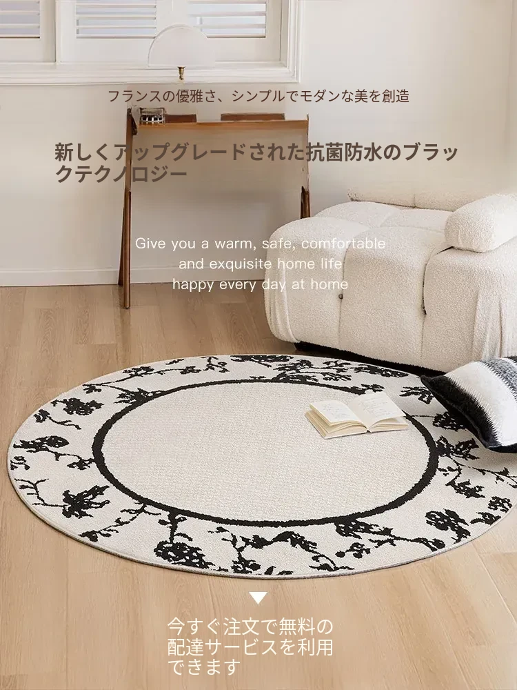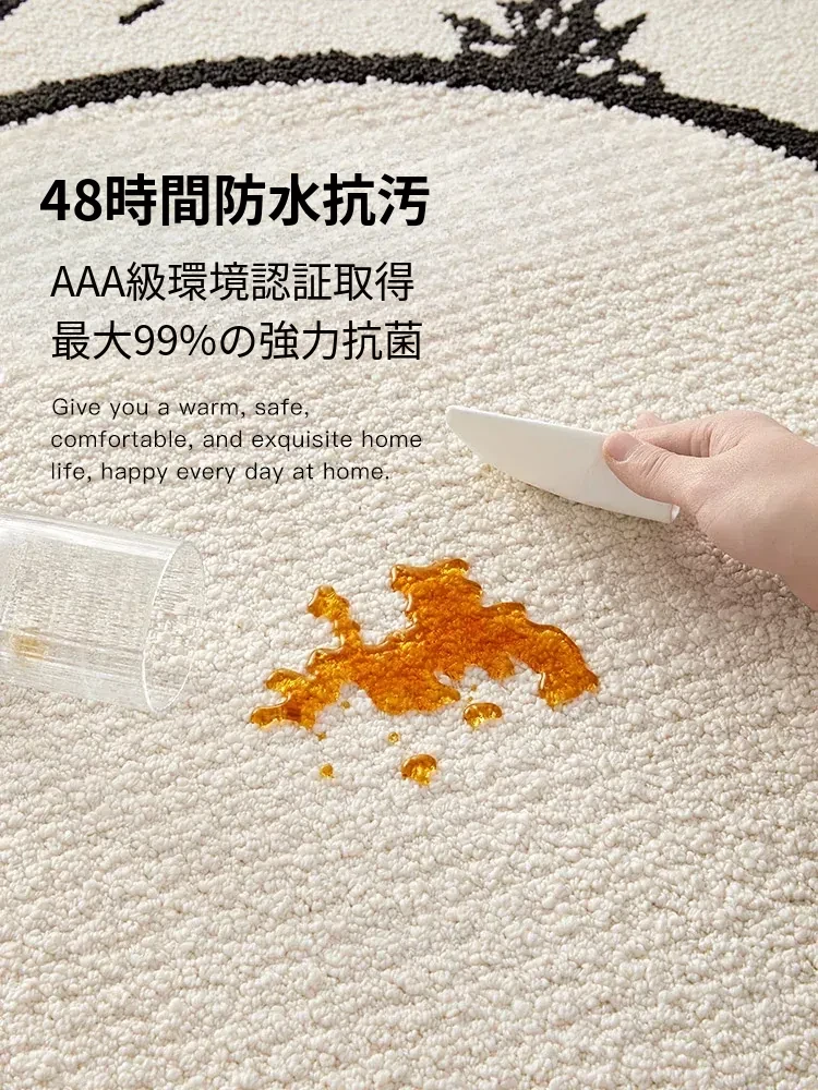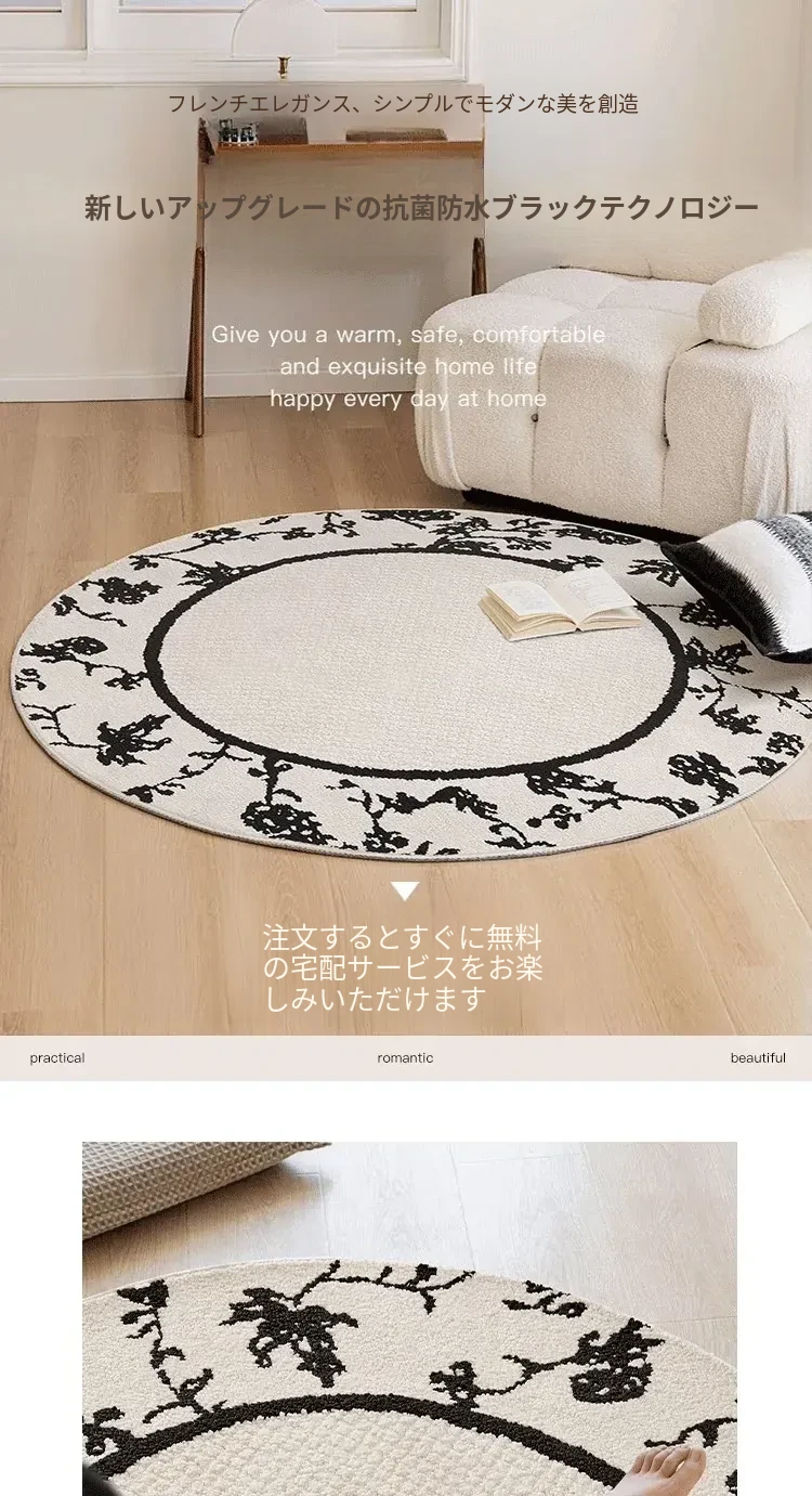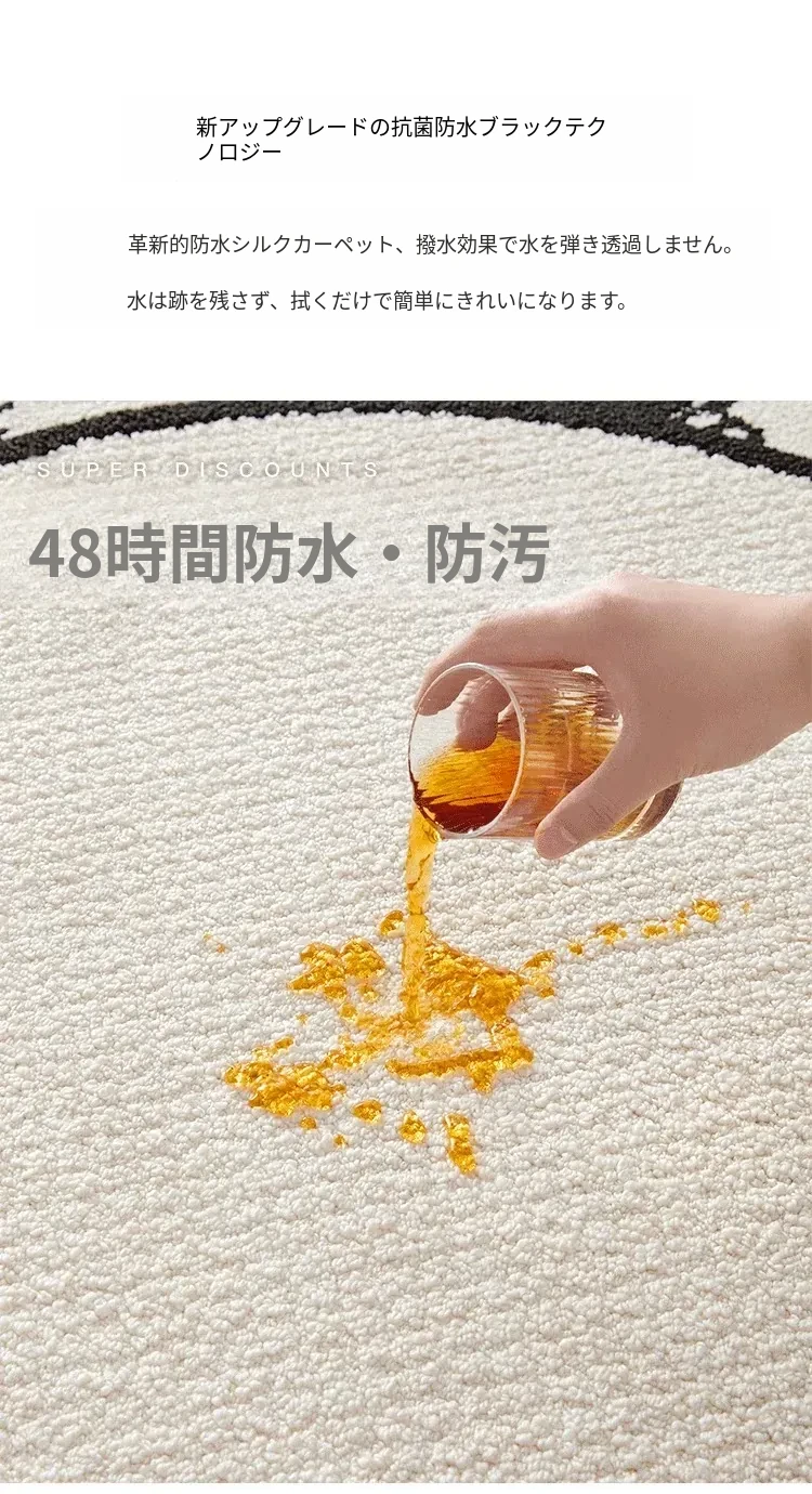 フレンチクリーム風防水防汚ラウンドカーペット - 寝室、クローゼット、デスクチェア、ソファ、コーヒーテーブルに最適なラグ!快適さとスタイルを兼ね備えた一品。