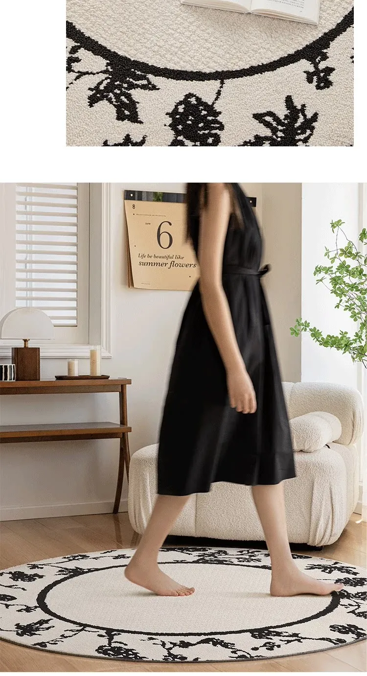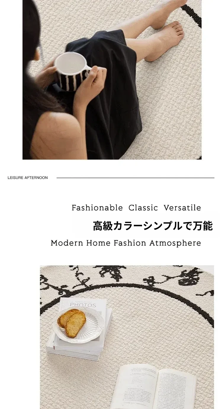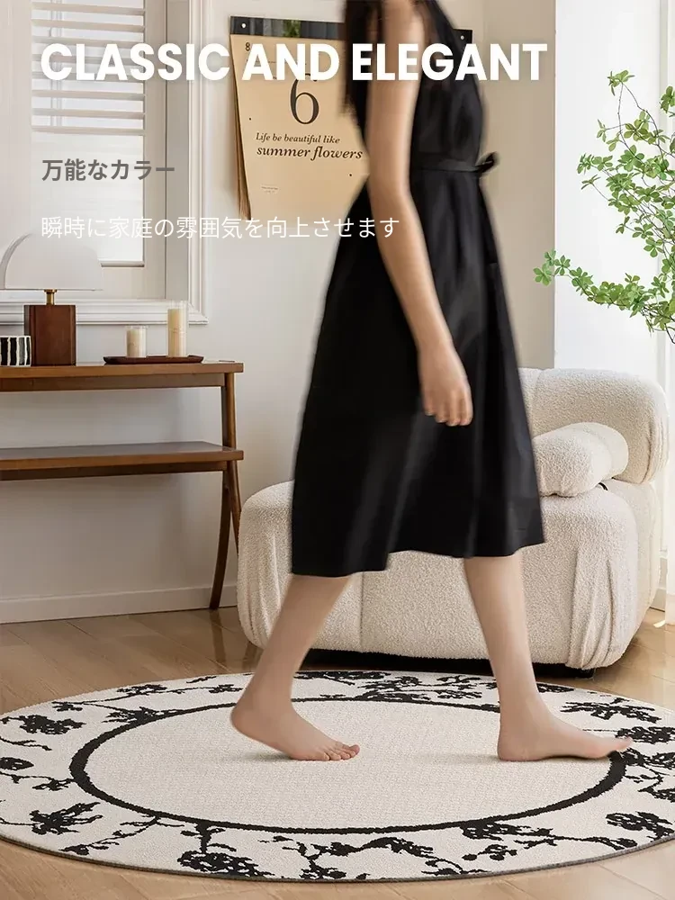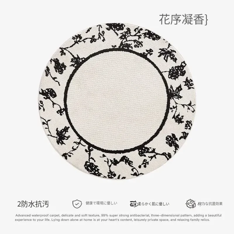 フレンチクリーム風防水防汚ラウンドカーペット - 寝室、クローゼット、デスクチェア、ソファ、コーヒーテーブルに最適なラグ!快適さとスタイルを兼ね備えた一品。