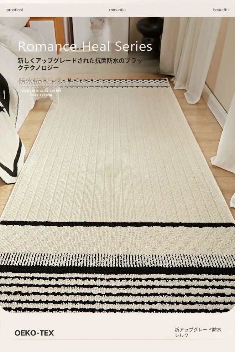 フランス風高級感漂う防水防汚ベッドサイドマット - お手入れ不要でいつでも清潔!耐久性抜群、衣装部屋や玄関マットに最適!