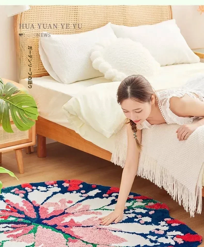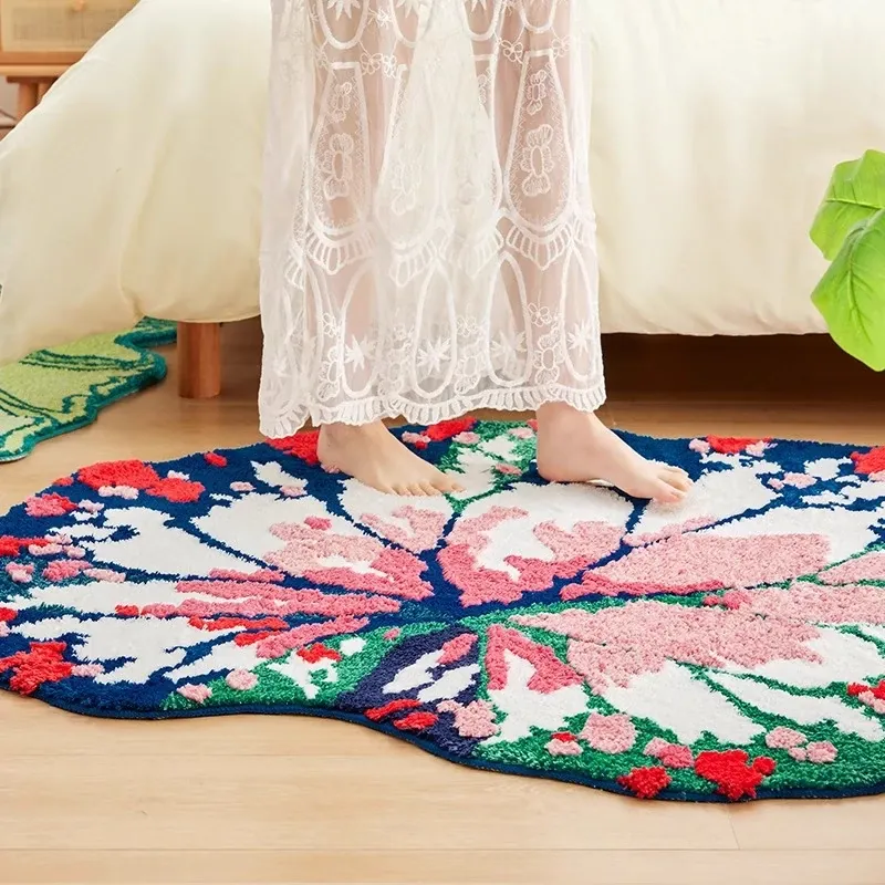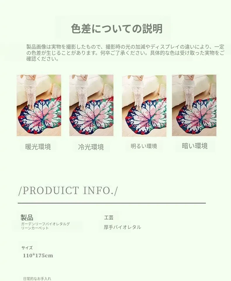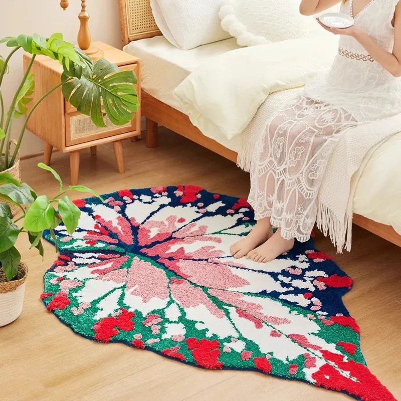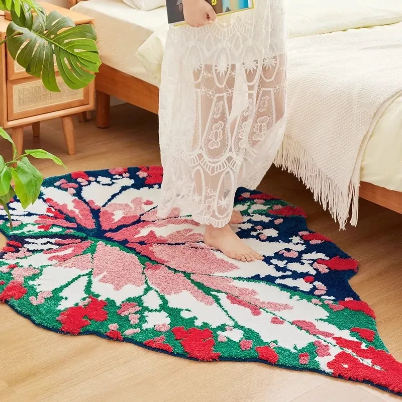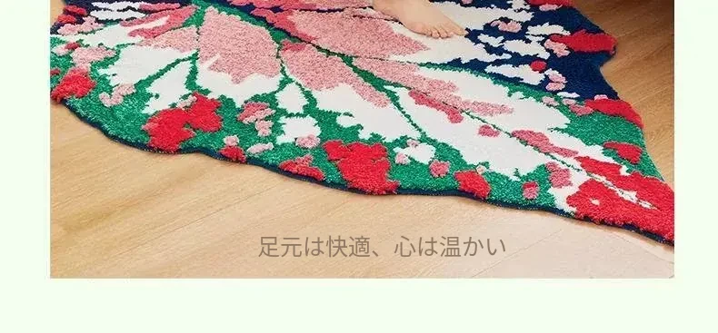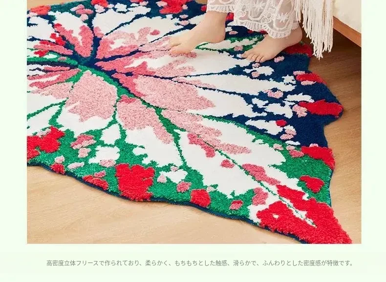 ガーデンリーフフォレストフロッキーラグ - リビングや寝室にぴったり!ベッドサイドマットやユニークな形状の敷物としても使え、手入れも簡単で、いつでも清潔に保てます。あなたの空間を優雅に彩ります!