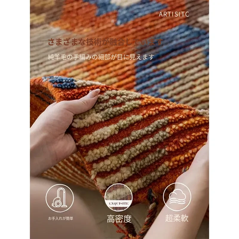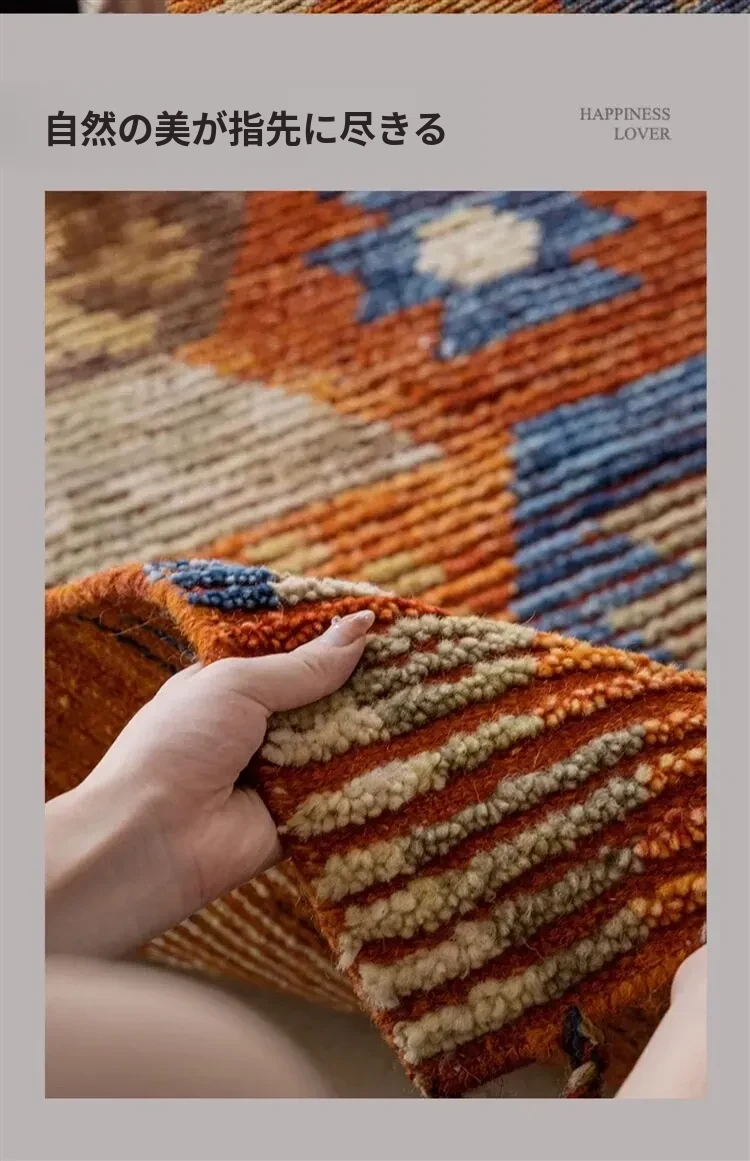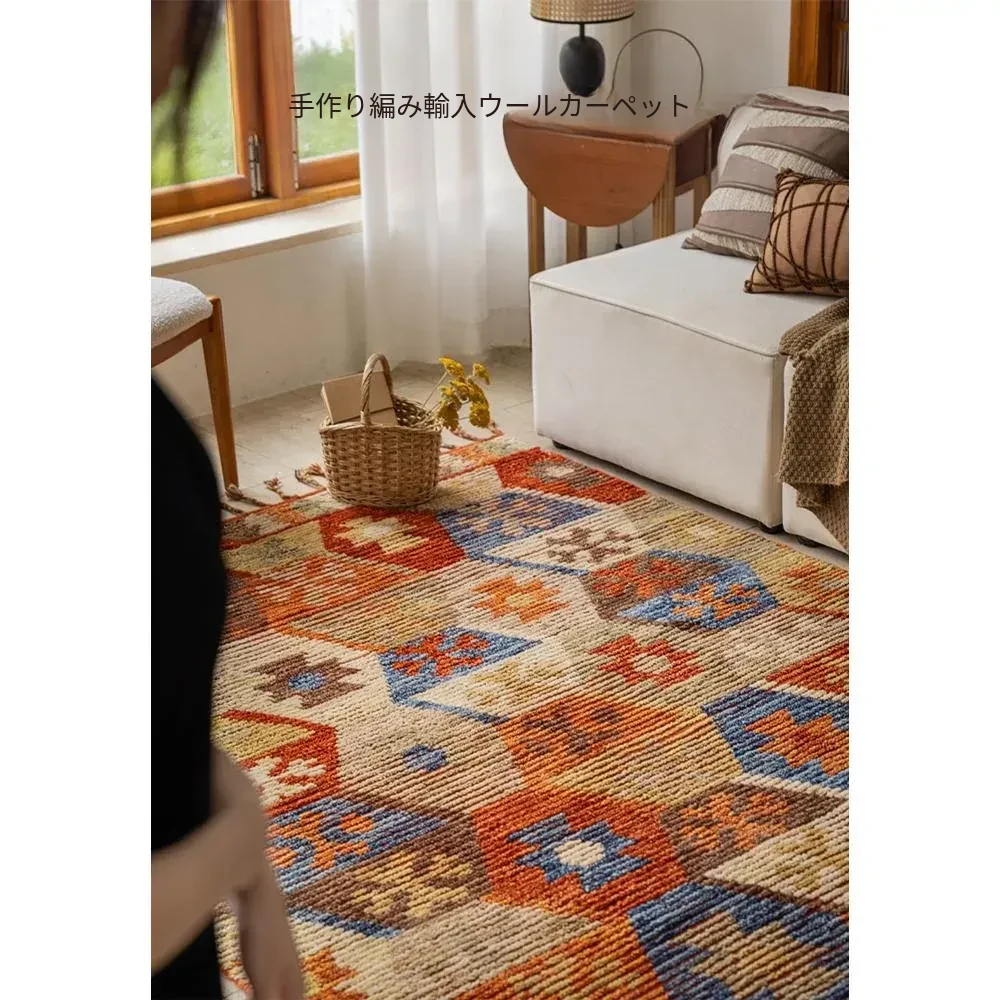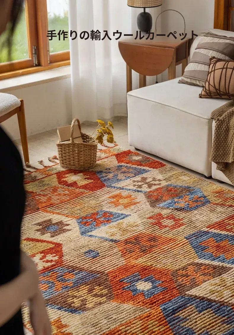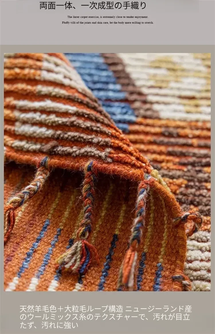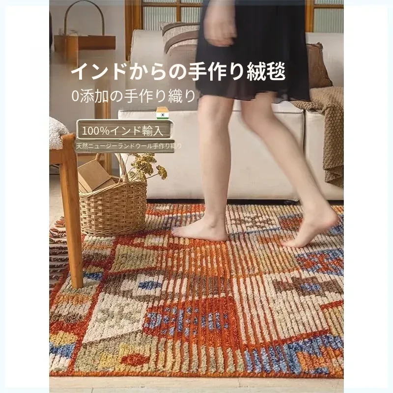 手作ニュージーランドウールラグ - ラグジュアリーなリビング空間を演出するアメリカンスタイルの無接着マット。軽やかで上質なデザイン、ベッドサイドにもぴったり!