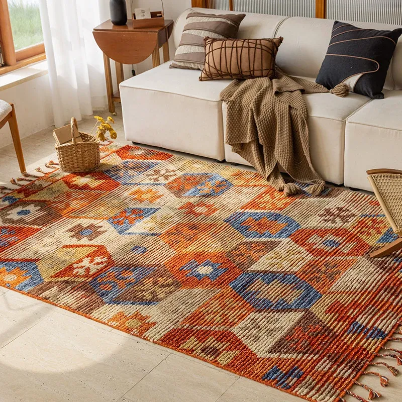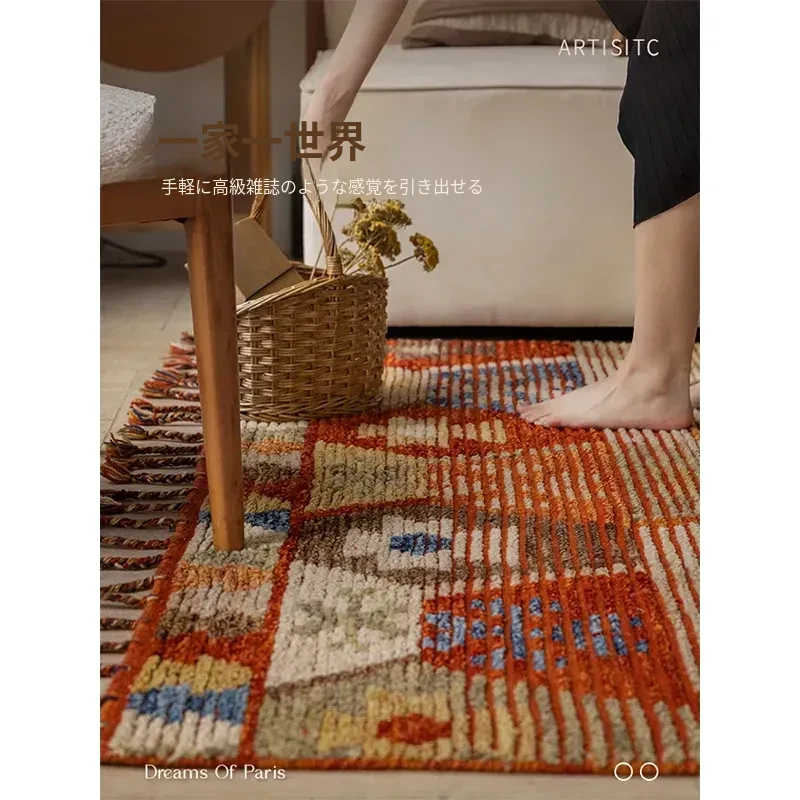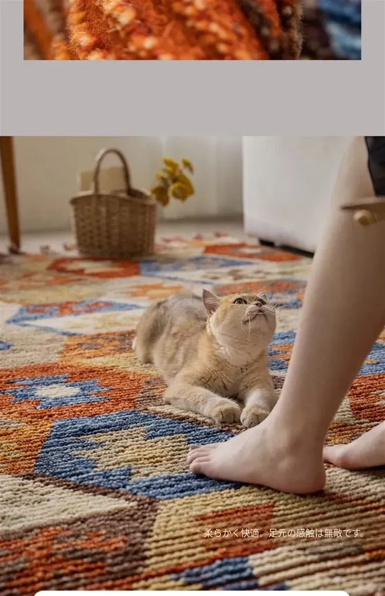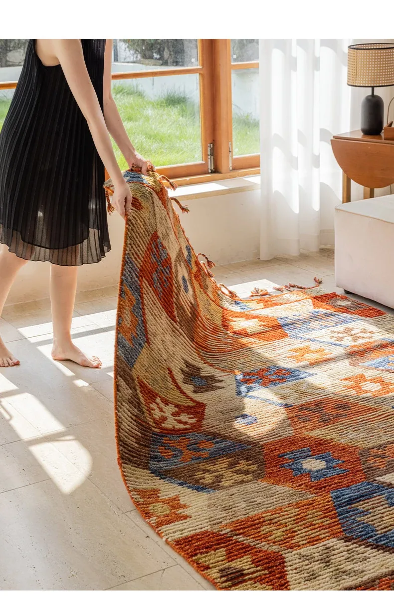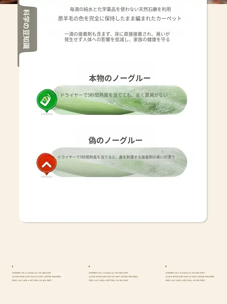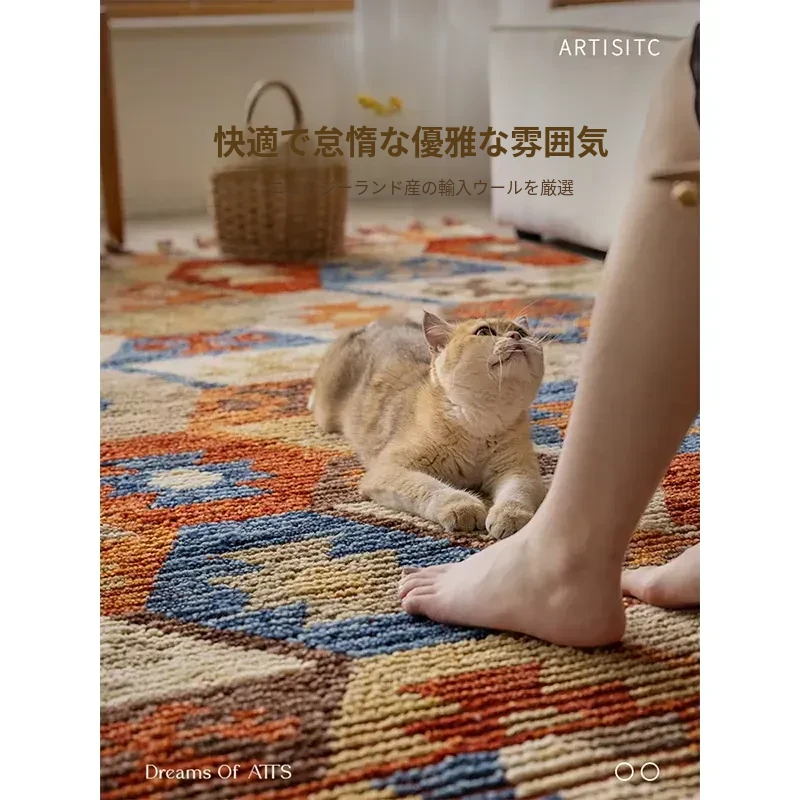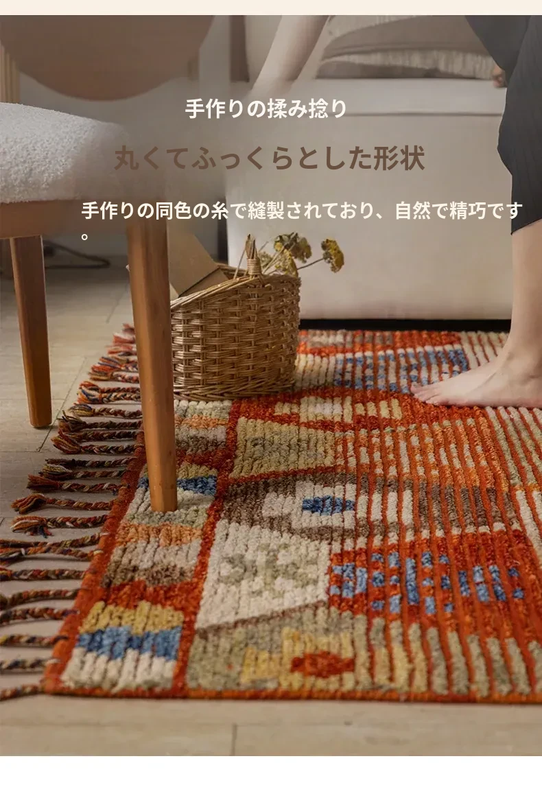 手作ニュージーランドウールラグ - ラグジュアリーなリビング空間を演出するアメリカンスタイルの無接着マット。軽やかで上質なデザイン、ベッドサイドにもぴったり!