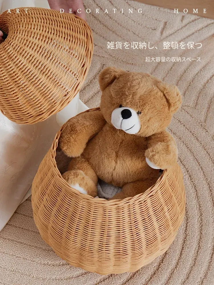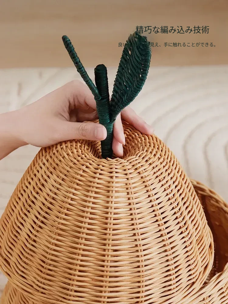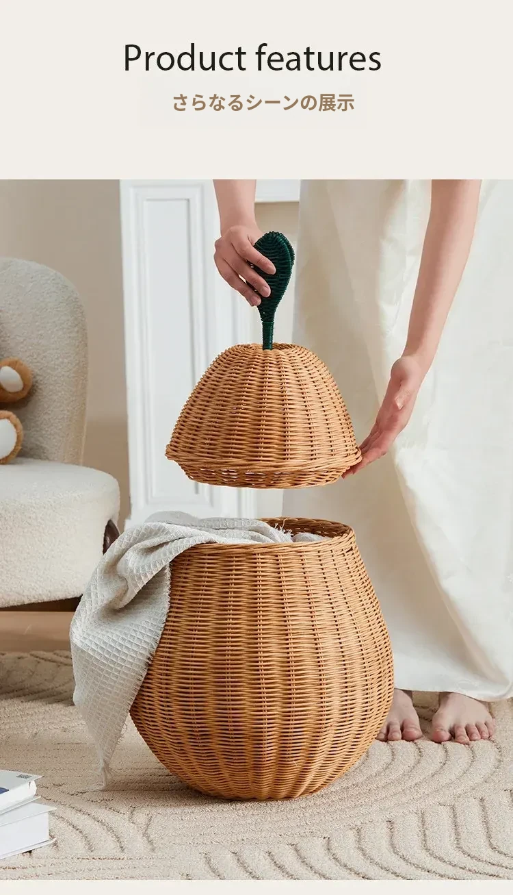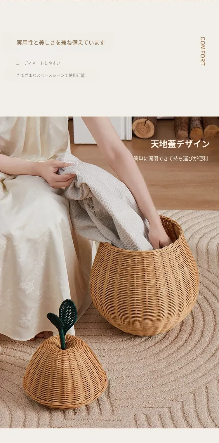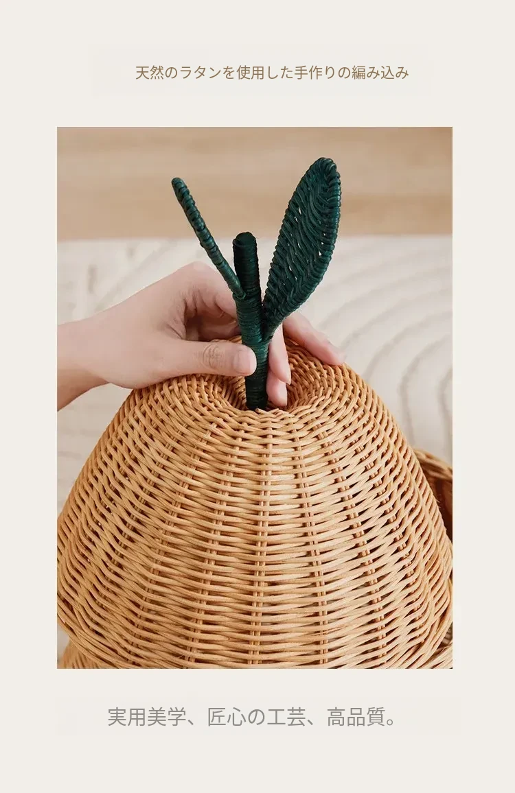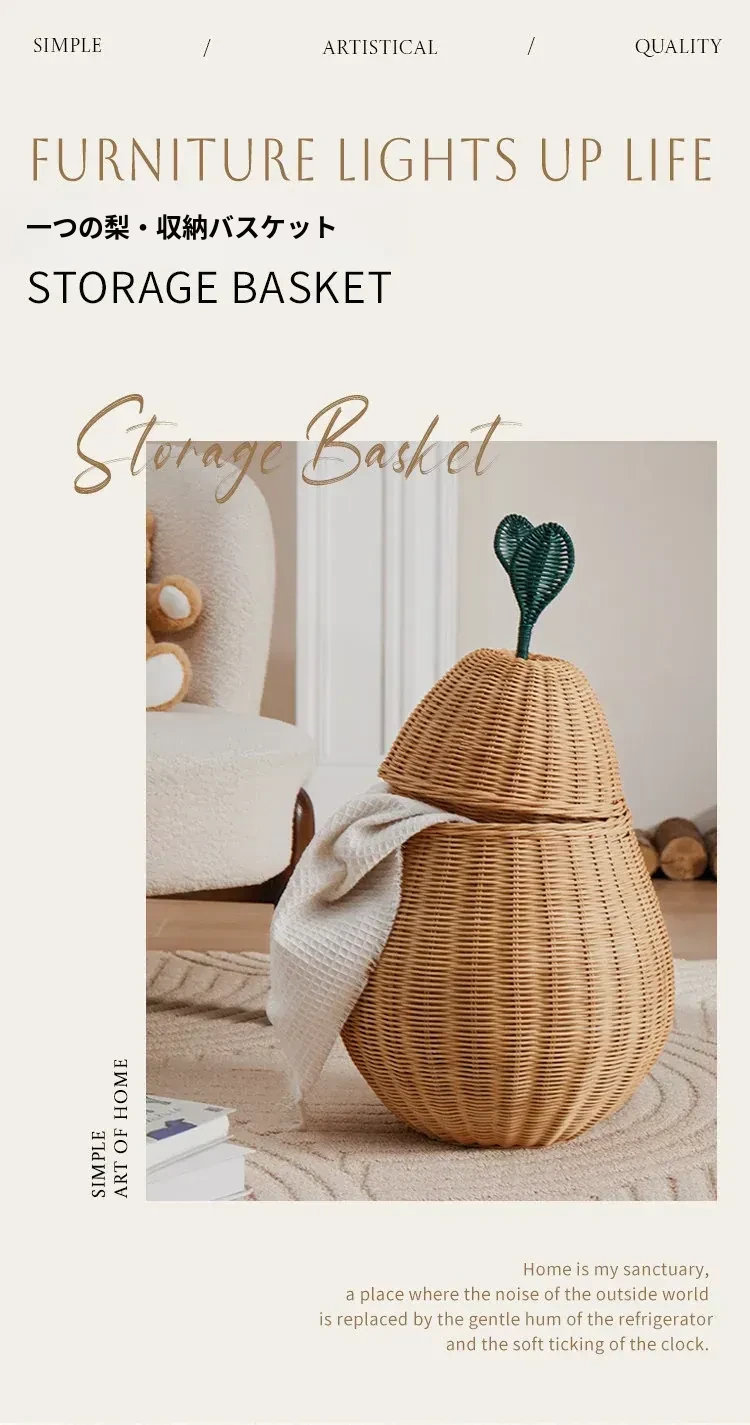 手作藤編みの梨型ランドリーバスケット - お部屋の整理整頓に最適!おもちゃやお菓子なども収納できる、可愛いデザインでリビングや寝室にぴったり。おしゃれで機能的なアイテムをぜひお試しください!