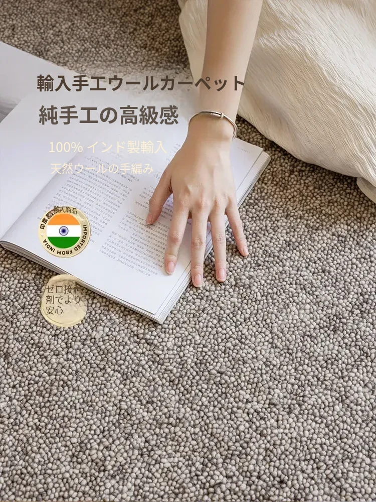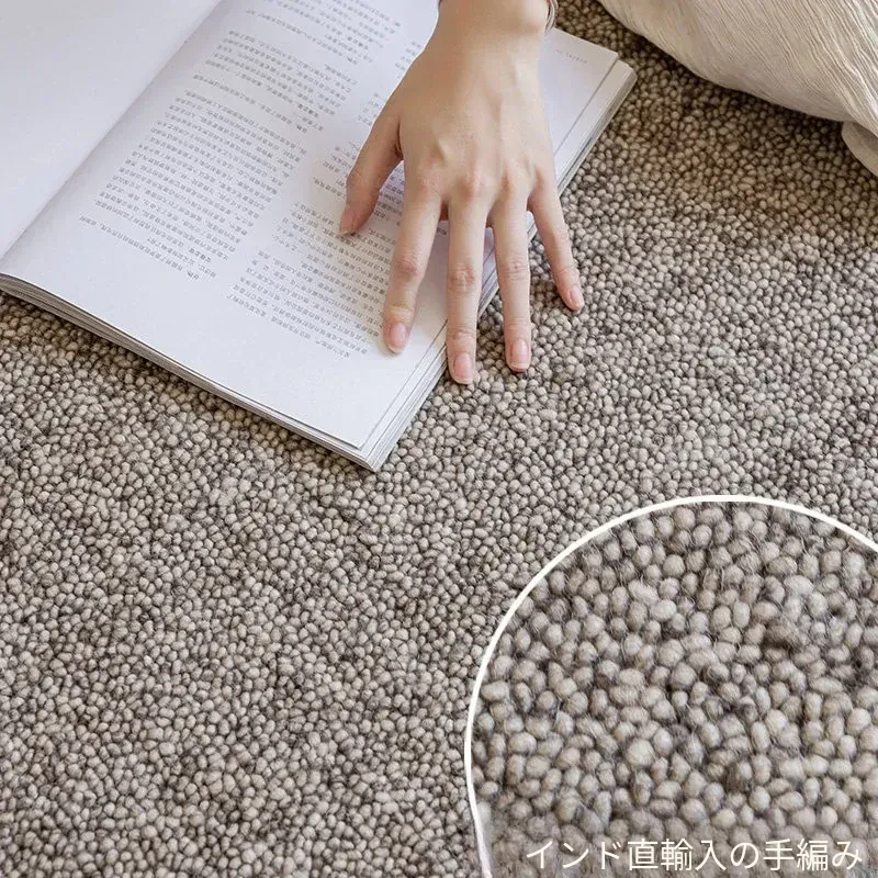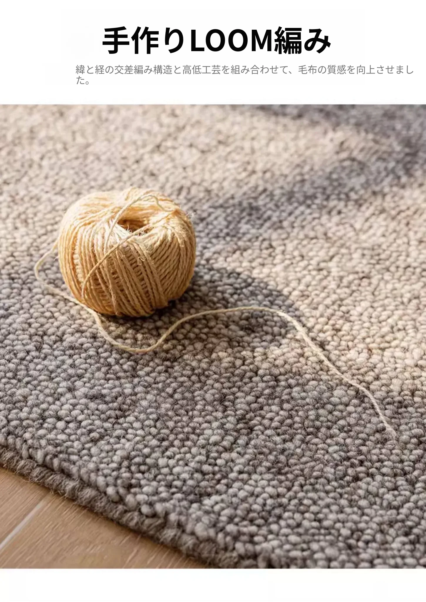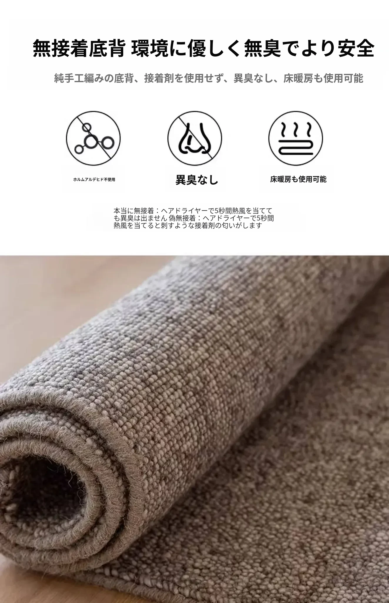 【インド輸入】ニュージーランド産純ウールのリビングルーム用ラグ、接着剤不使用の手織り、テーブルやソファの下に最適なベッドサイドマット。上質な素材で心地よい空間を演出!