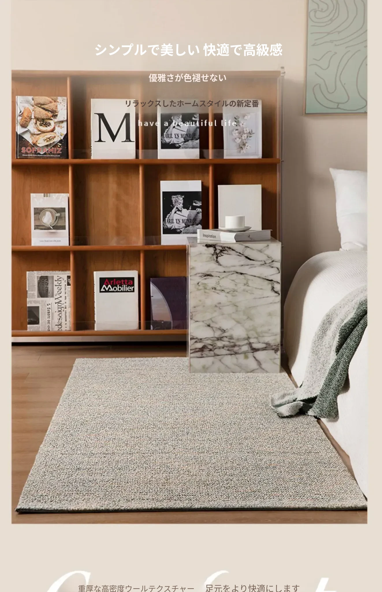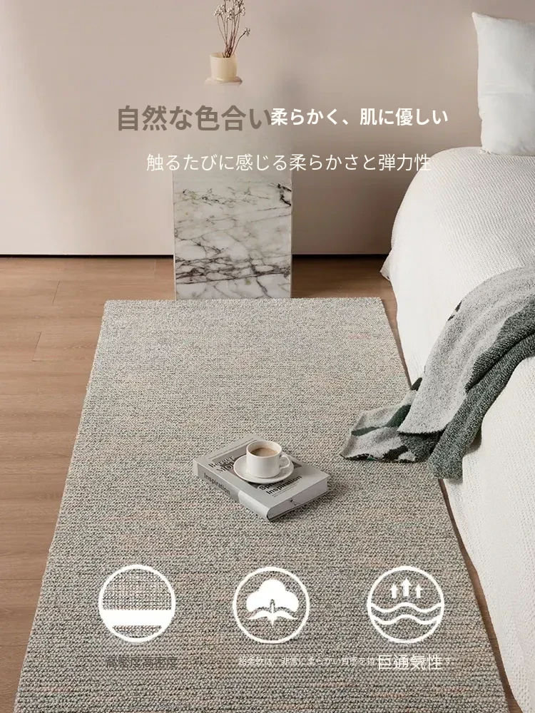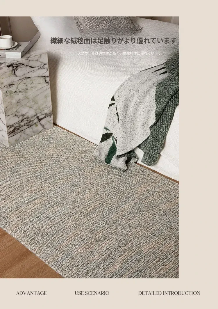 ニュージーランド産ウール製ベッドサイドマット|モダンな寝室やリビングにぴったりのラグ|上質な軽奢感を演出するベッドフットマット|居心地の良い空間を実現するフロアマット