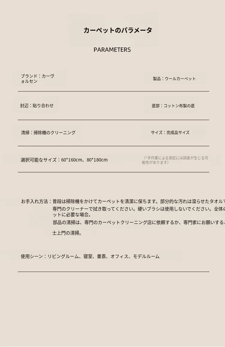 80*180cm【質感ウール-ラグジュアリーライフ】