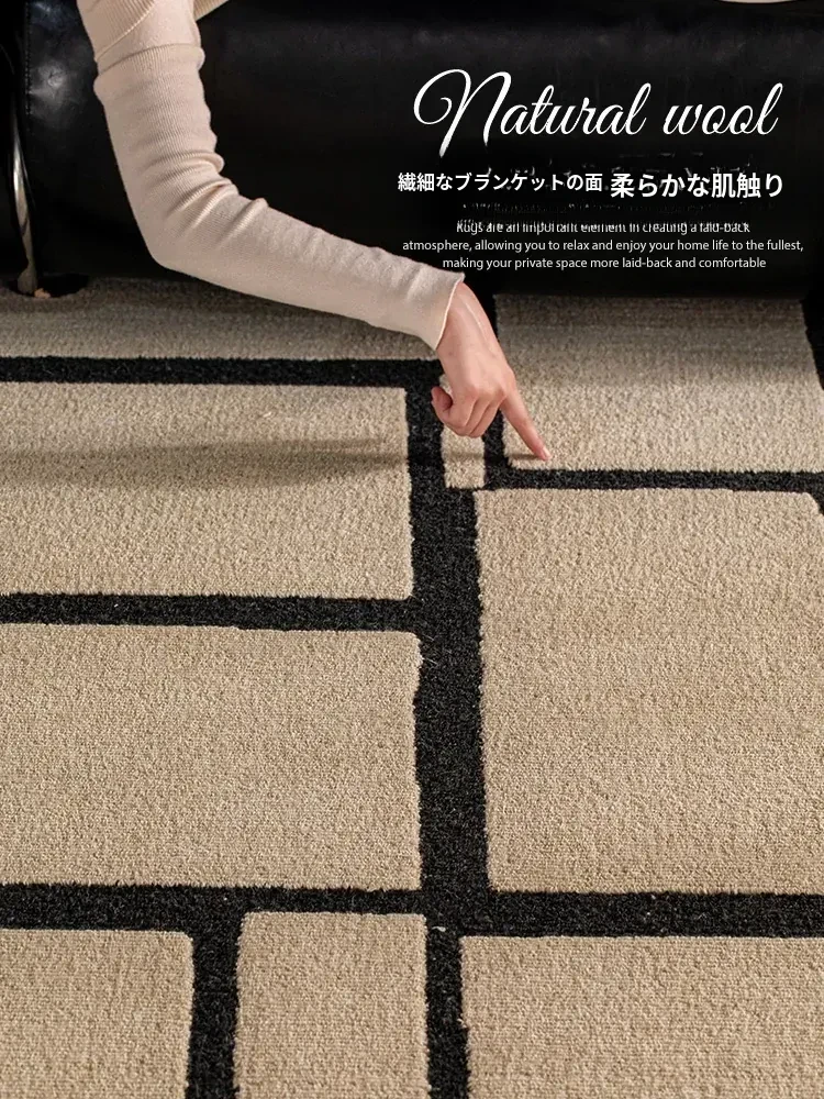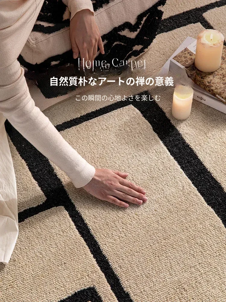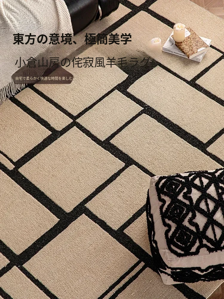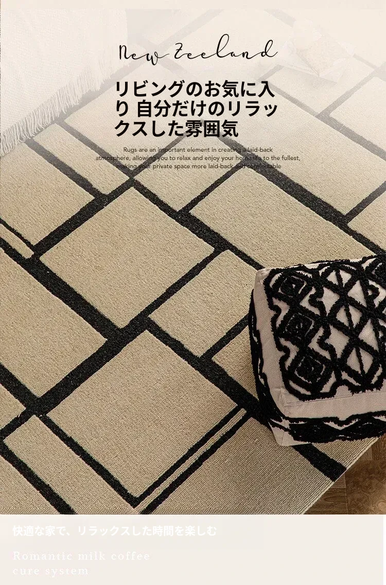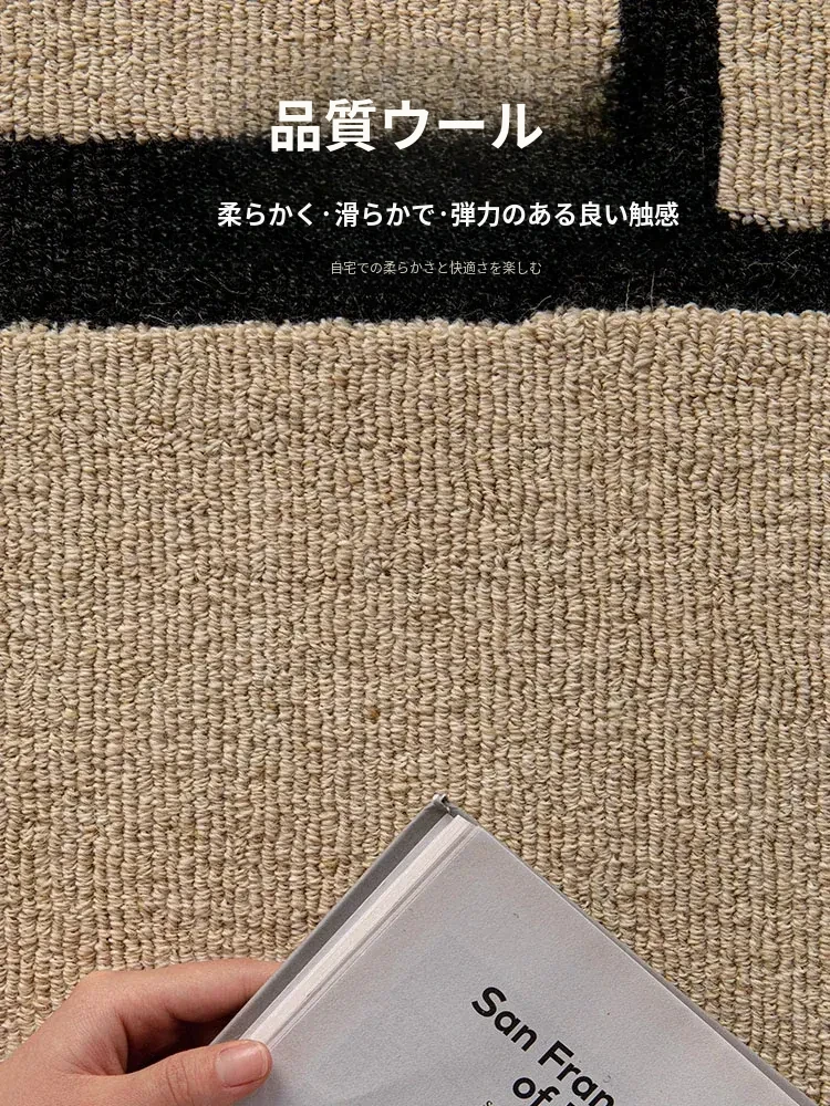 ニュージーランド産の高級ウールカーペット - ソファやテーブルにぴったり!リビングや寝室に最適な中古の侘び寂び風で、モダンでミニマルなデザインがあなたの空間を一層引き立てます。