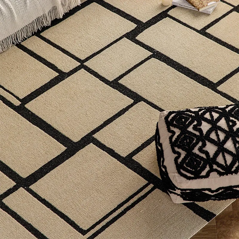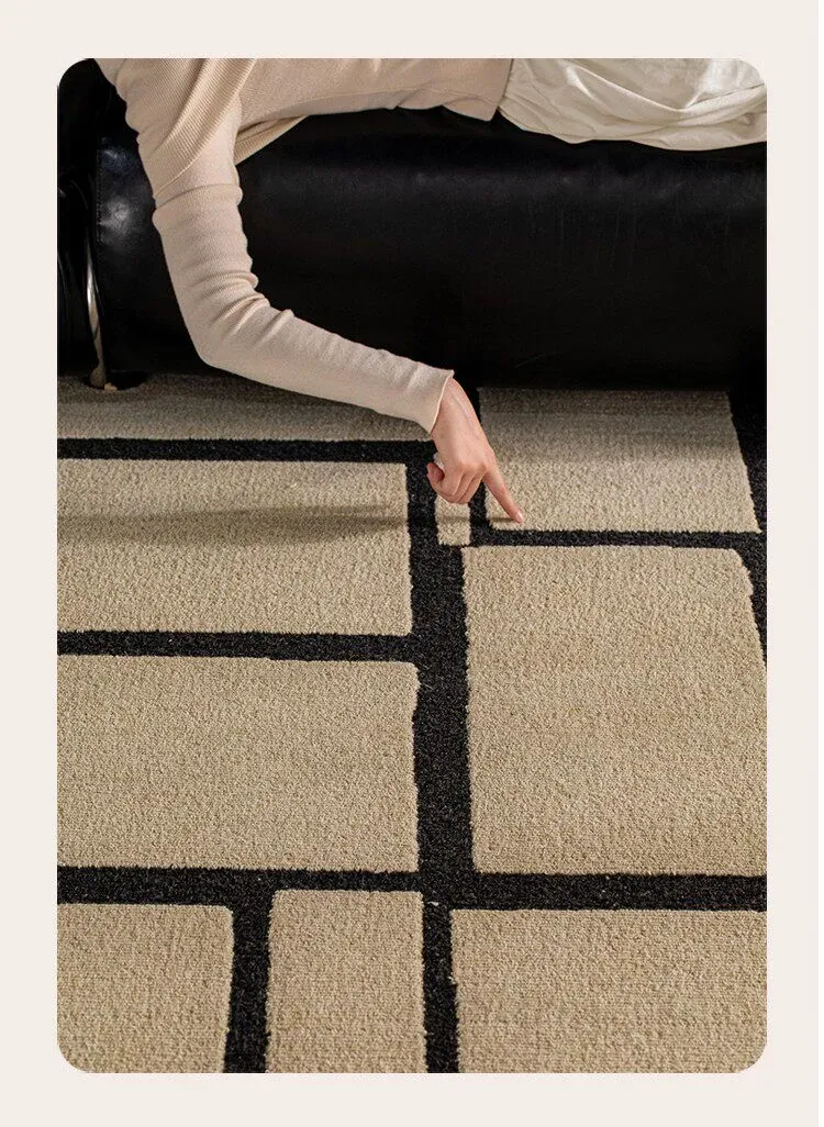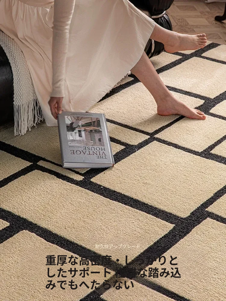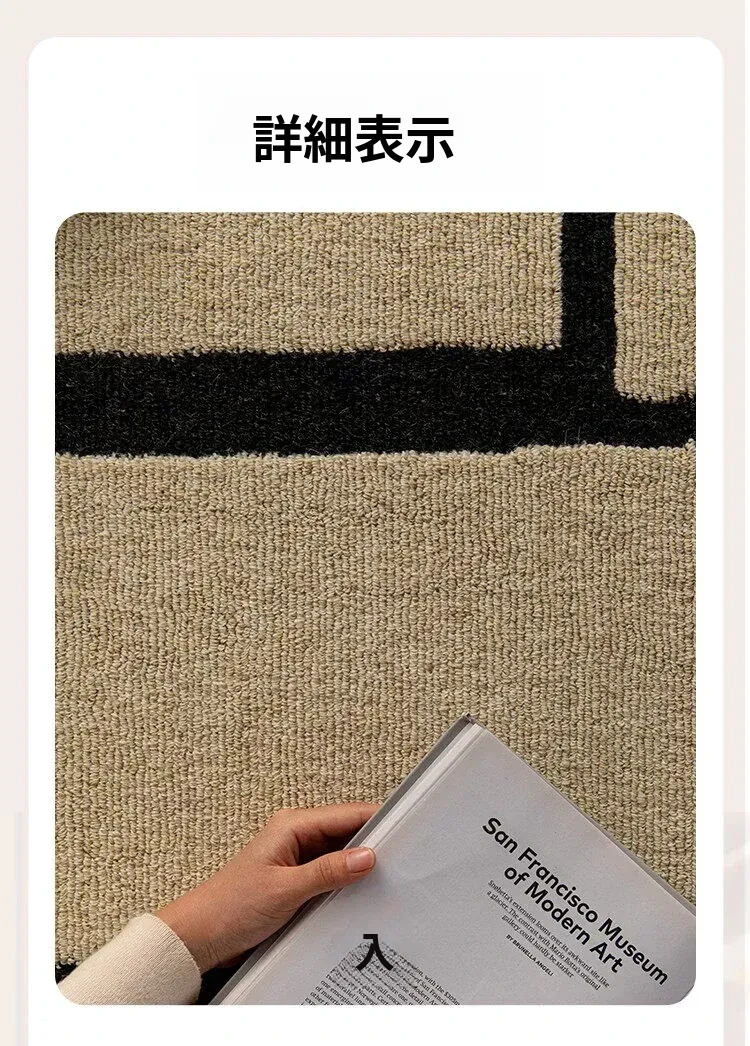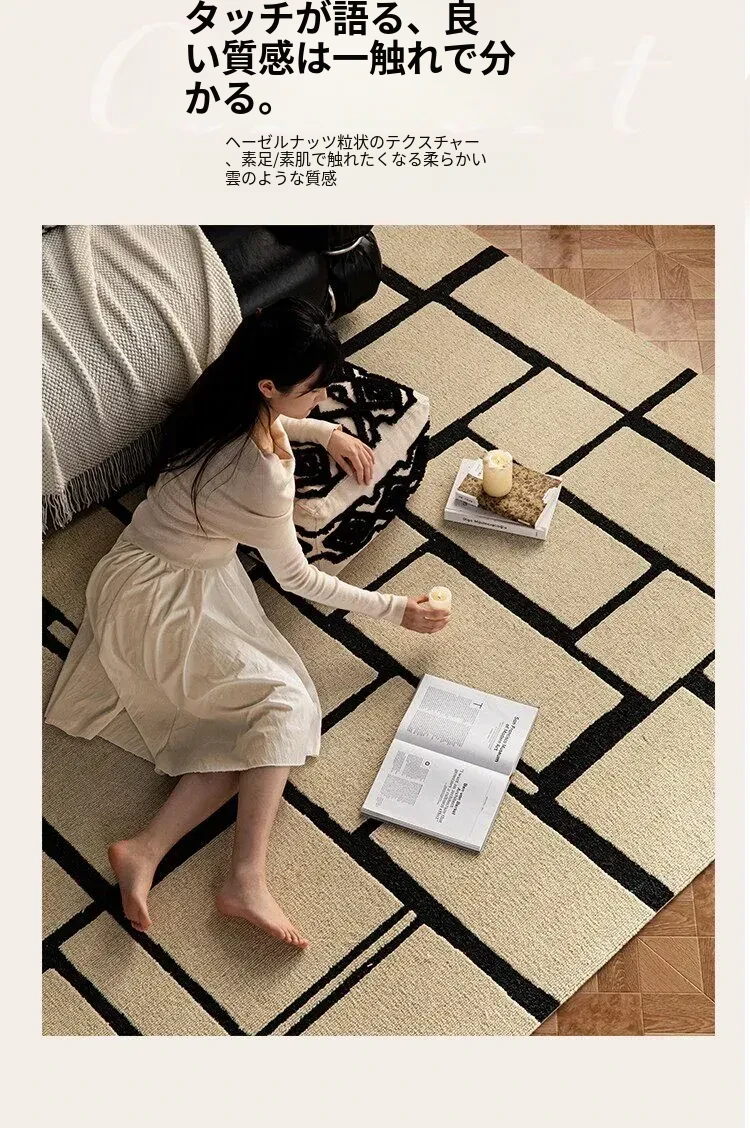 ニュージーランド産の高級ウールカーペット - ソファやテーブルにぴったり!リビングや寝室に最適な中古の侘び寂び風で、モダンでミニマルなデザインがあなたの空間を一層引き立てます。
