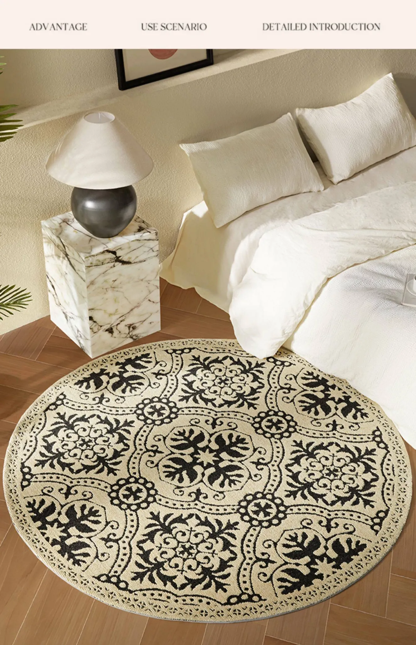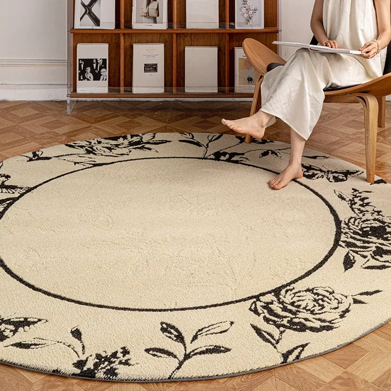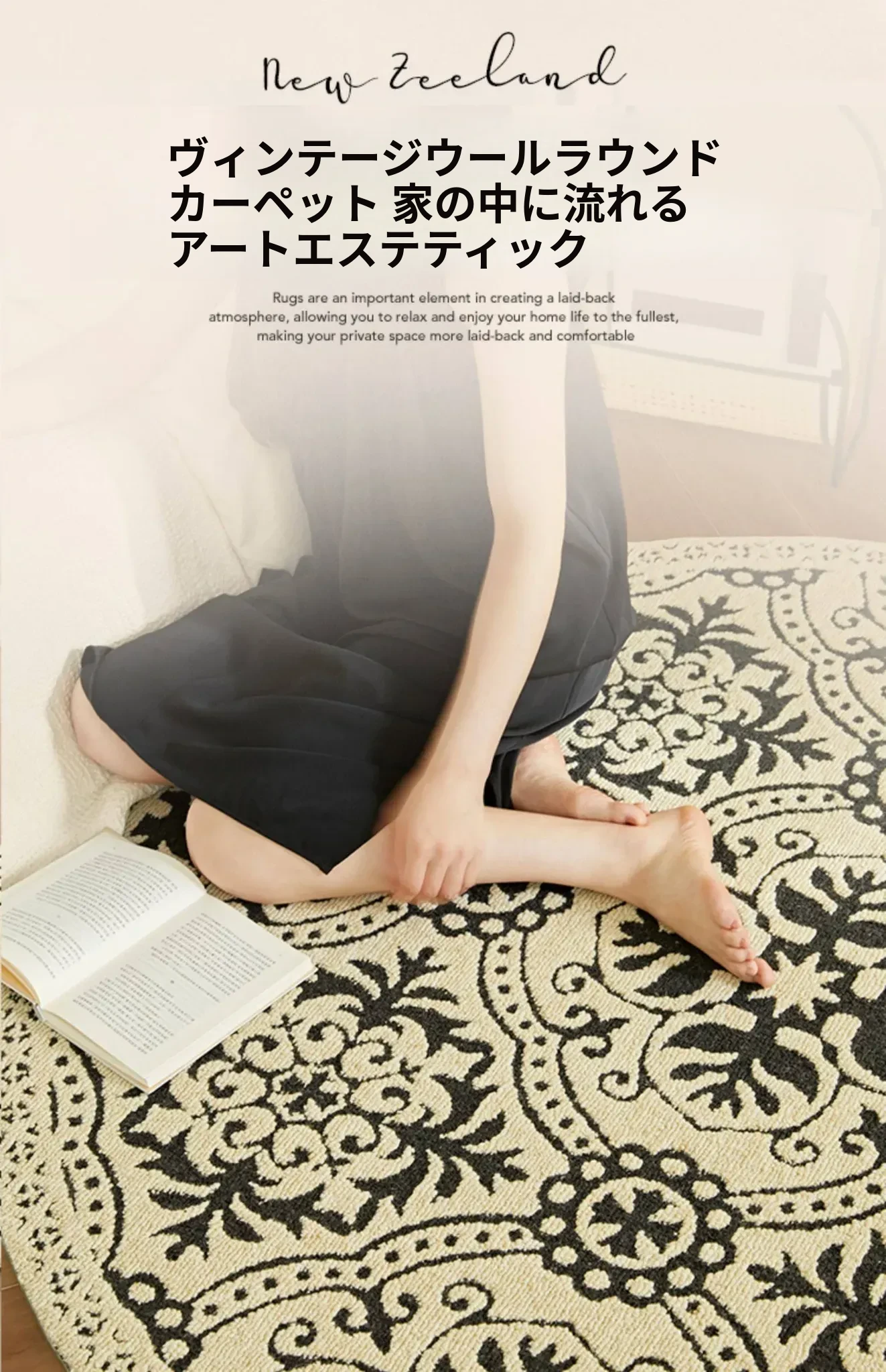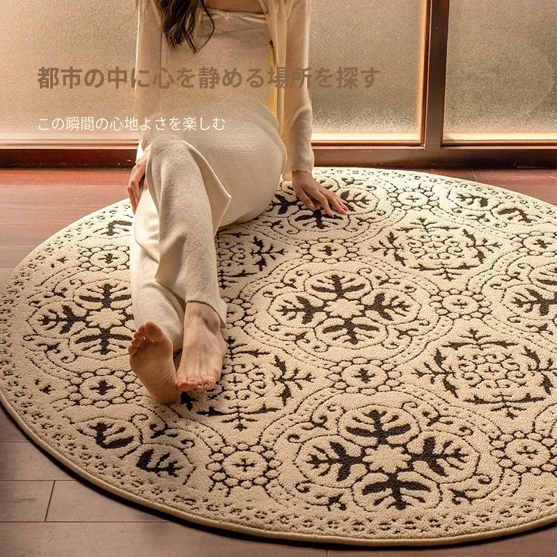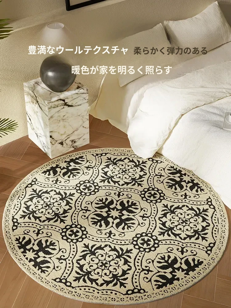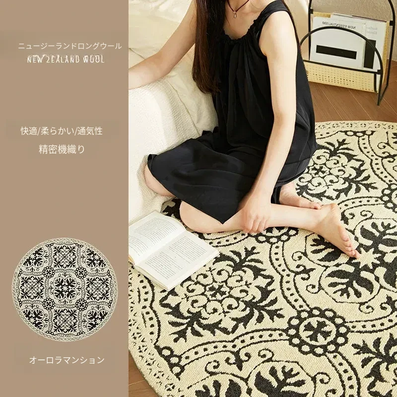 ニュージーランド産ウール製ヴィンテージラウンドカーペット|リビング・ベッドルームに最適なアメリカンスタイルのソファマット|書斎やベッドサイドにもぴったり|汚れに強く、長持ちするデザインで快適な空間を演出!