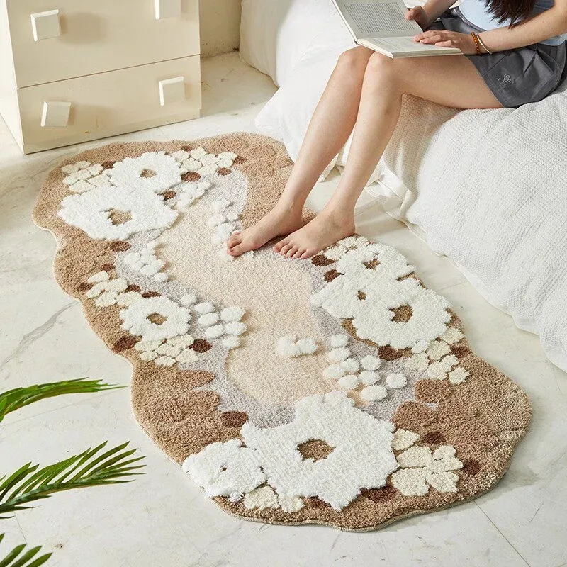寝室にぴったり!不規則なデザインのベッドサイドマットとテーブル用ラグ。厚手のフロアマットで、窓辺や化粧台にも最適。滑り止め付きで安全性抜群!おしゃれで使いやすい、あなたの空間を彩るアイテムです!