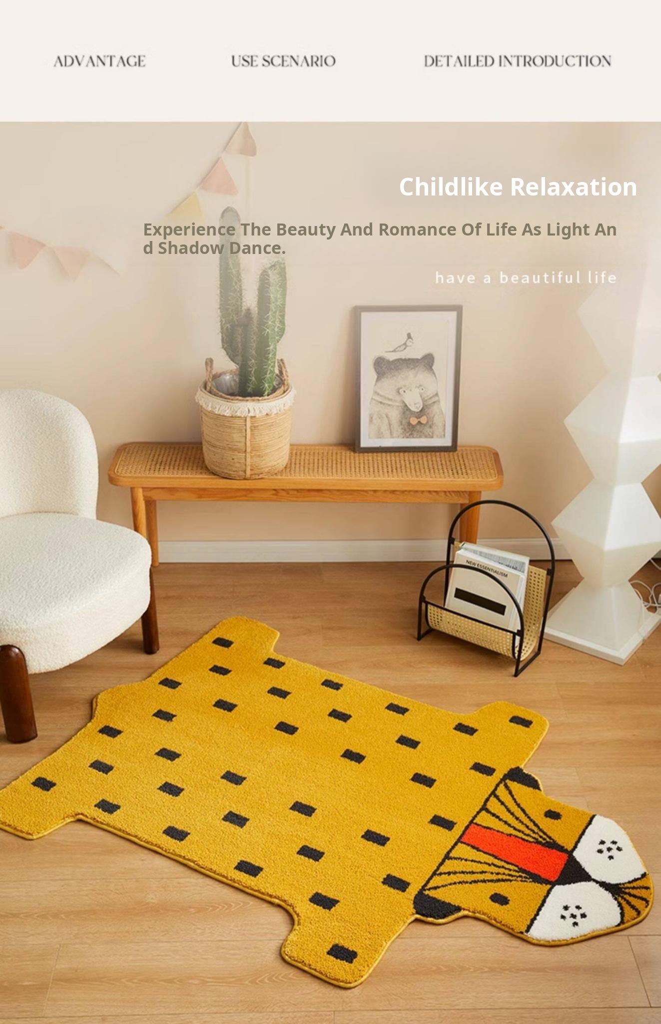 Irregular Cute Tiger Bedroom Area Rug - Cartoon Carpet for Living Room and Kids' Room, Non-Slip Play Mat for Gaming Zone, Perfect for Adding Fun and Style!