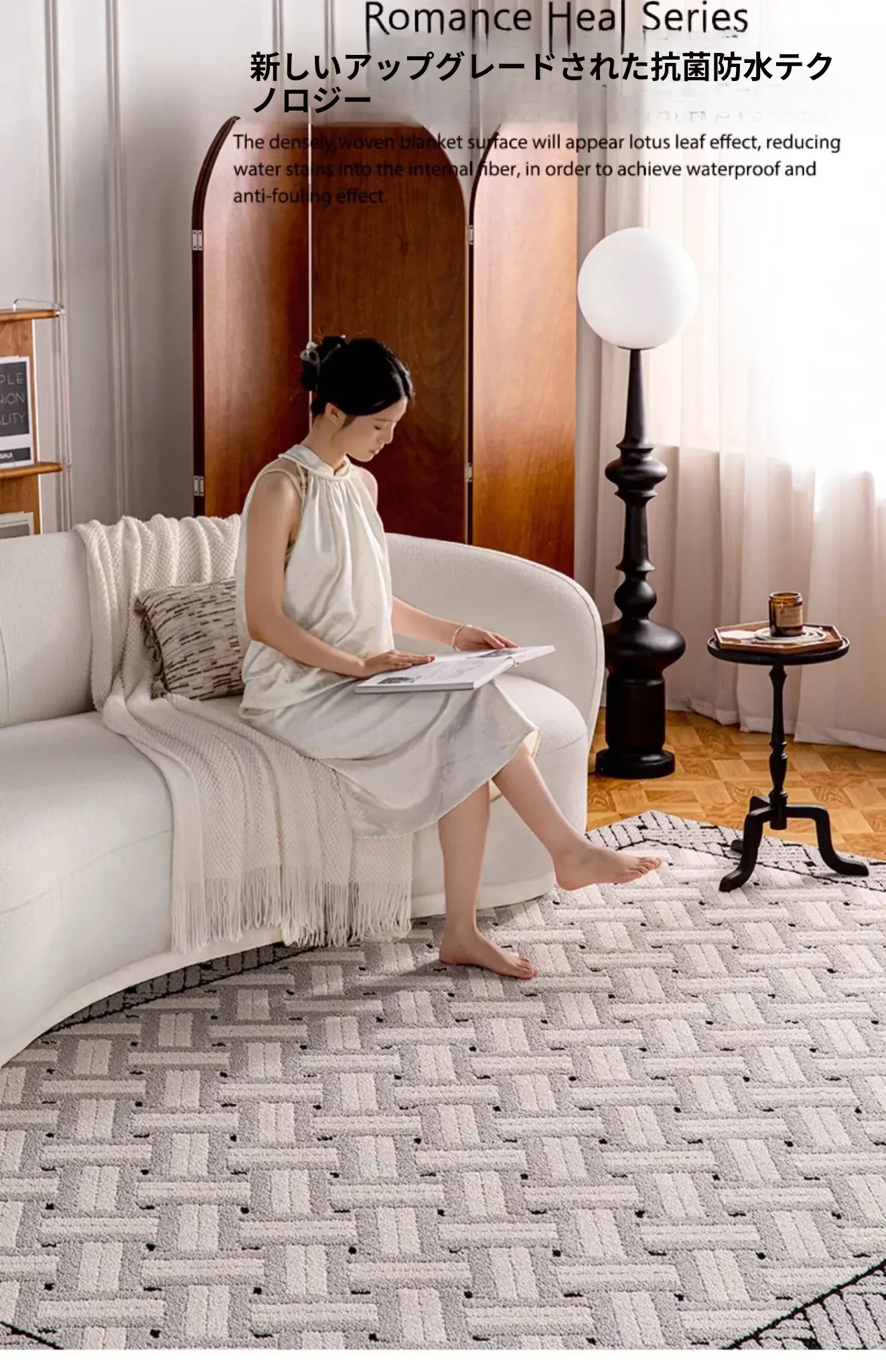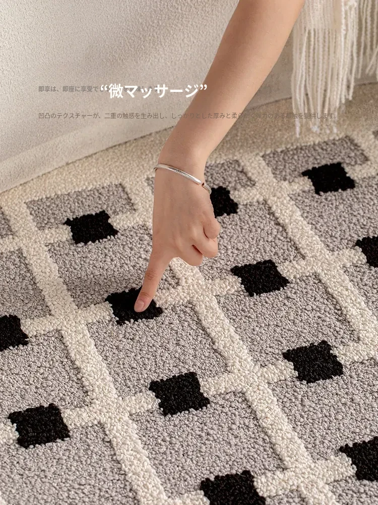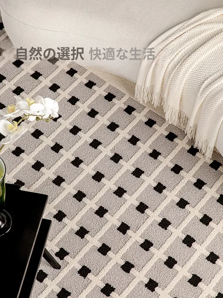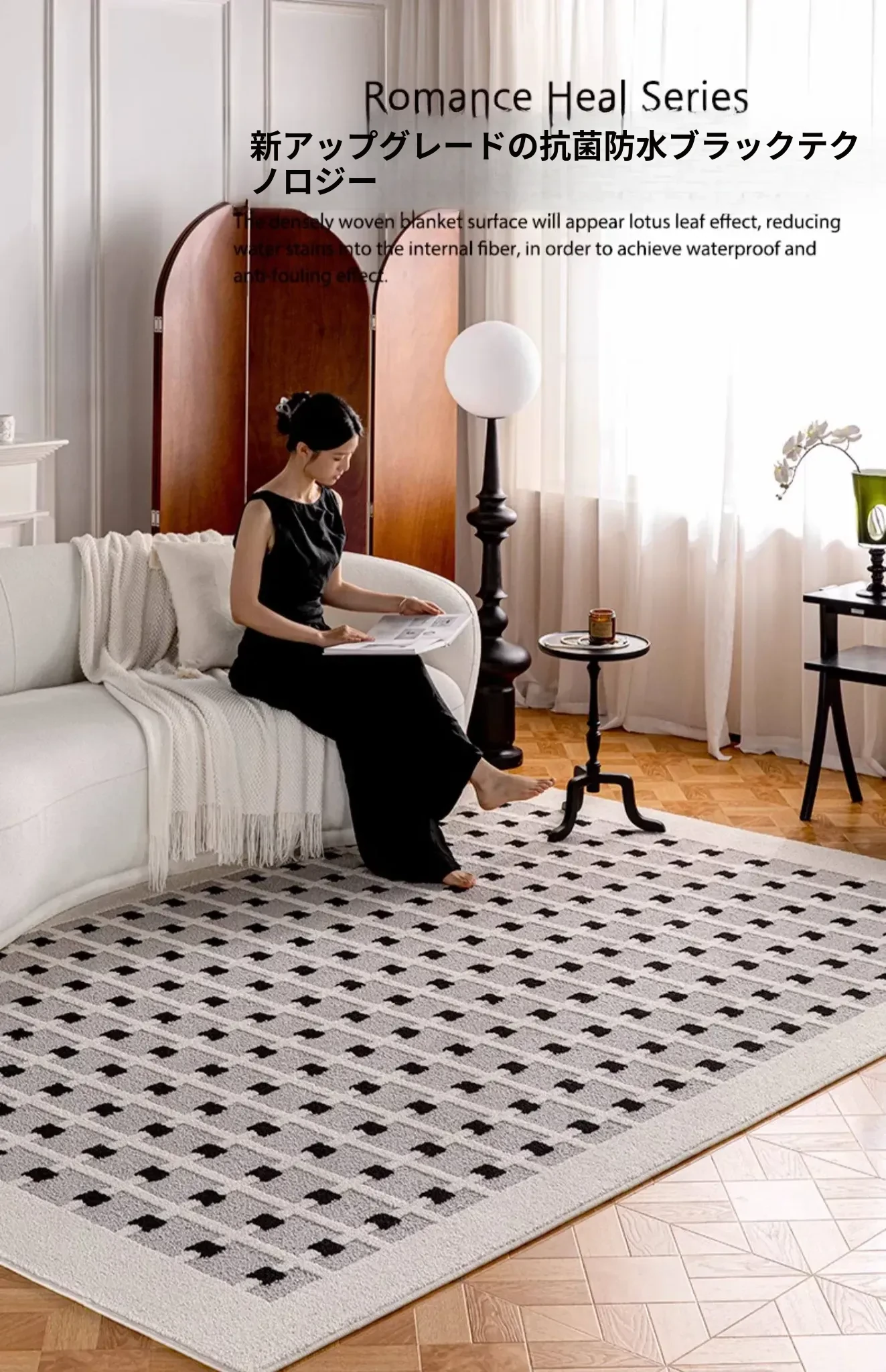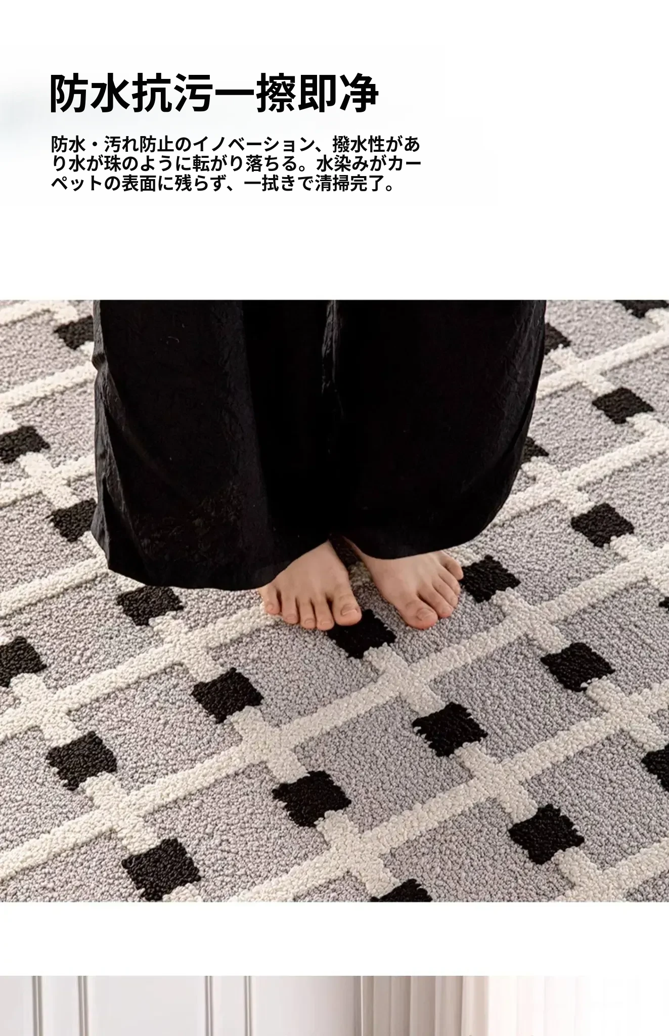 カーボンソンのラグ - 高級感あふれる軽やかなデザイン!防水・防汚でお手入れ不要の格子模様。リビングや寝室、ソファの下にぴったりのスクエアマット。おしゃれな空間を演出します!