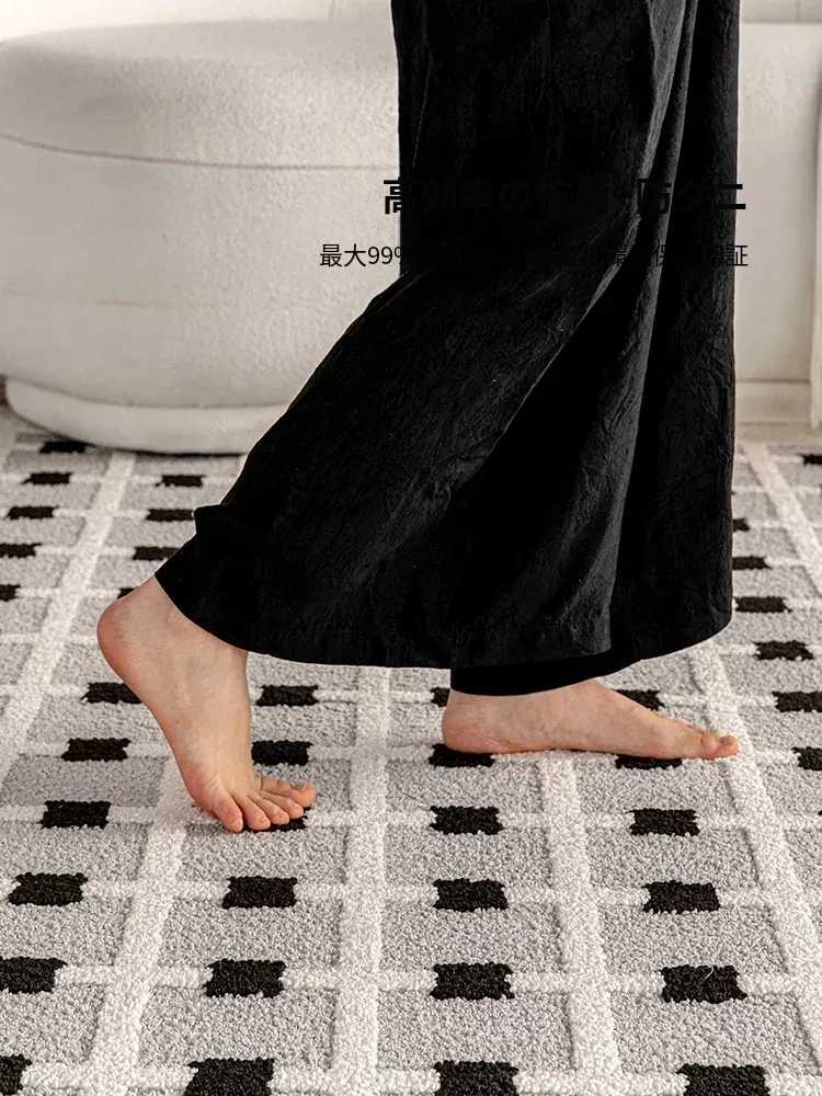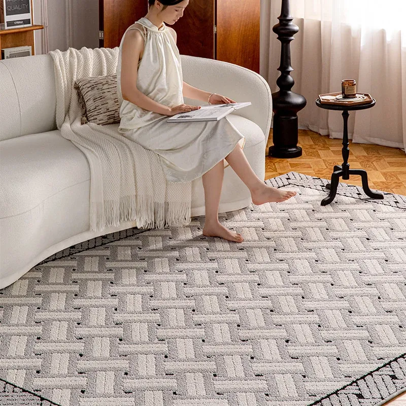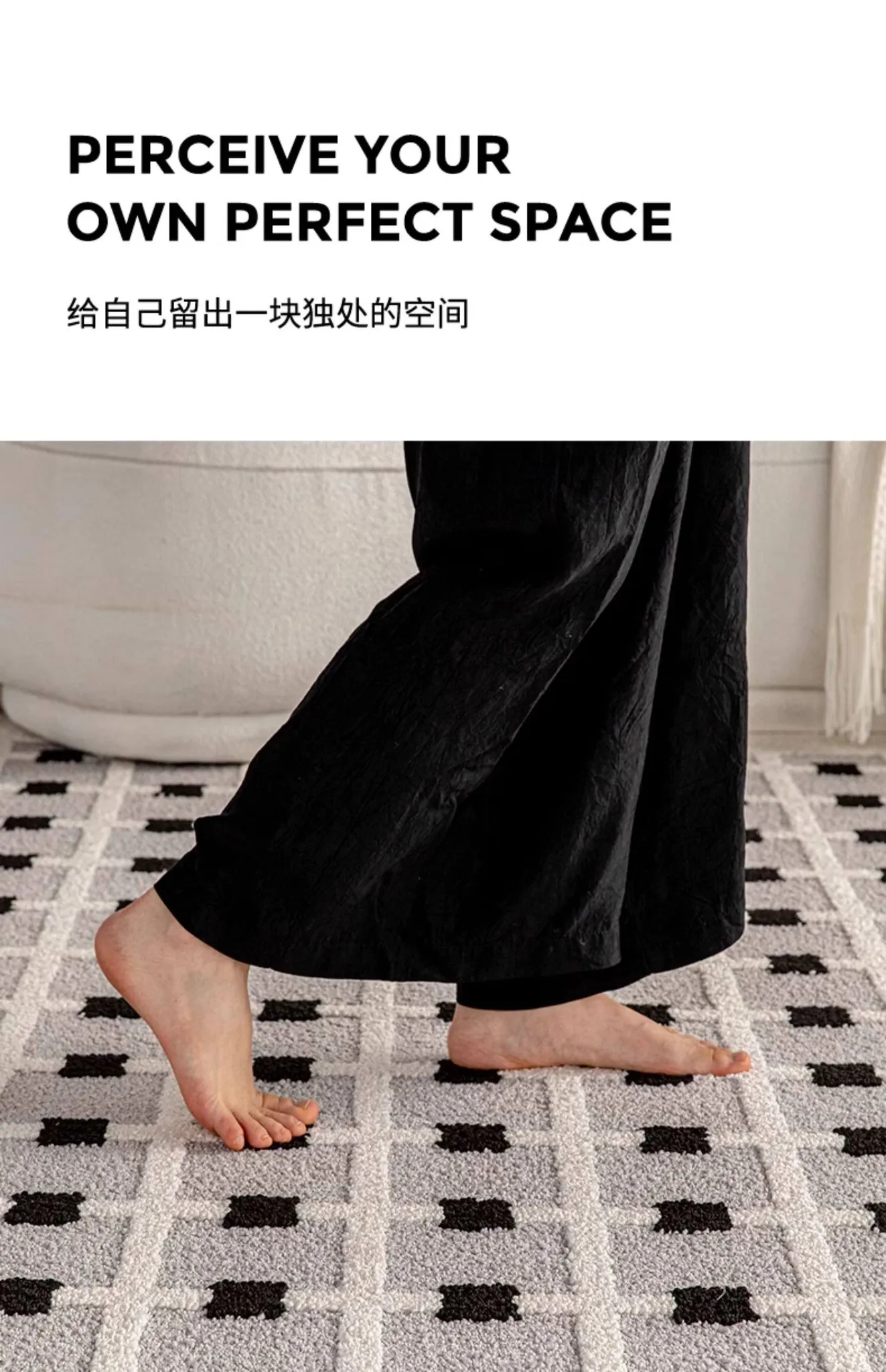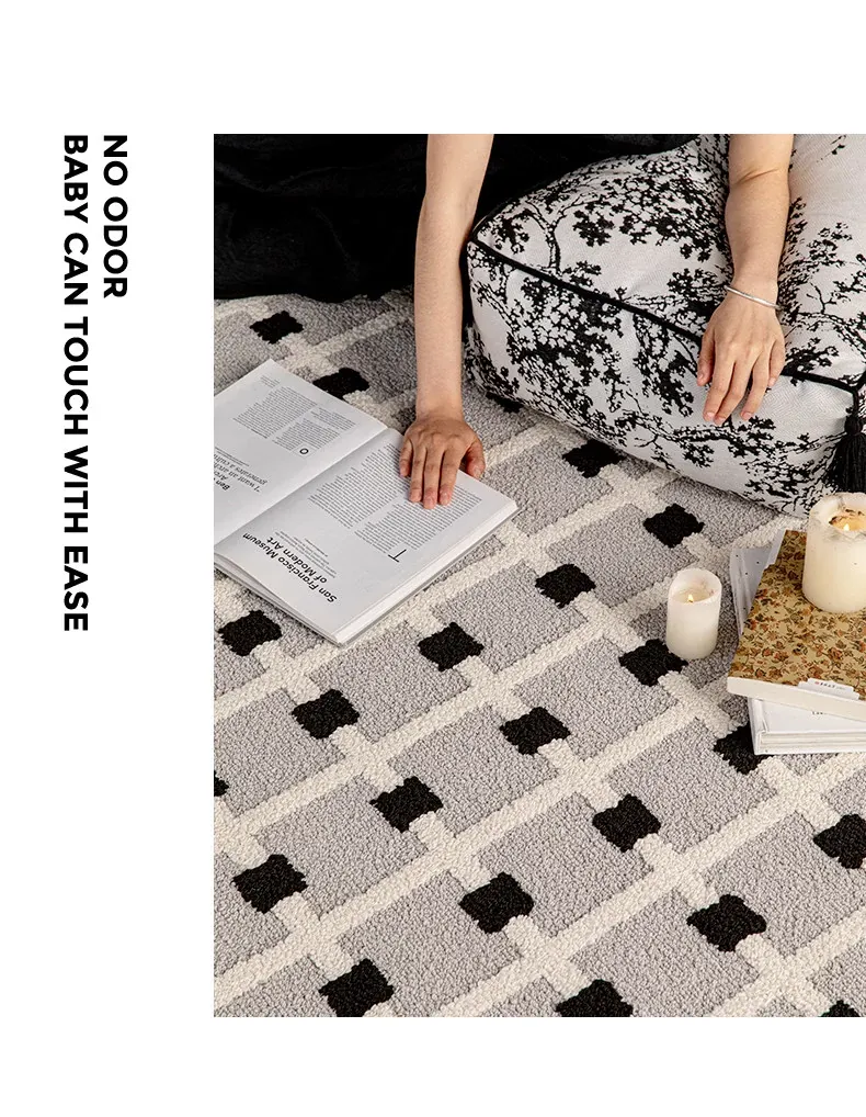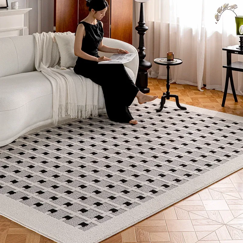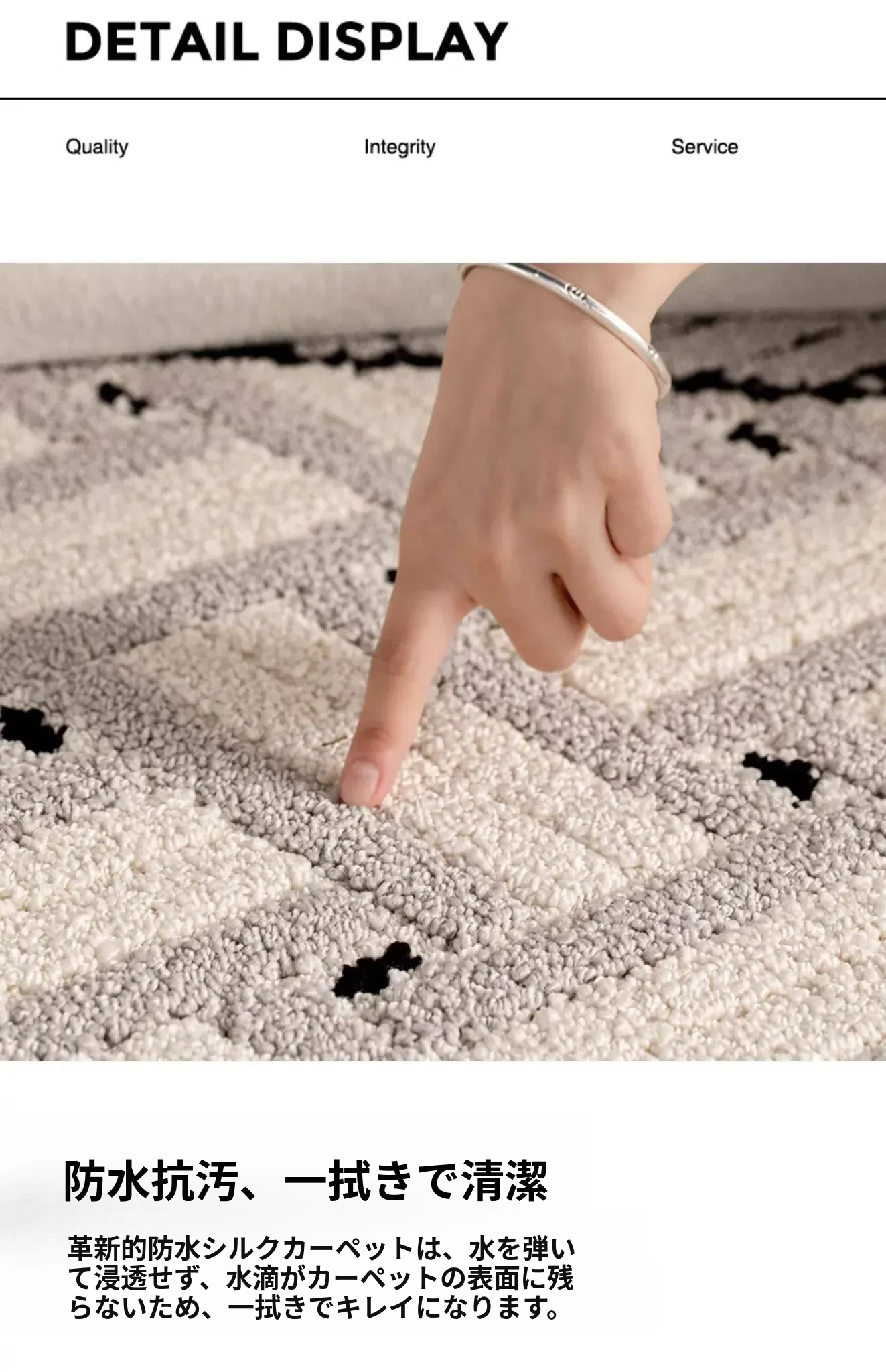 カーボンソンのラグ - 高級感あふれる軽やかなデザイン!防水・防汚でお手入れ不要の格子模様。リビングや寝室、ソファの下にぴったりのスクエアマット。おしゃれな空間を演出します!
