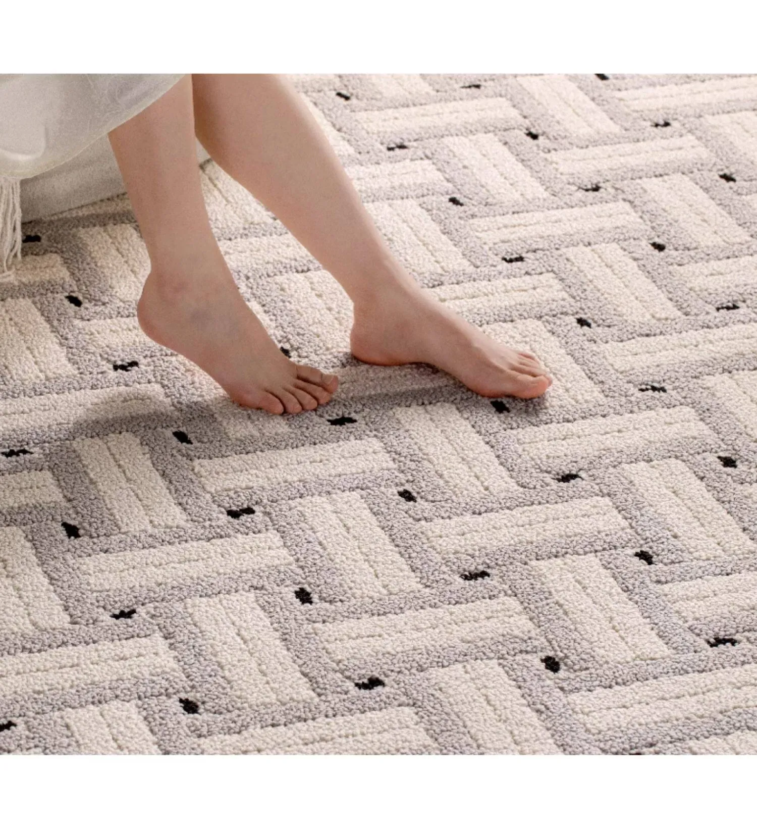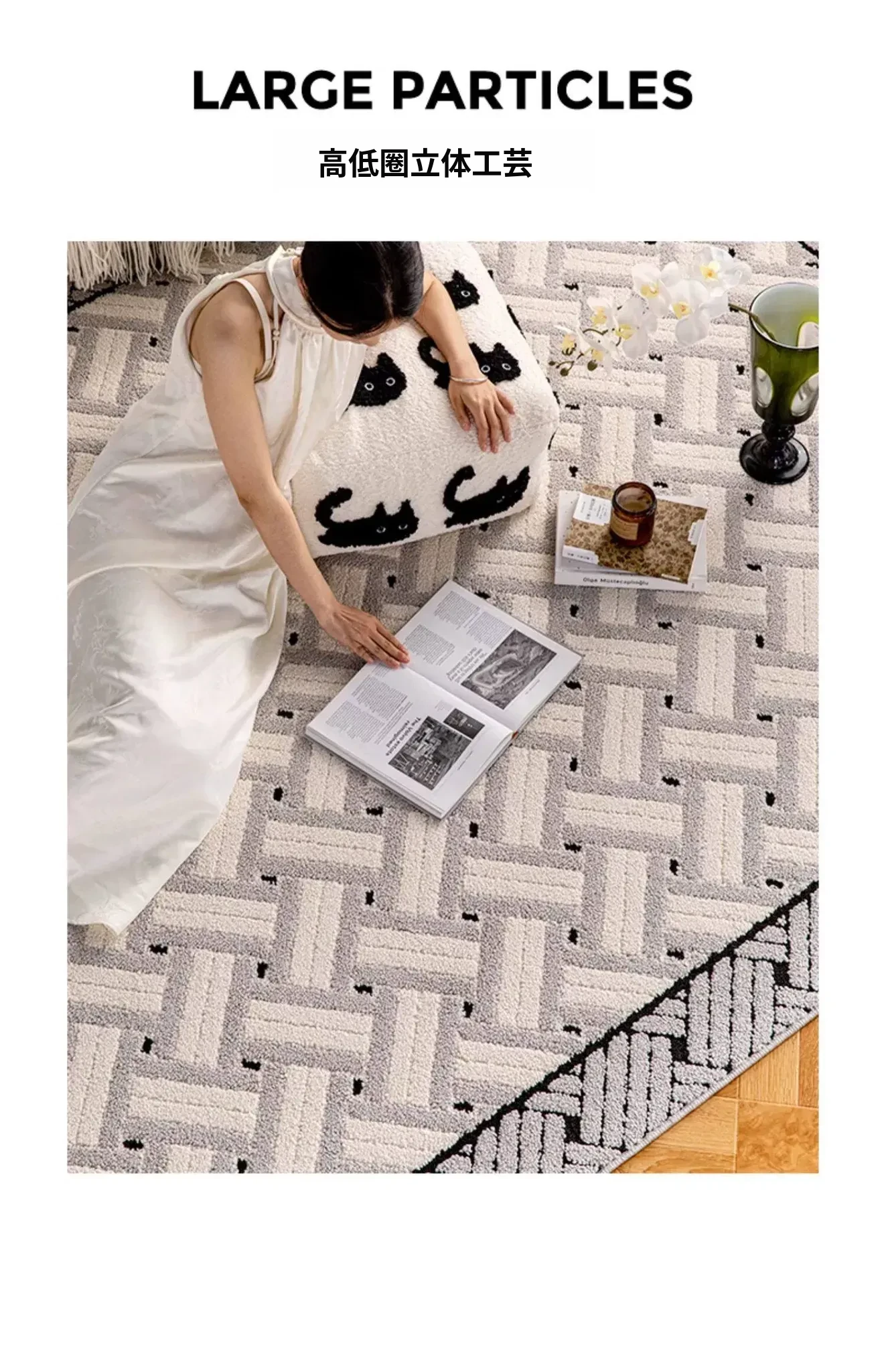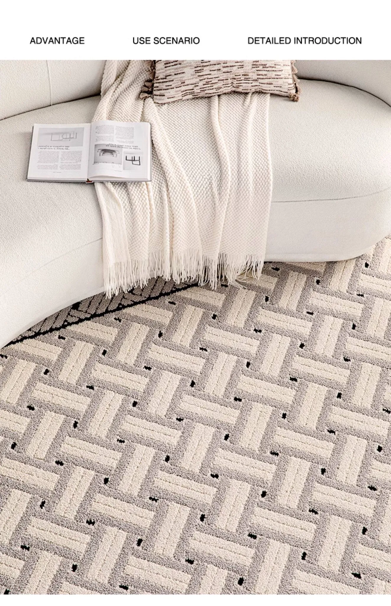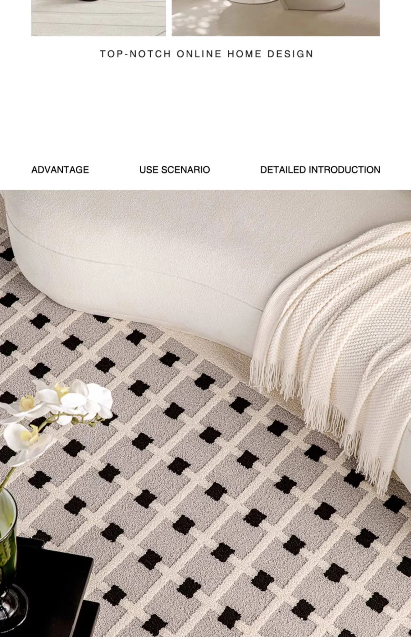 カーボンソンのラグ - 高級感あふれる軽やかなデザイン!防水・防汚でお手入れ不要の格子模様。リビングや寝室、ソファの下にぴったりのスクエアマット。おしゃれな空間を演出します!