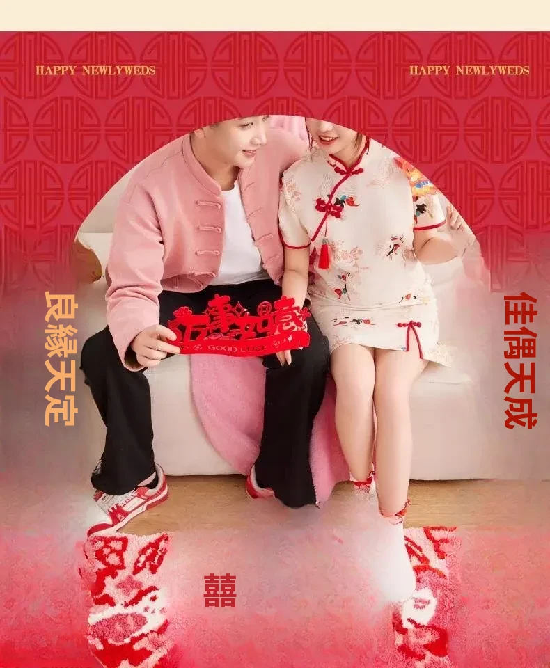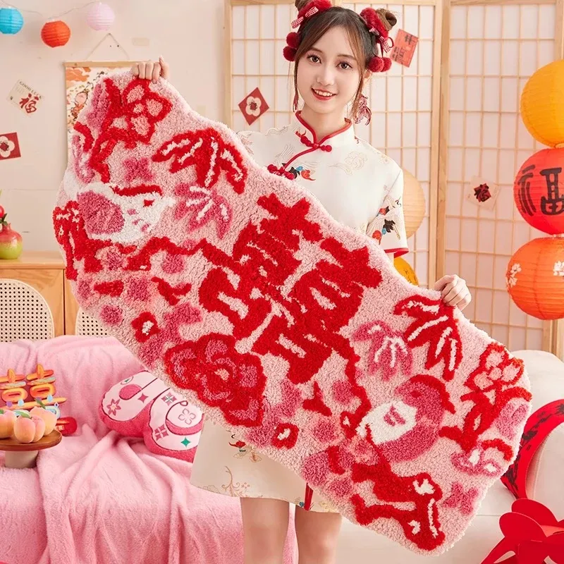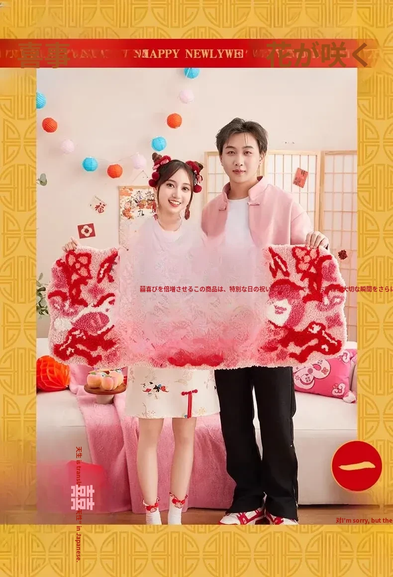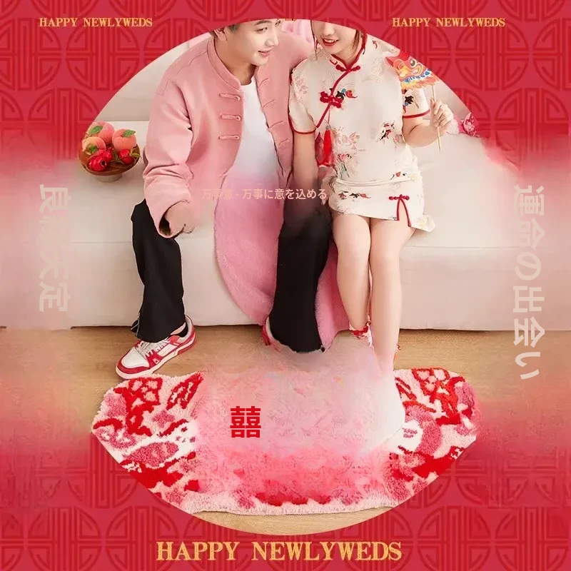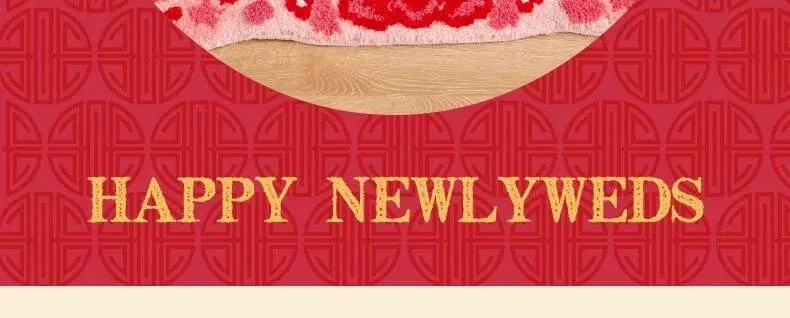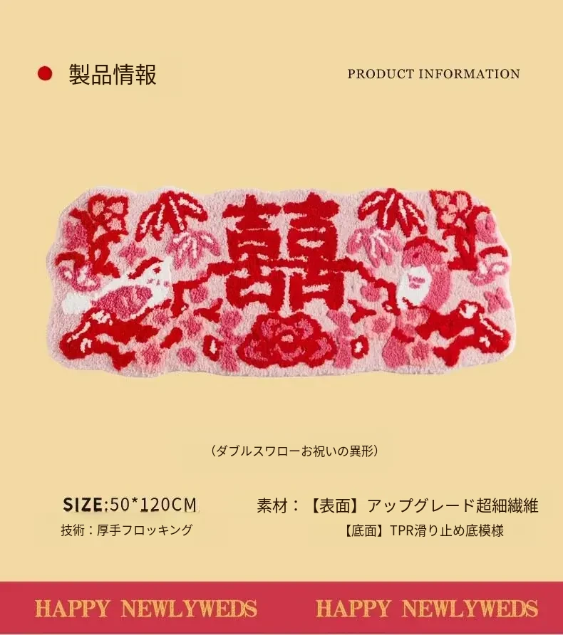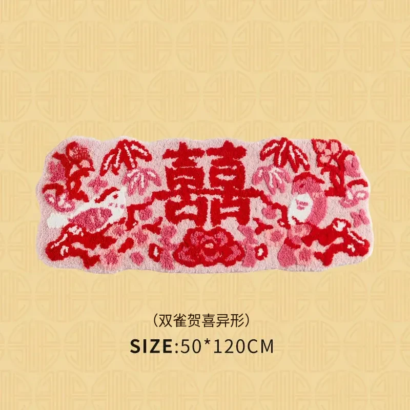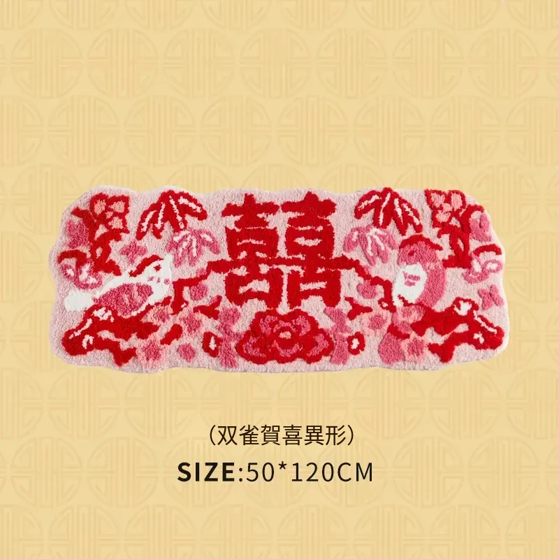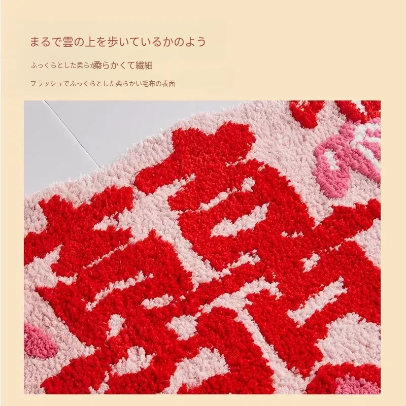 カウォスン結婚祝いマット - 婚礼の喜びを感じる特別なデザイン!寝室やリビングにぴったりのユニークな形のカーペットで、幸福な空間を演出。ソファやベッドサイドに最適な喜字デザインのラグです。
