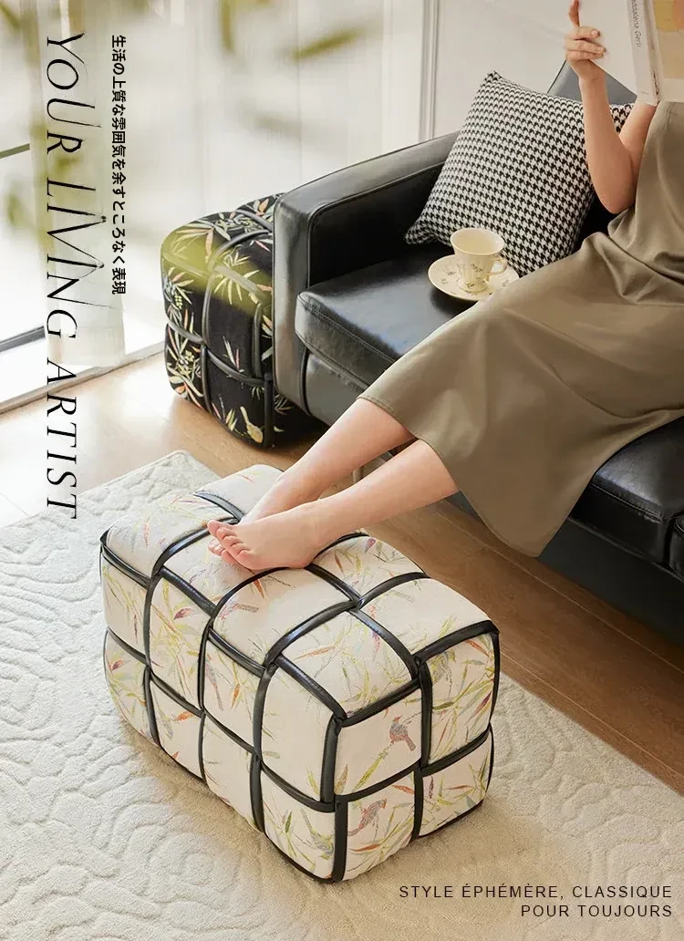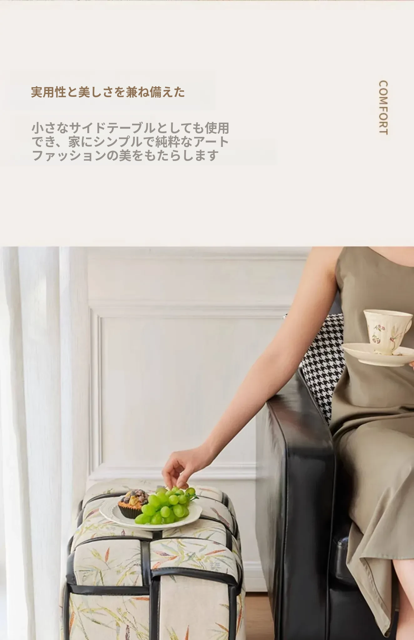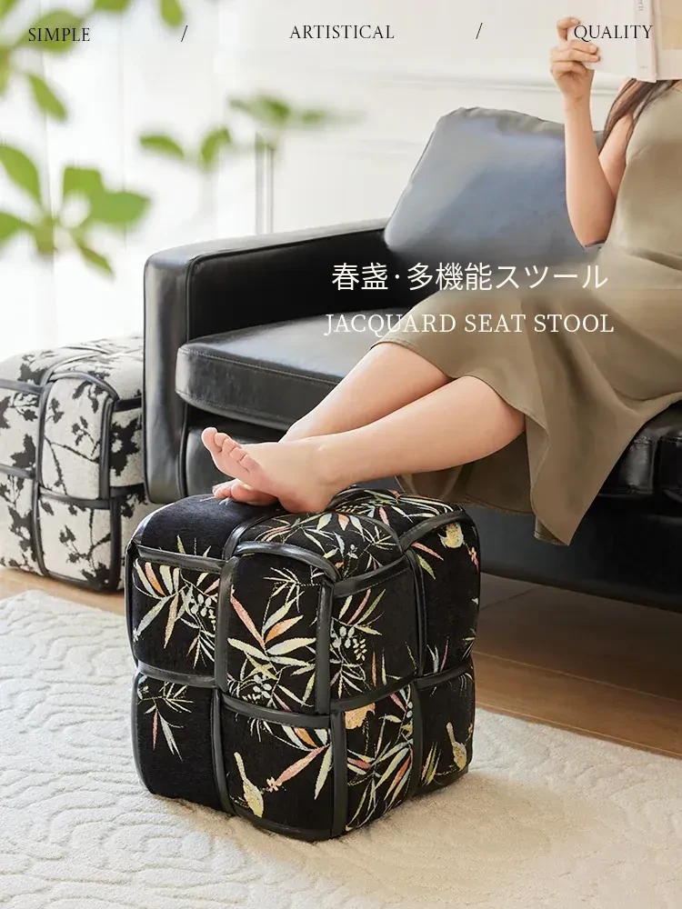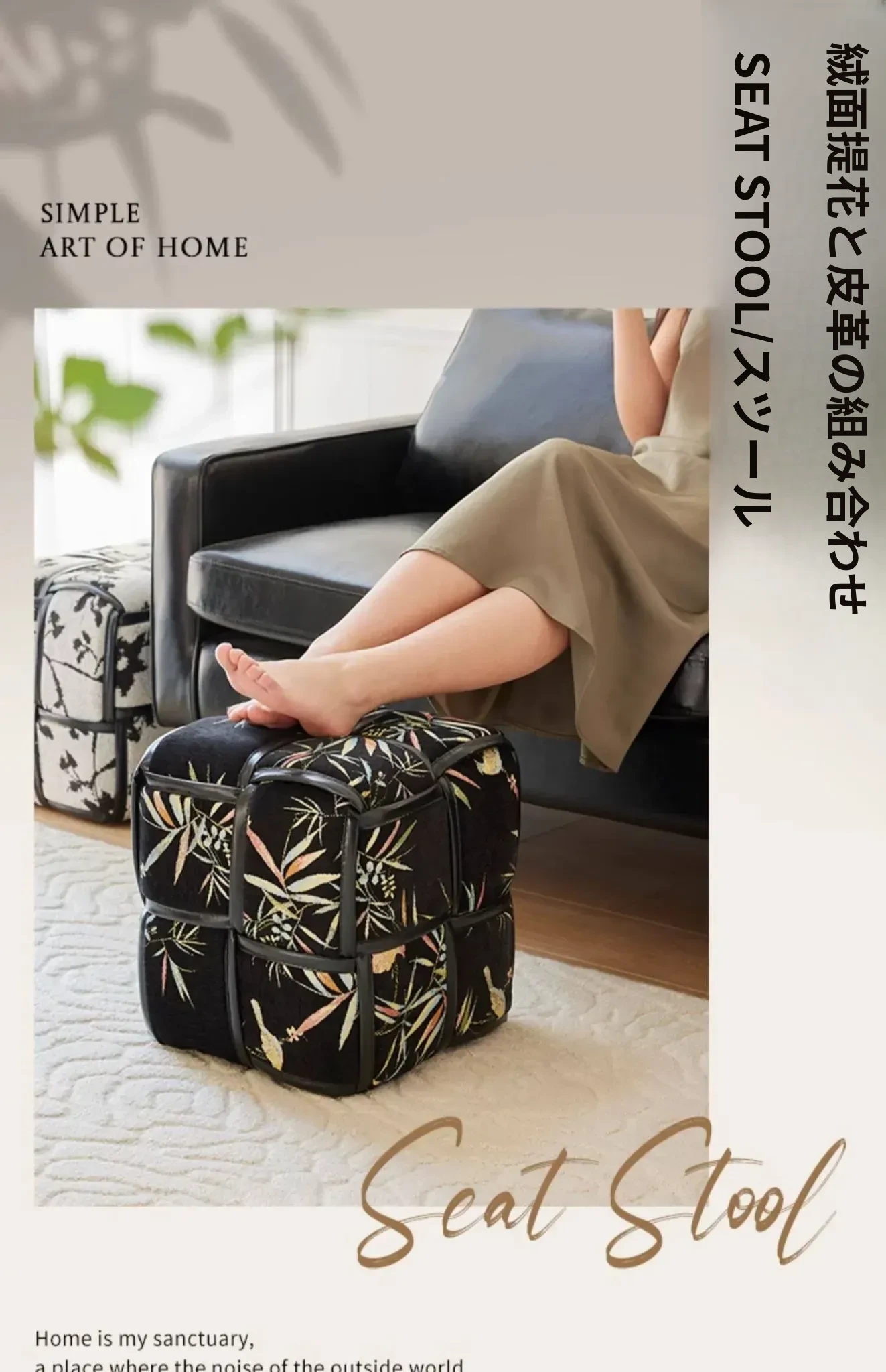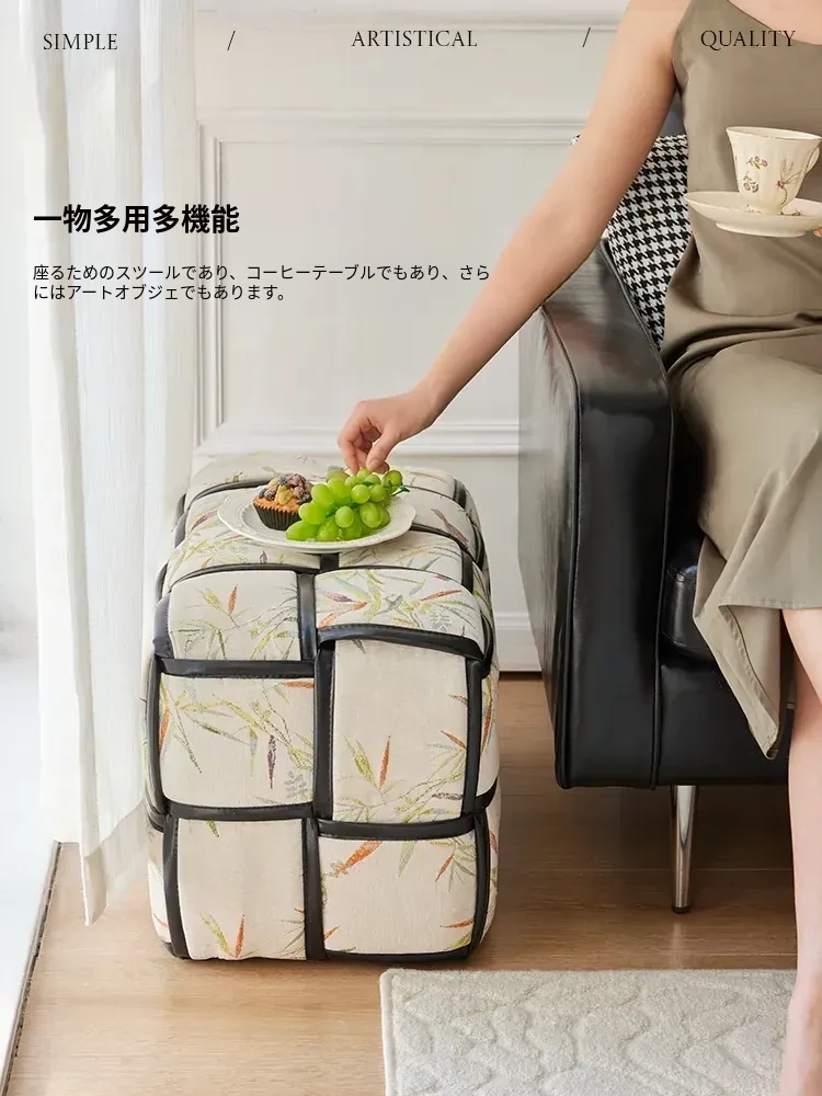カワソンレザー多機能スツール|2026新作モダンシンプルラグジュアリースタイル|高級感あふれるリビング用クッション|おしゃれで快適な家の必需品!