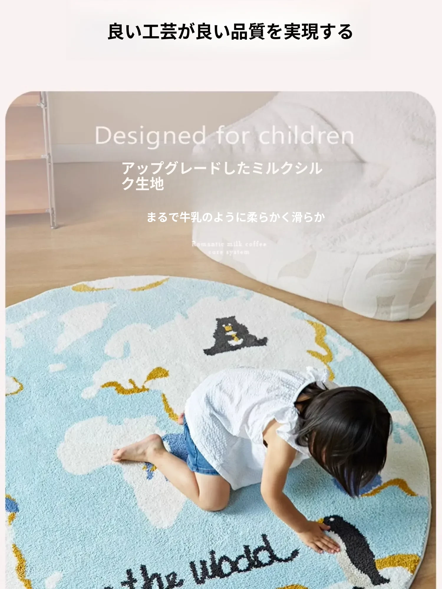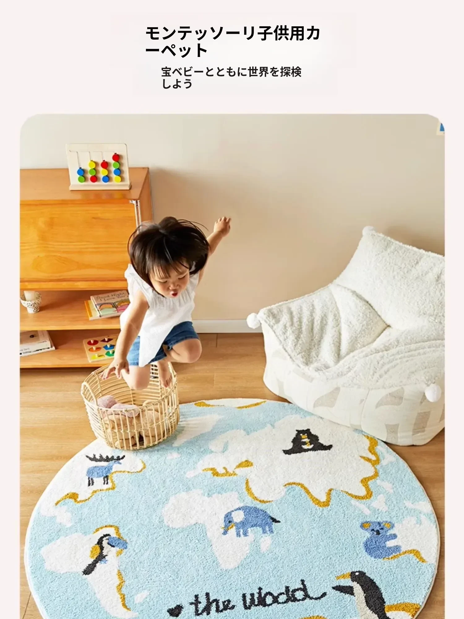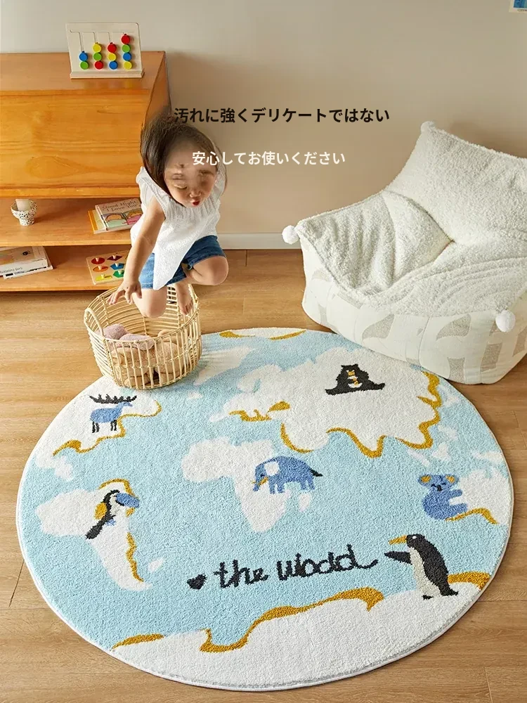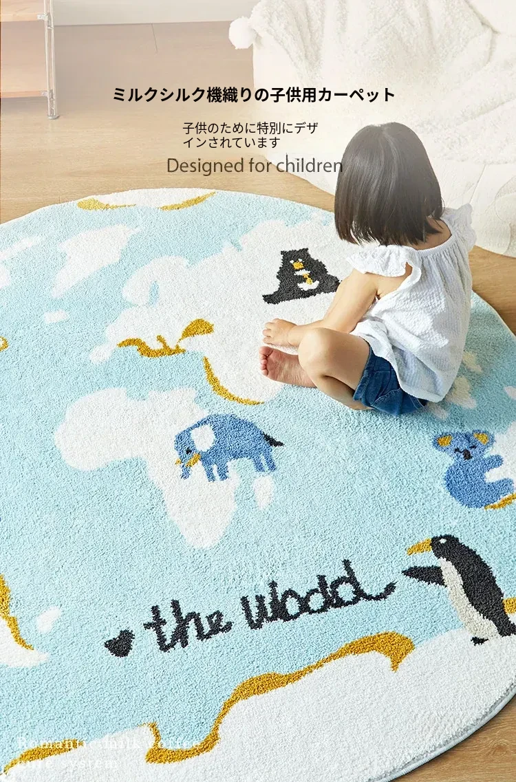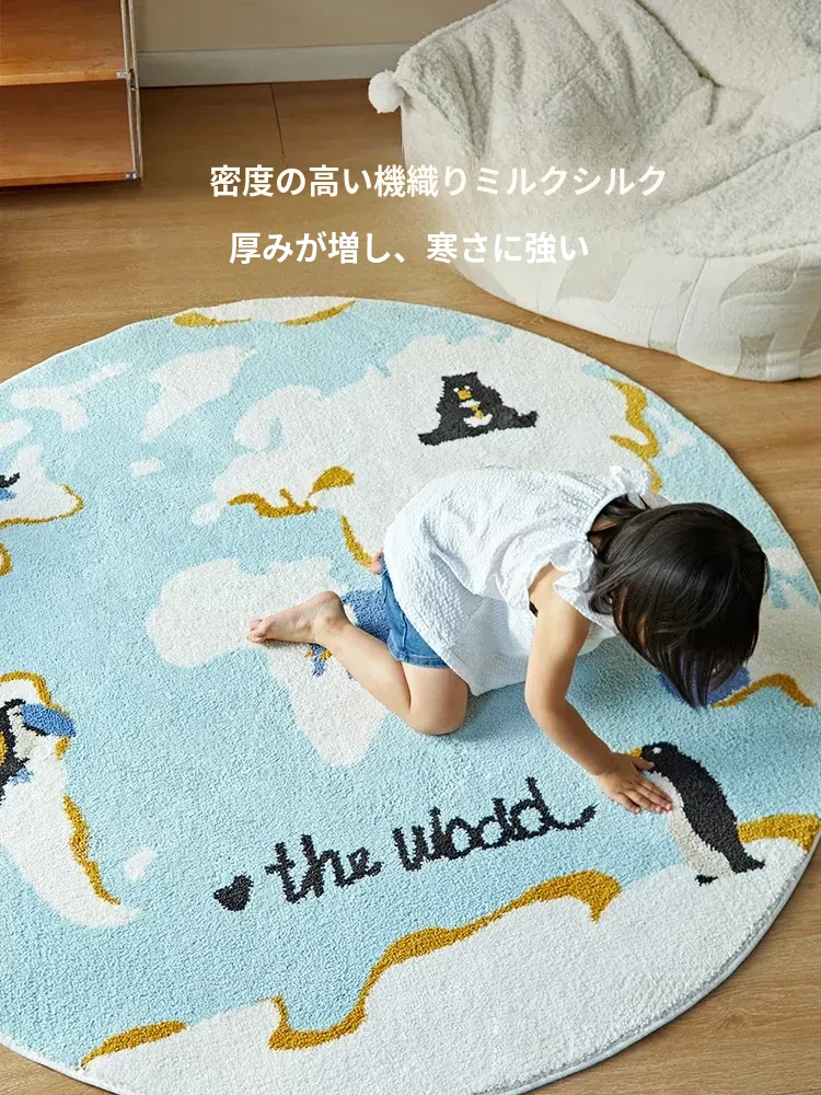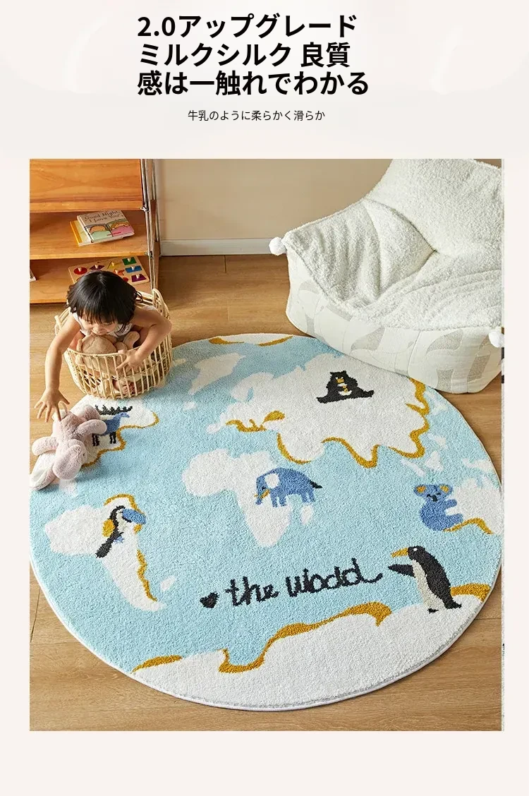 子供部屋の読書エリアに最適!シンプルで高級感漂う防滑ミルクシルク厚手ラウンドカーペット。かわいいデザインのベッドサイドマットで、快適な空間を演出します!