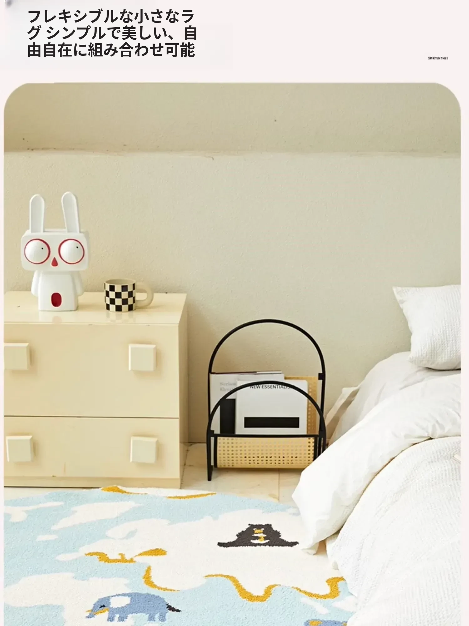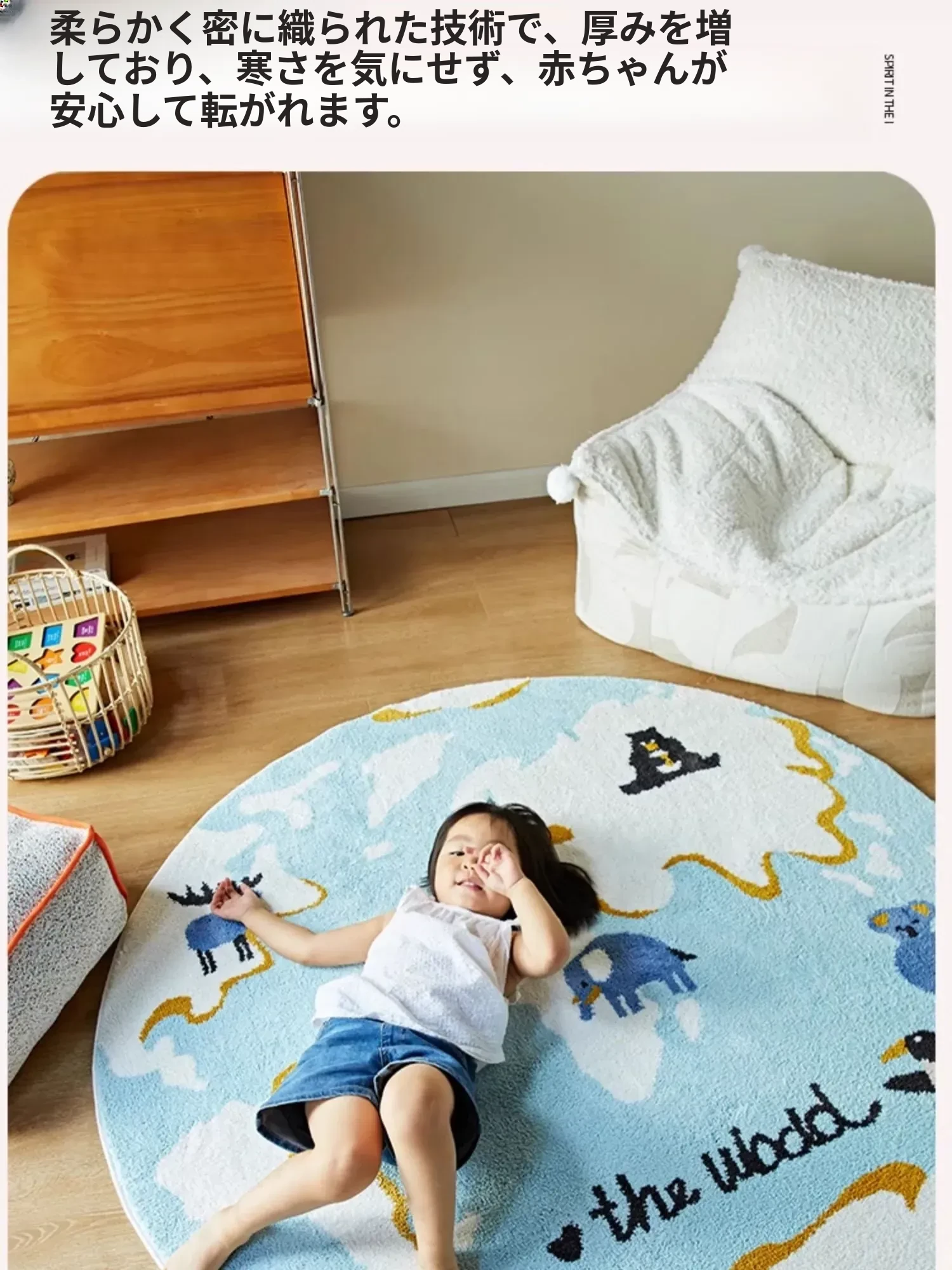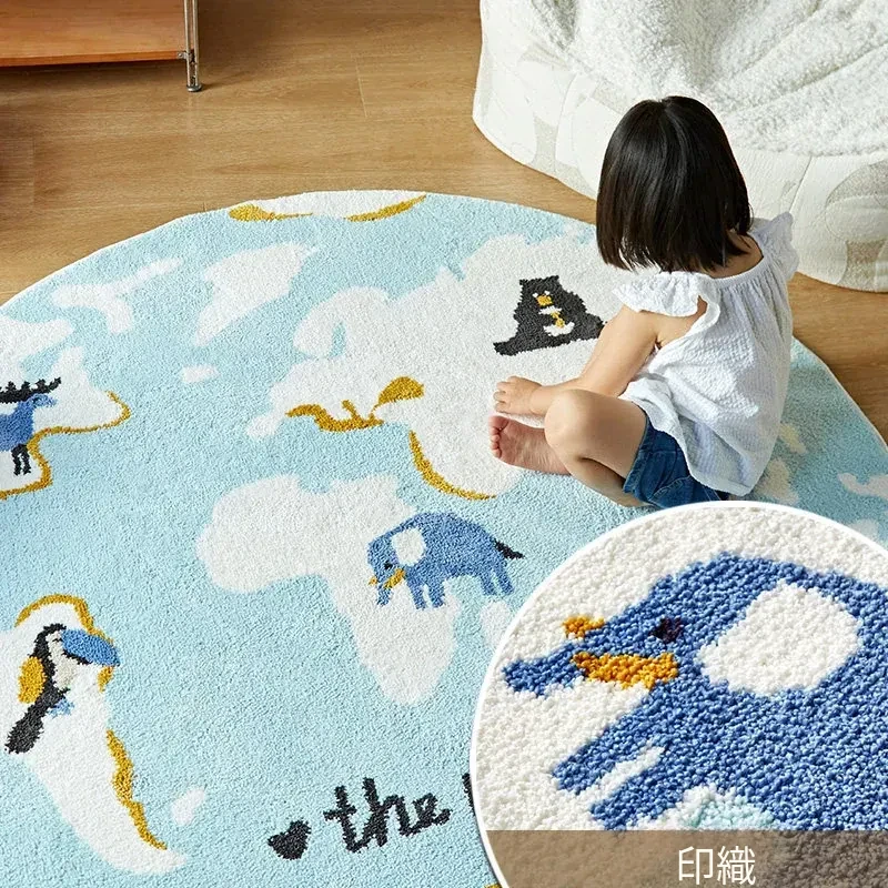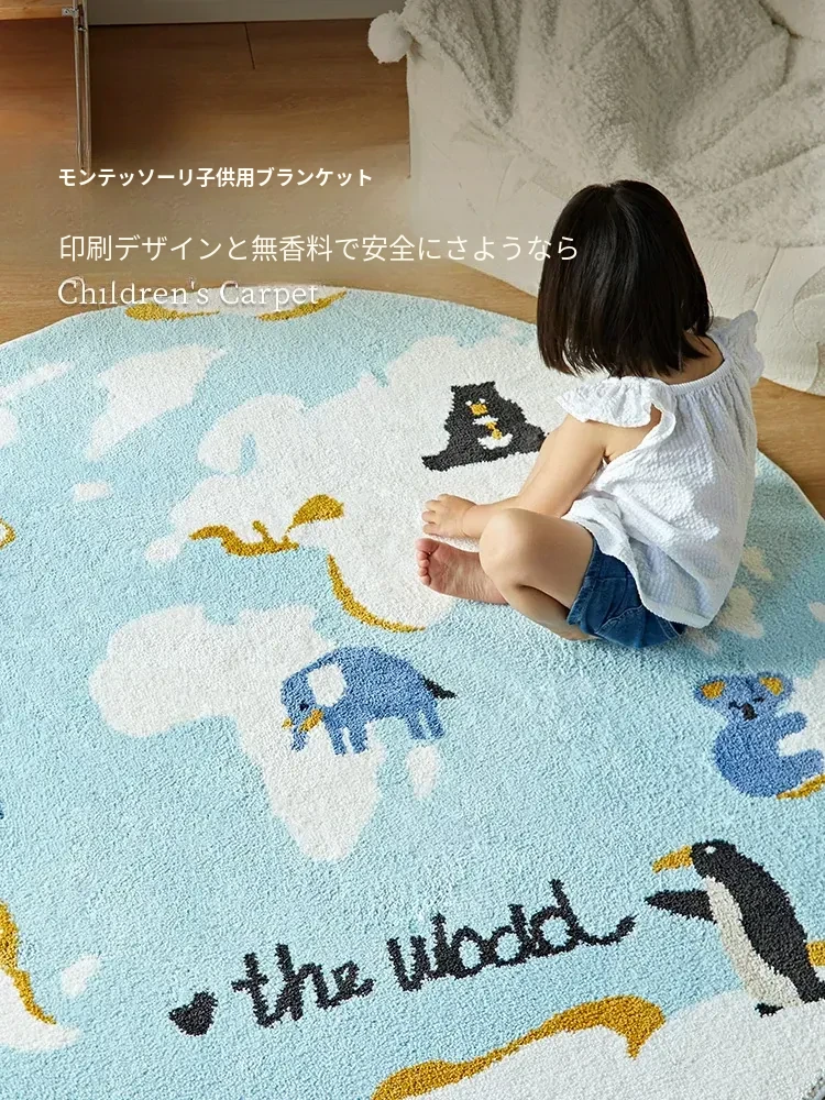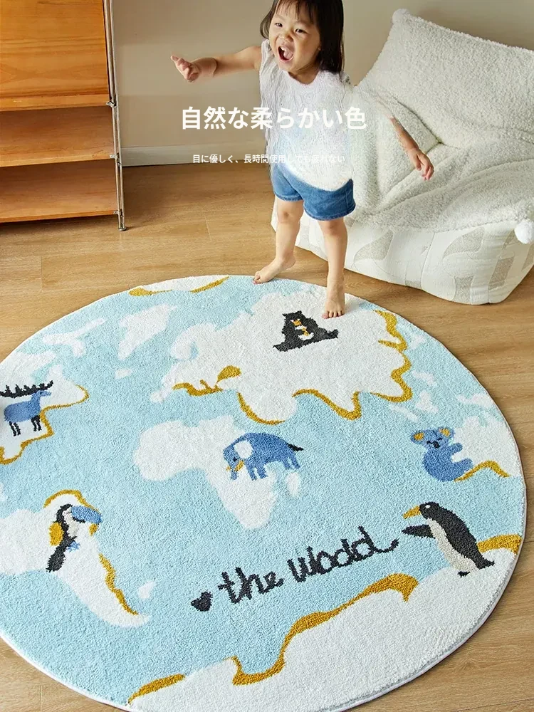 子供部屋の読書エリアに最適!シンプルで高級感漂う防滑ミルクシルク厚手ラウンドカーペット。かわいいデザインのベッドサイドマットで、快適な空間を演出します!