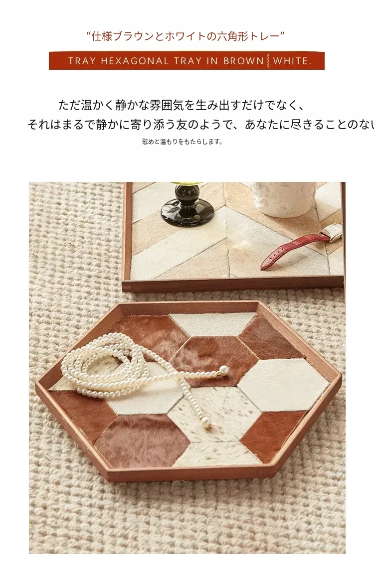 仕様 ブラウン&ホワイト 六角形トレイ 26*2.2cm