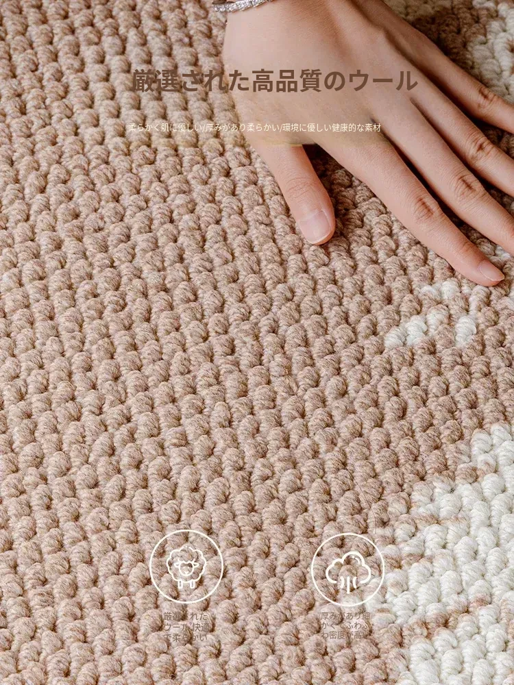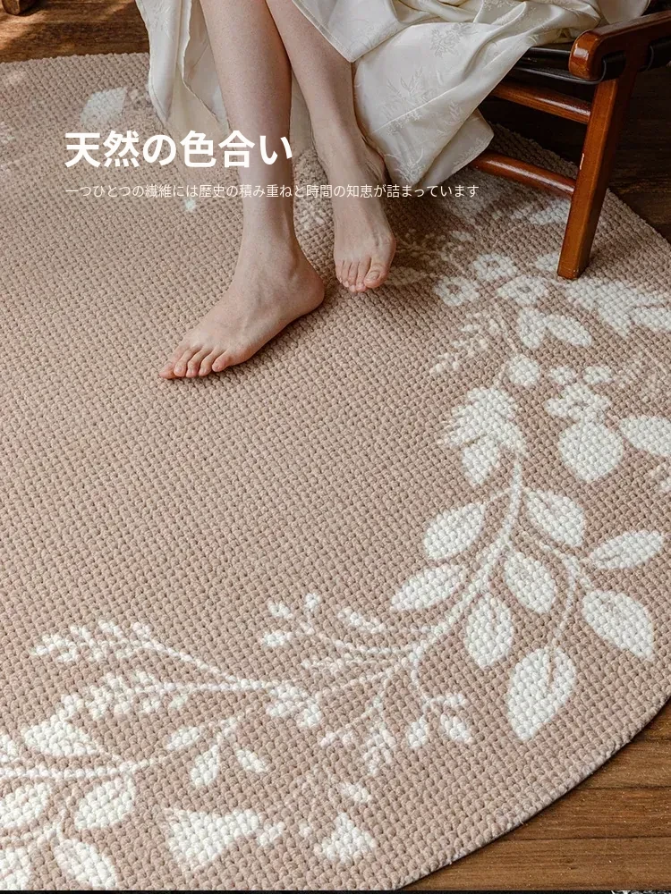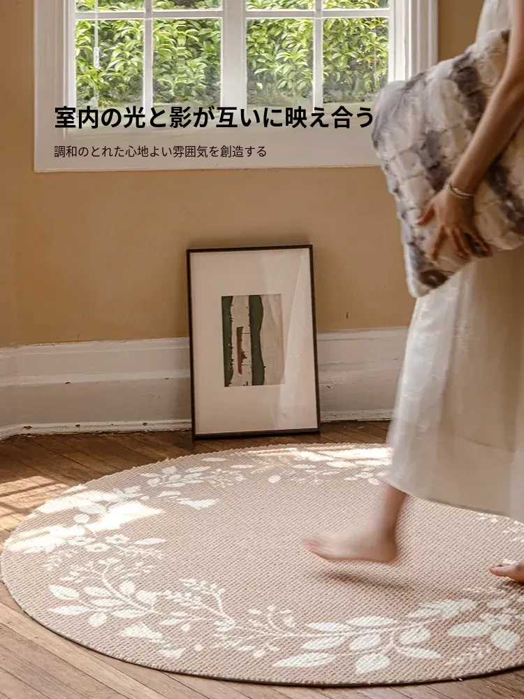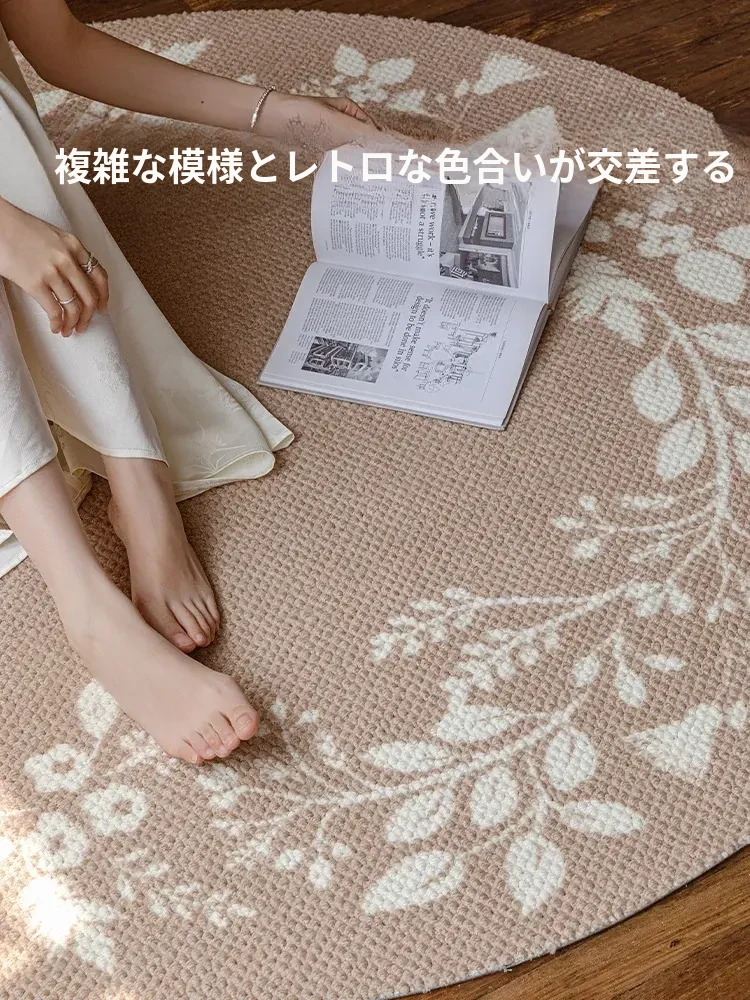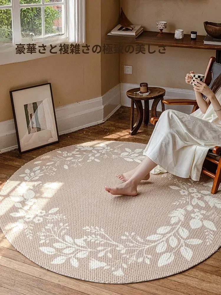 ラグジュアリーなフレンチスタイルのニュージーランドウール丸型カーペット - 寝室やクローゼットにぴったりなレトロクリーム色の高級感あふれるマット。心地よい柔らかさで、毎日の癒しを提供します!