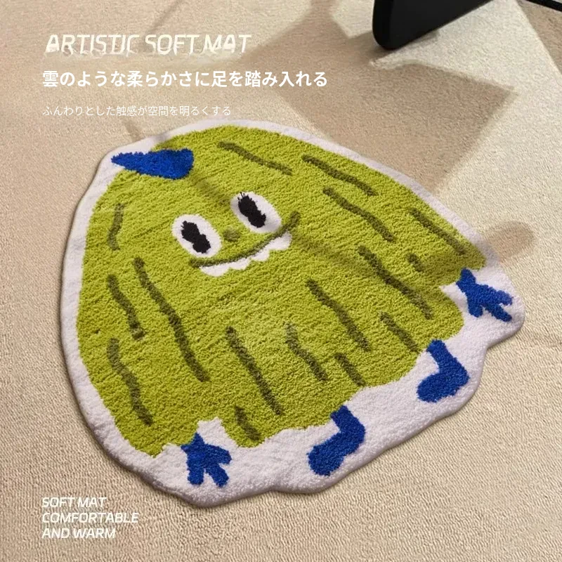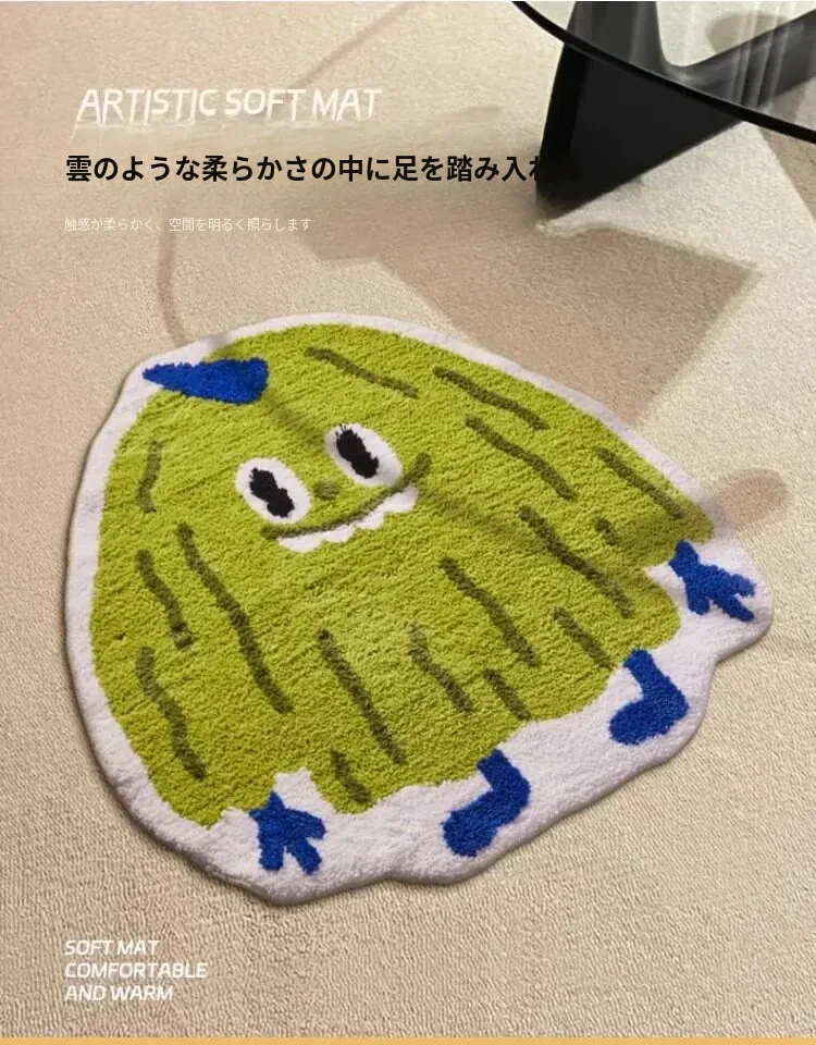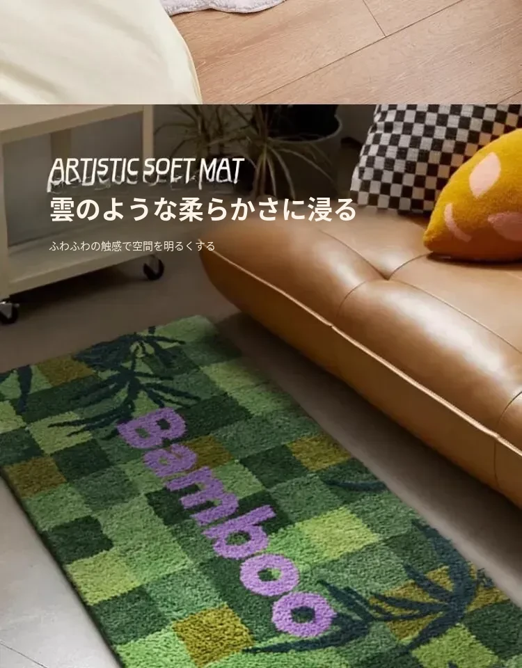 高級感溢れるグリーンのベッドサイドカーペット!滑り止め付きで、安全に快適な空間を演出。主寝室やリビングにぴったりな長方形のふわふわマットで、足元から心地よさをお届けします。