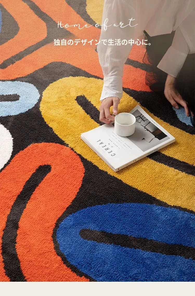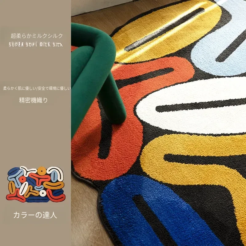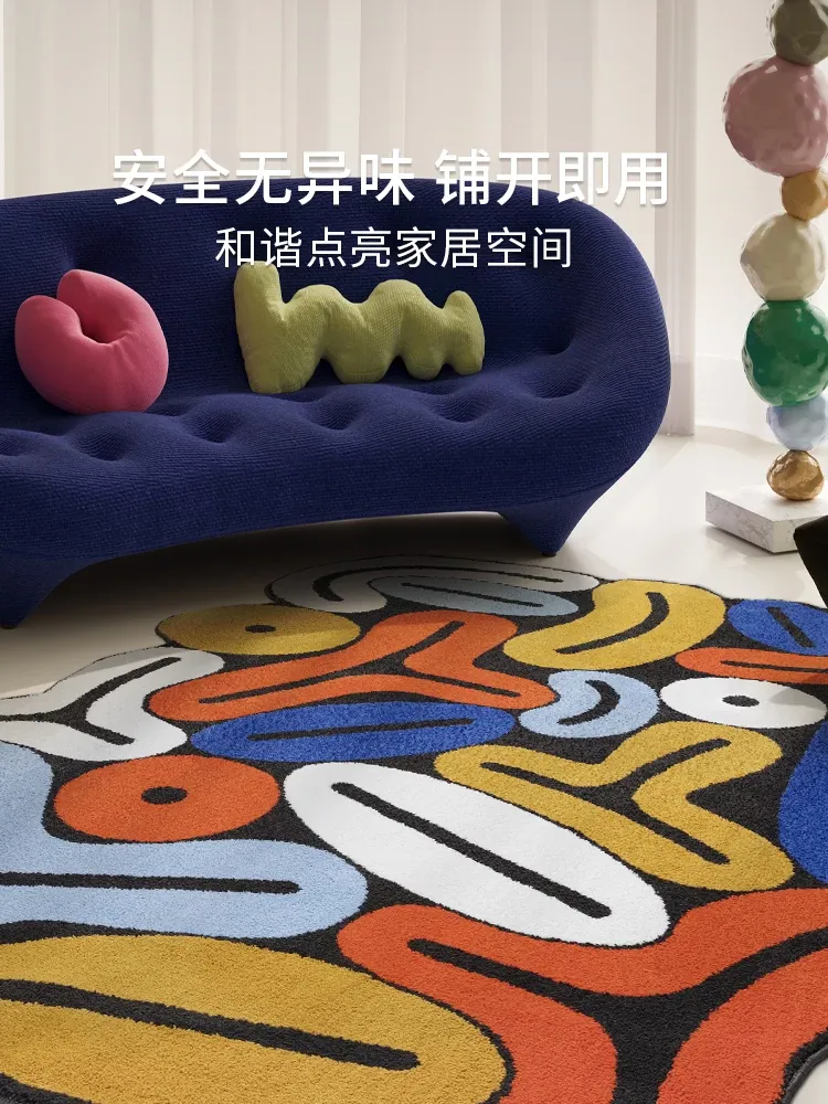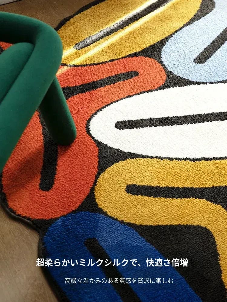 不規則デザインの高級感漂うカラフルなモダンラグ - リビングや書斎、クローゼット、ベッドサイドに最適なドーパミンソファマット!心地よい空間を演出します。