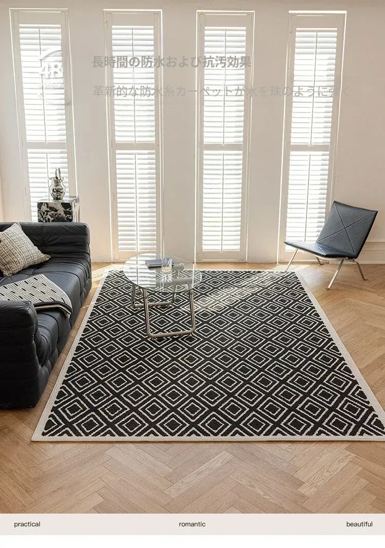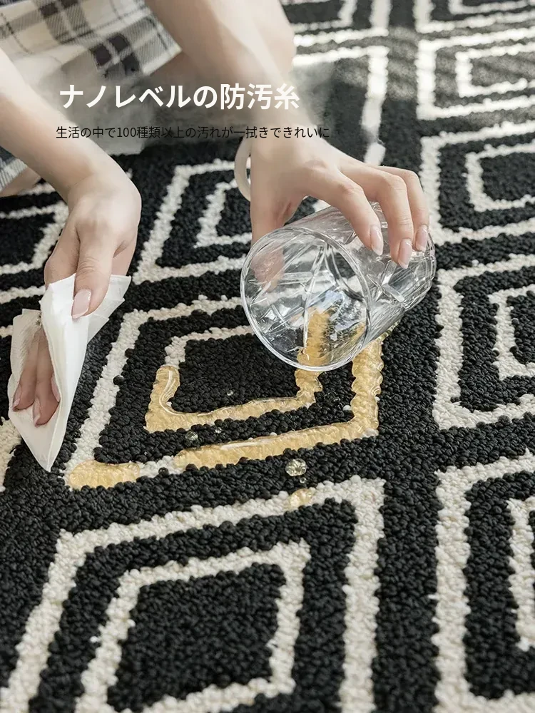 フランス風ヴィンテージリビングルームラグ 高級感漂う軽やかなソファマット 防水・防汚でお手入れ簡単 寝室ベッドサイドにも最適!
