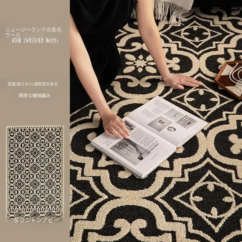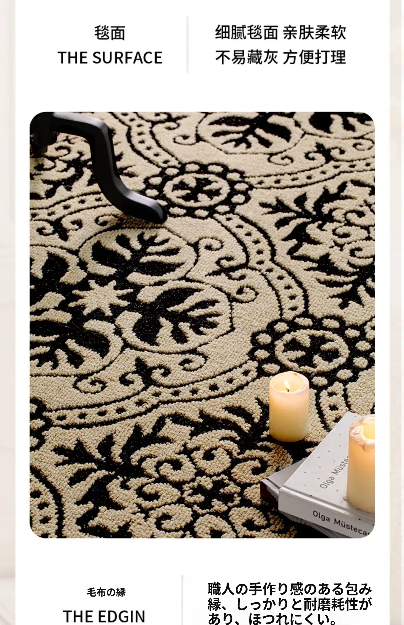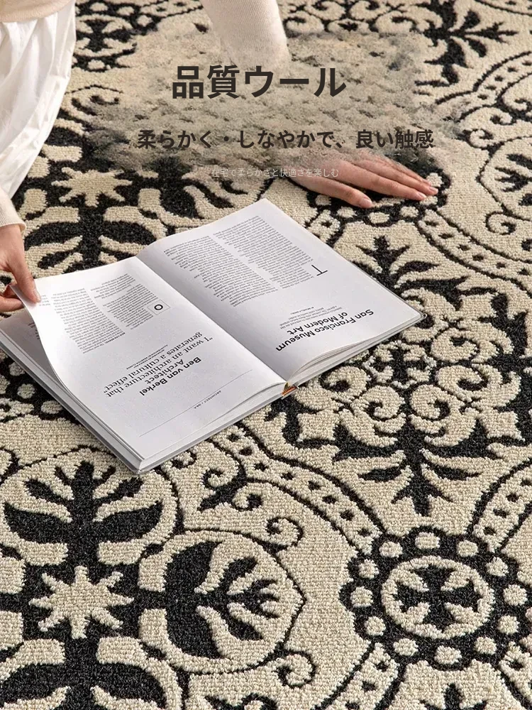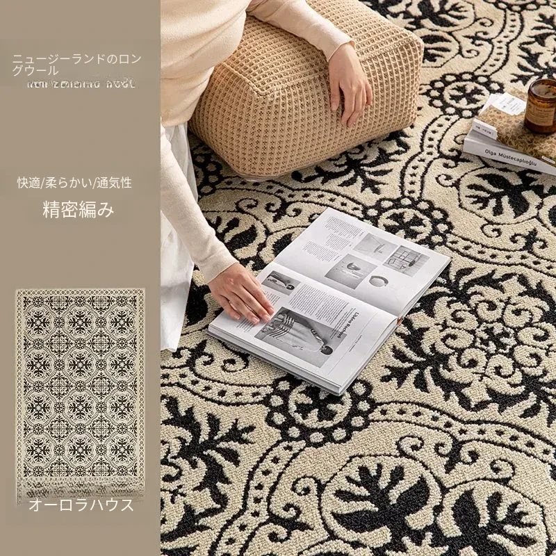 高級フランス製ウールカーペット|ラグジュアリー感溢れるリビング、アメリカンアンティークスタイルの寝室に最適|侘び寂びを感じるティーテーブルマット&ベッドサイドラグ
