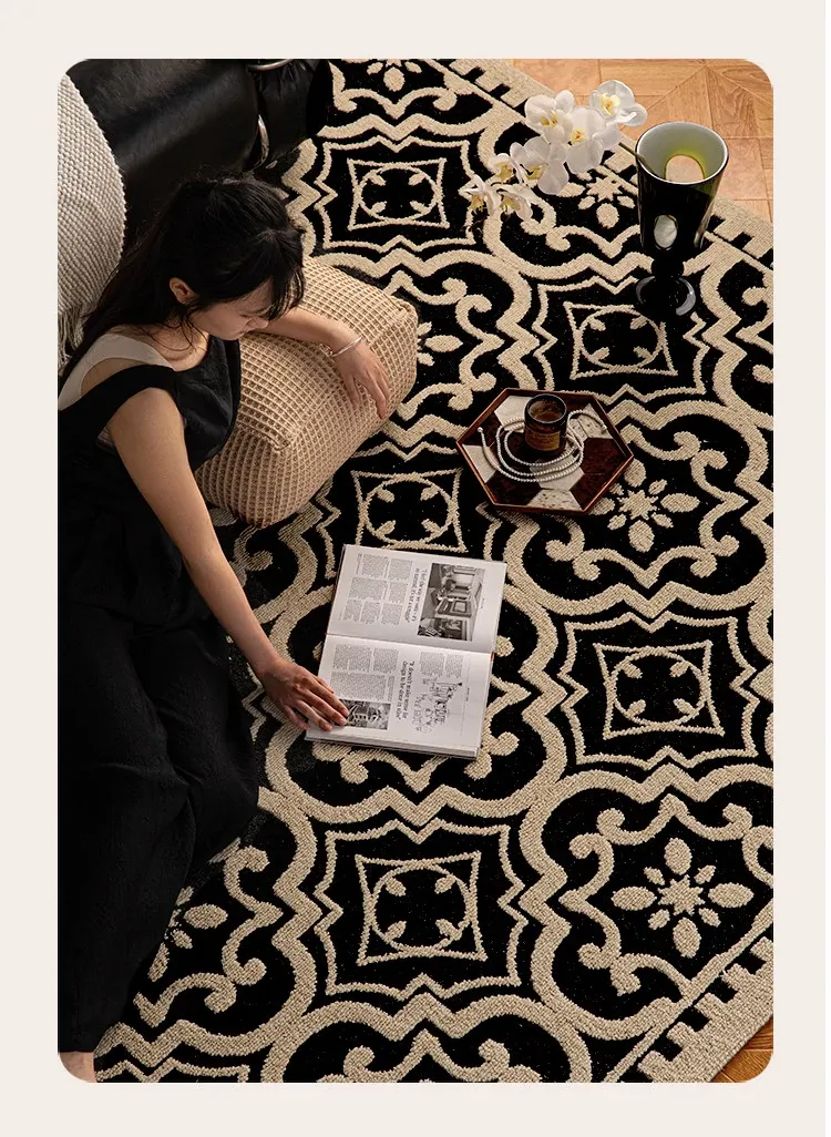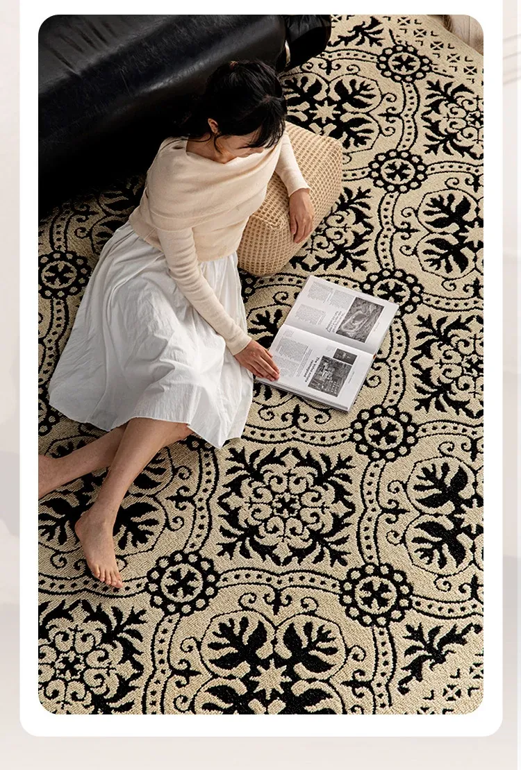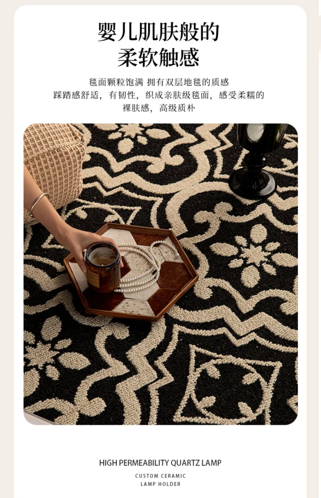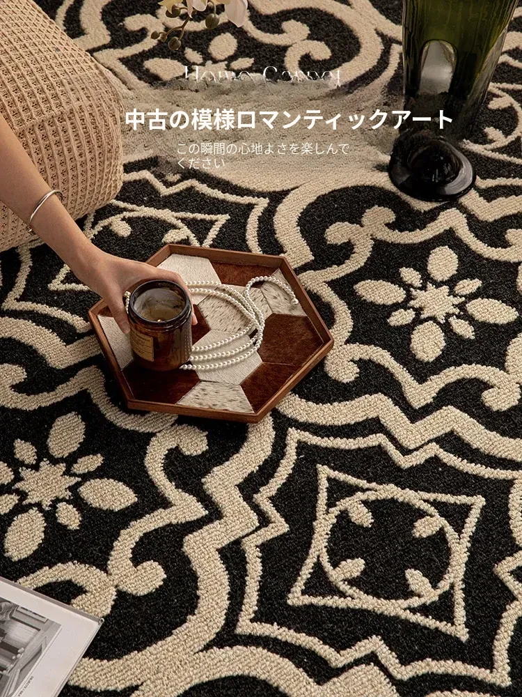 高級フランス製ウールカーペット|ラグジュアリー感溢れるリビング、アメリカンアンティークスタイルの寝室に最適|侘び寂びを感じるティーテーブルマット&ベッドサイドラグ