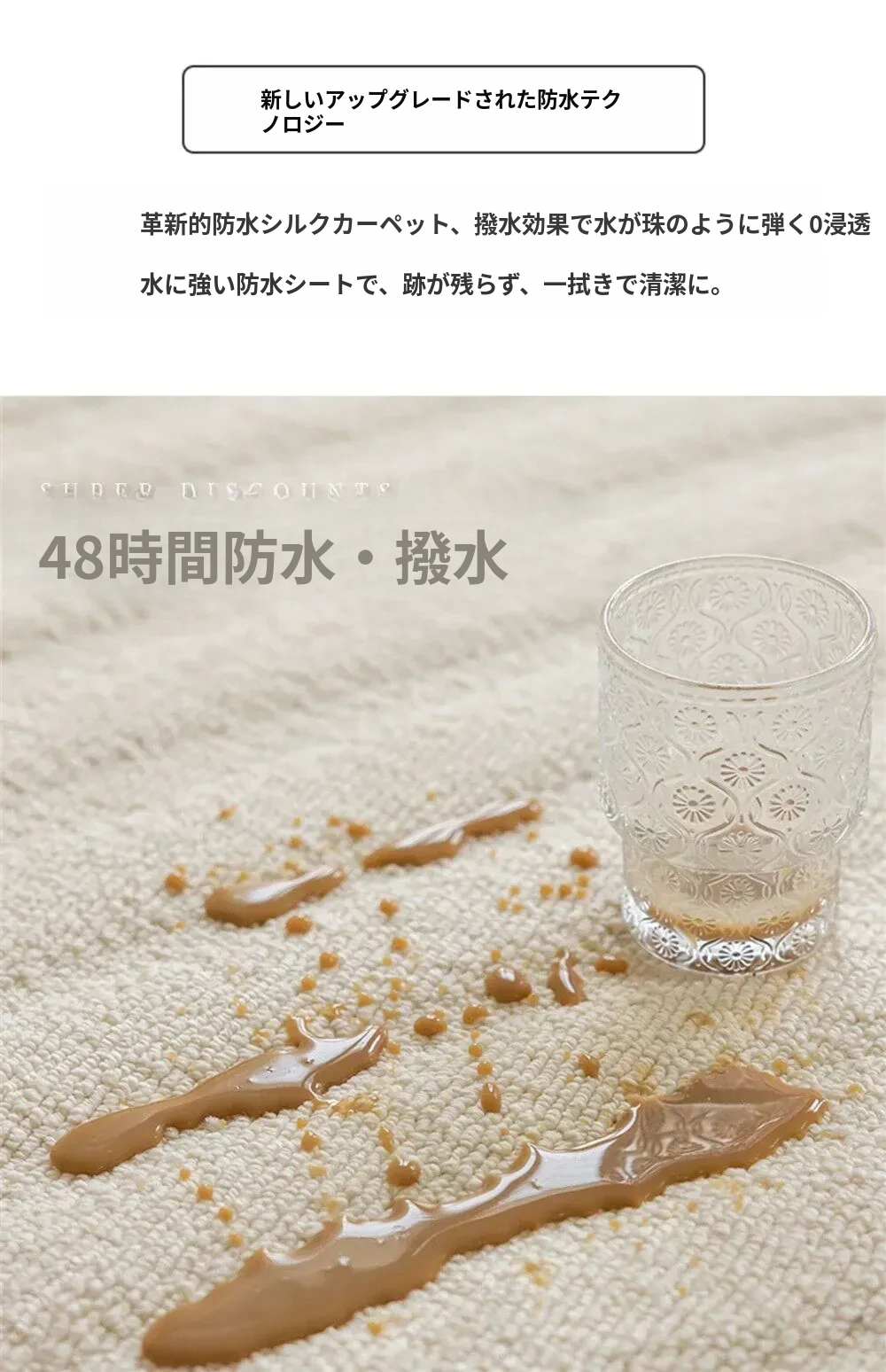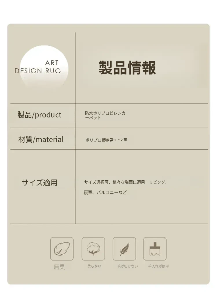 完全防水・防汚のリビング用カーペット!お手入れ簡単、洗わずにクリーン!リラックスしたソファやテーブルのデコレーションに最適。高級感溢れる軽やかなデザインで、寝室のベッドサイドにもぴったり!