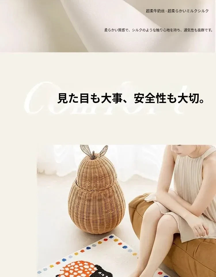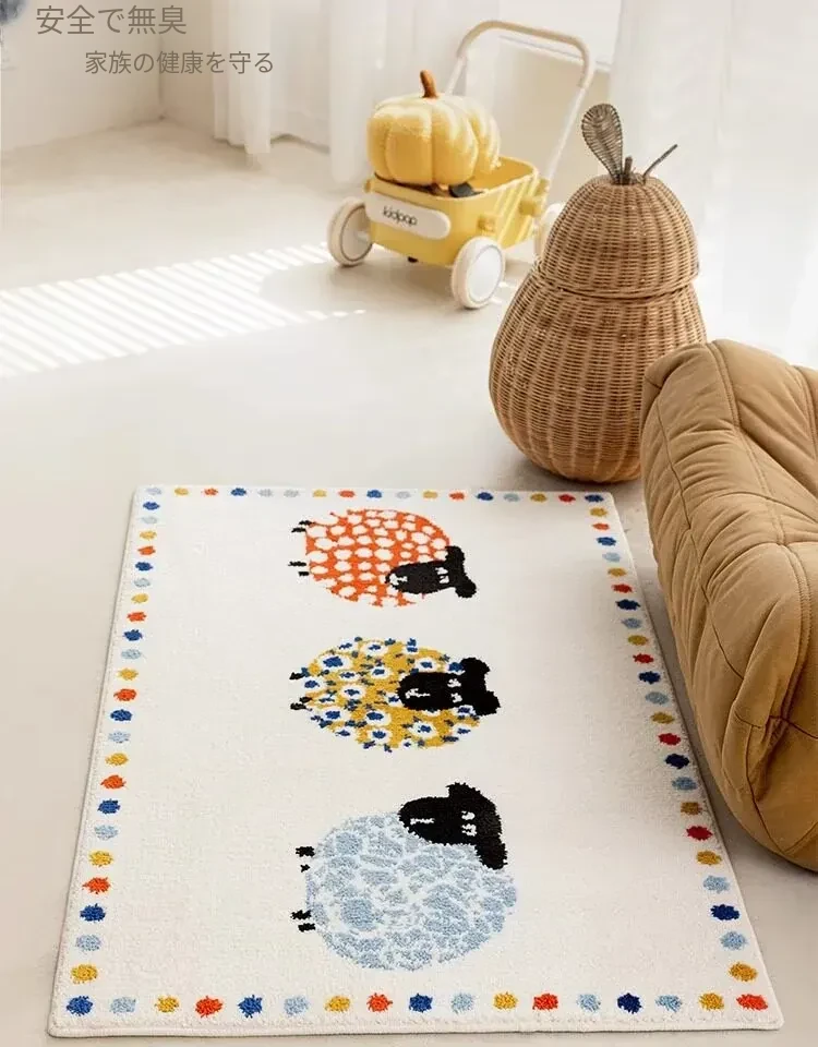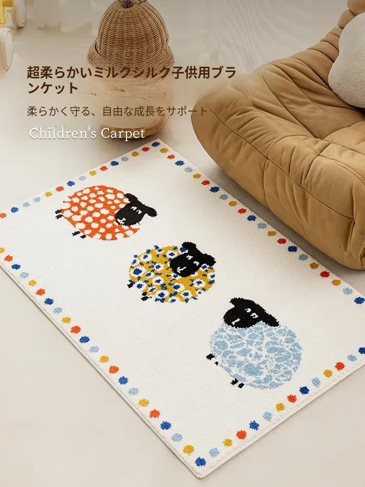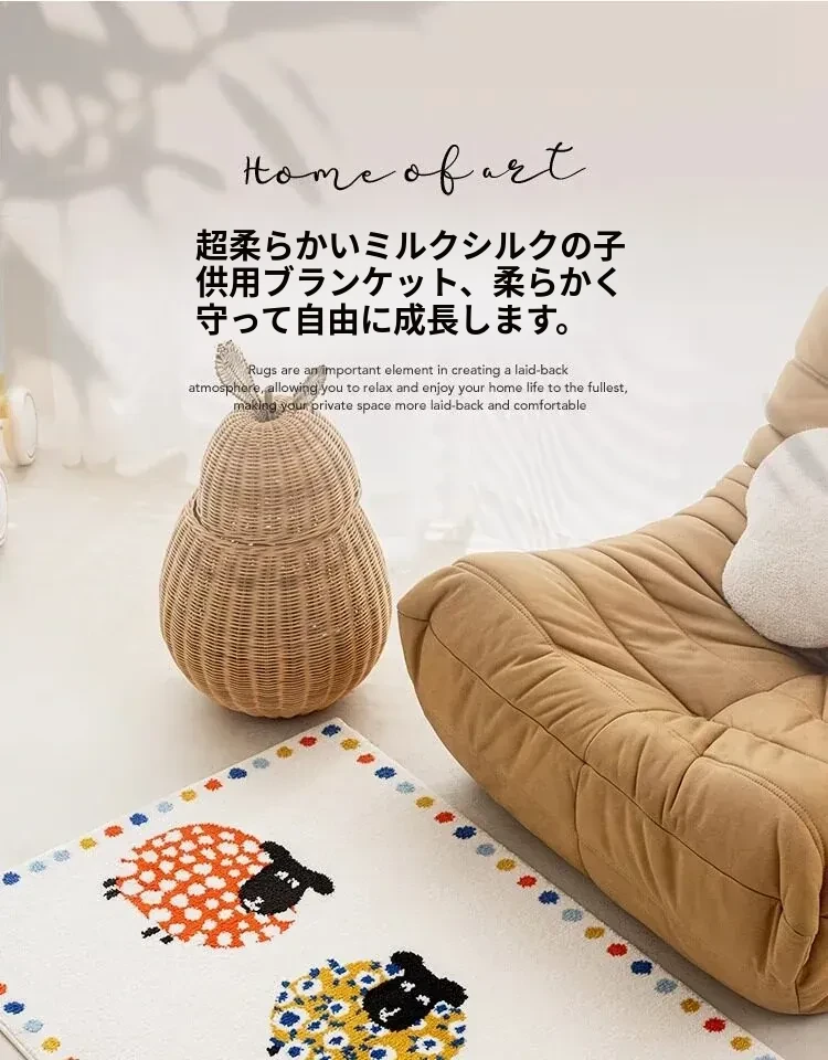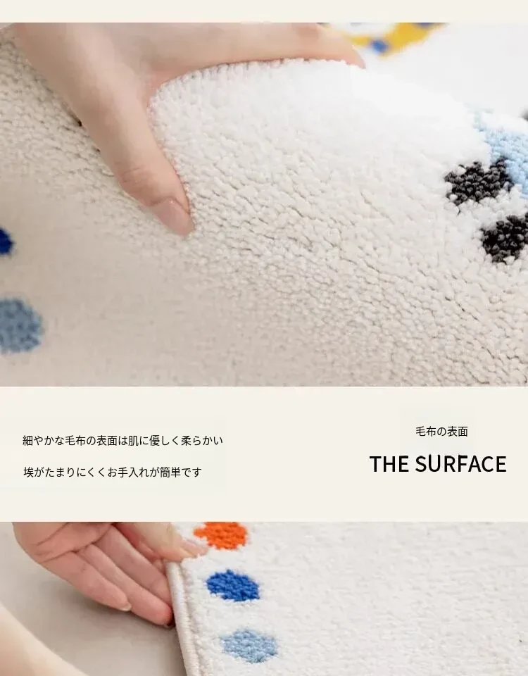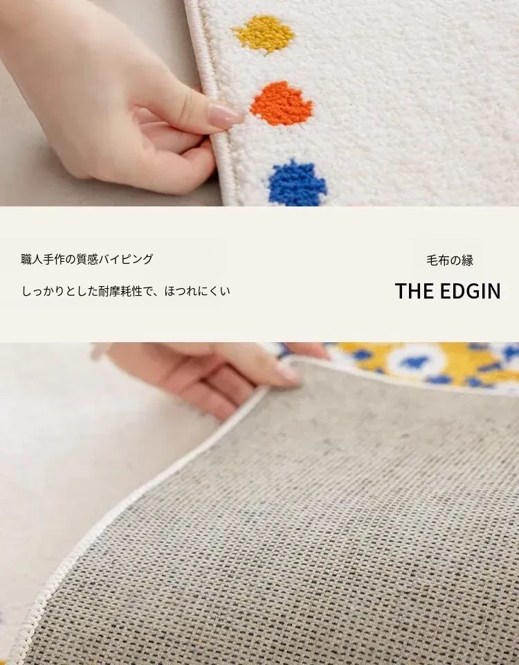 牛乳シルク機織り子供用カーペット|読書エリア・ベッドサイドマット|男女兼用・安全対策・厚手デザイン|シンプルでおしゃれなフロアマット