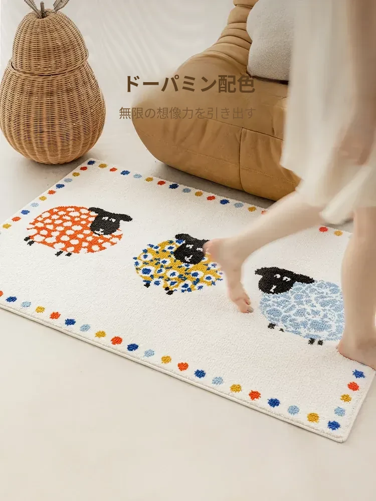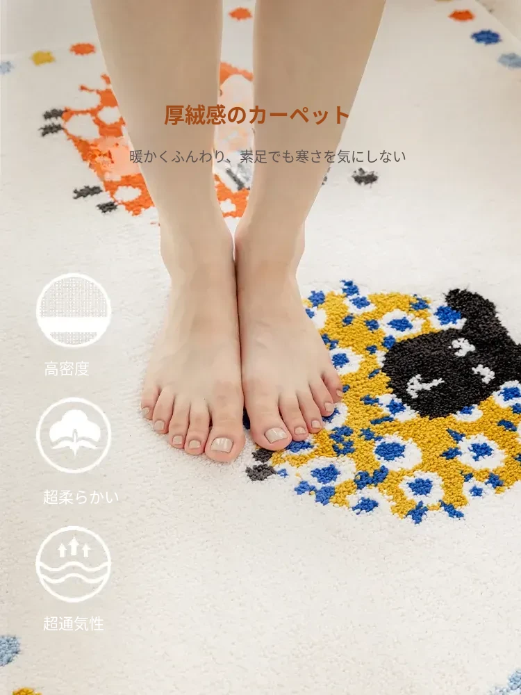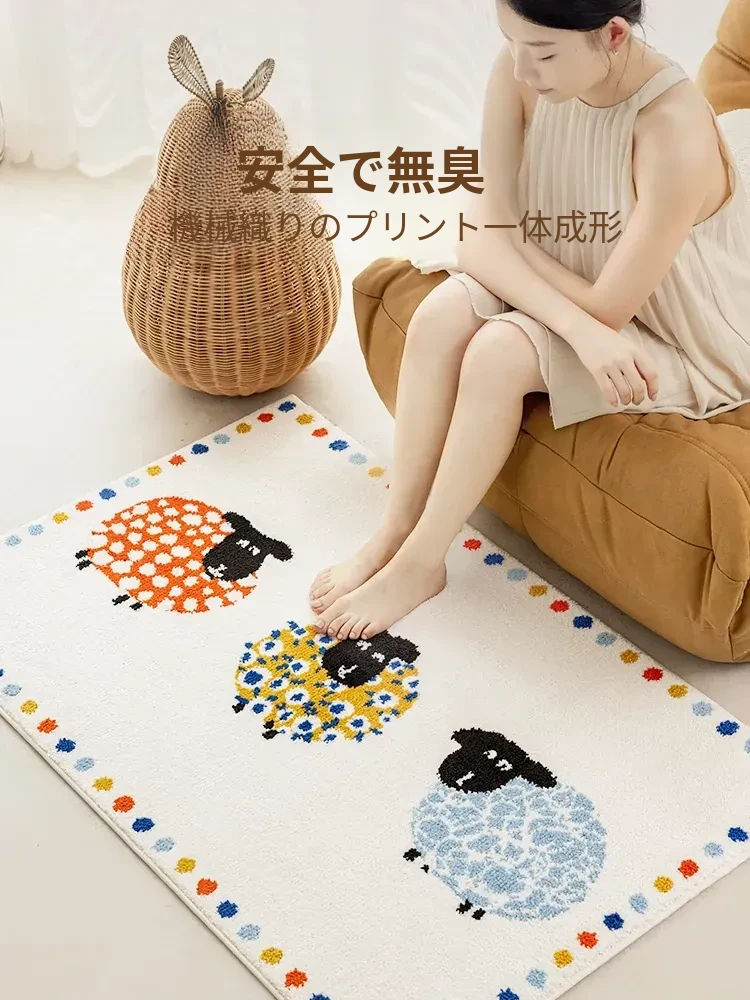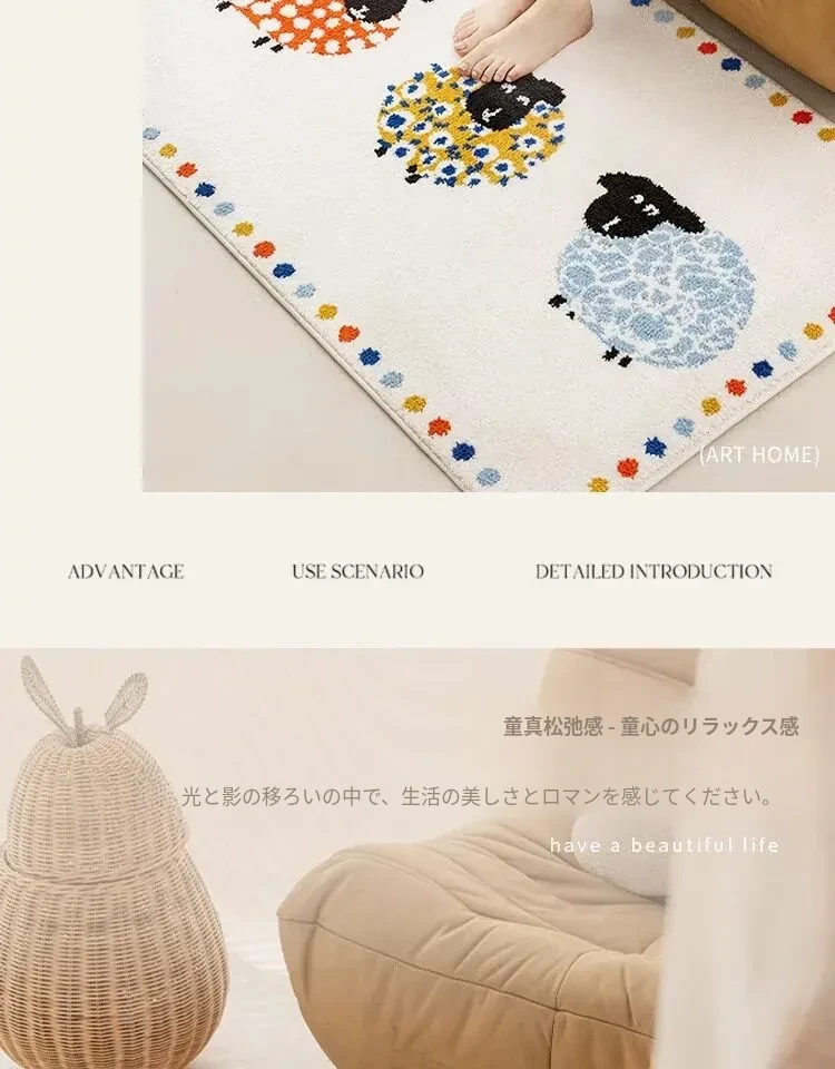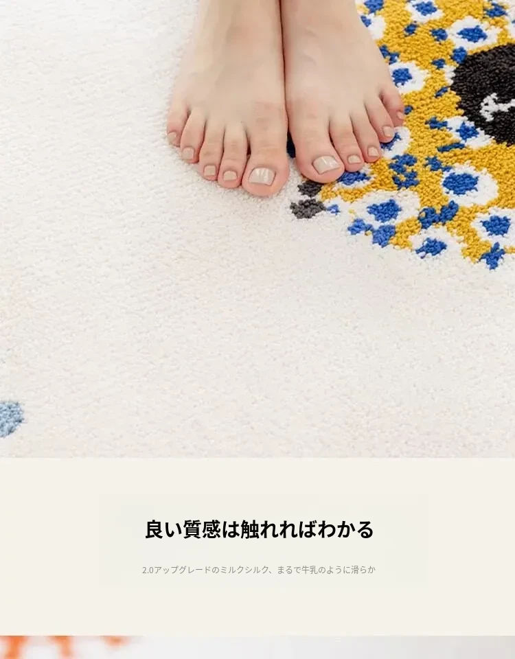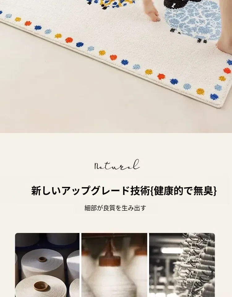牛乳シルク機織り子供用カーペット|読書エリア・ベッドサイドマット|男女兼用・安全対策・厚手デザイン|シンプルでおしゃれなフロアマット