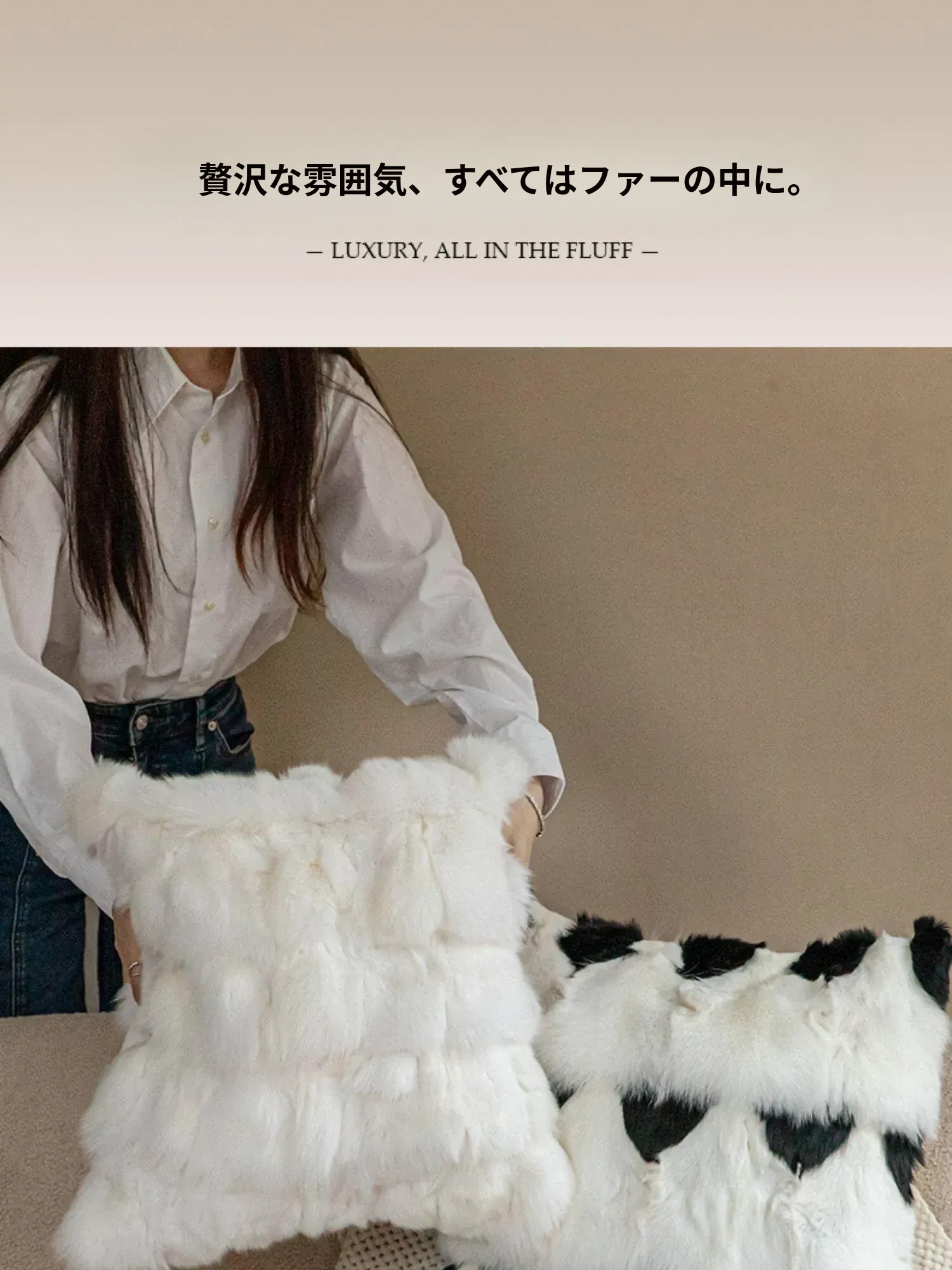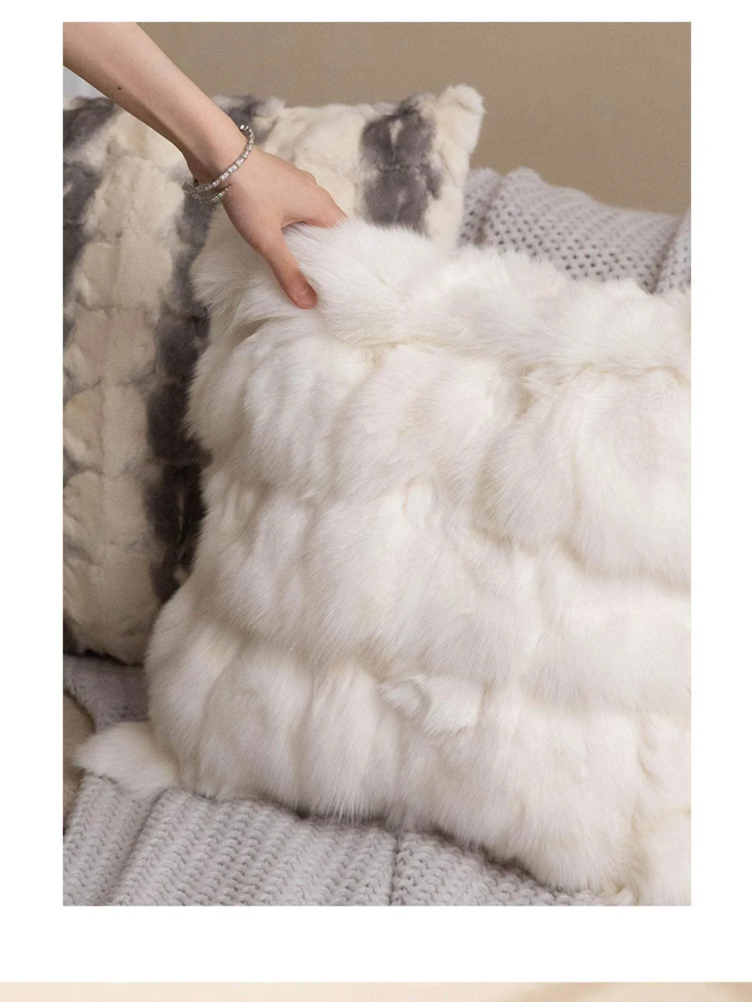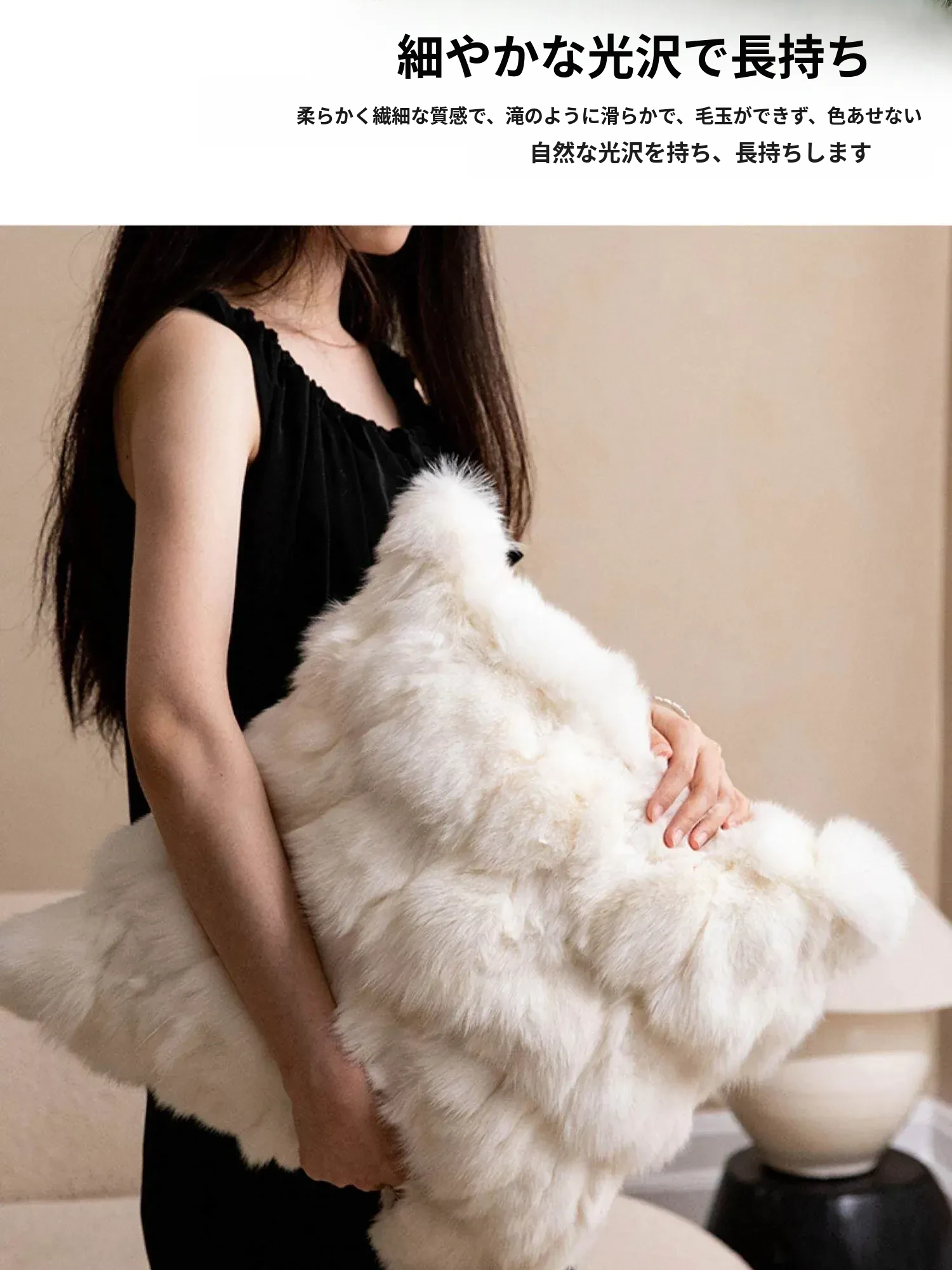 ミニマルデザインの本物のフォックスファー抱き枕 - 高級感あふれるリビングソファ用ファークッション、ベッドヘッドや窓辺にぴったりの腰枕。心地よさとスタイルを兼ね備えたアイテムで、お部屋を華やかに演出!
