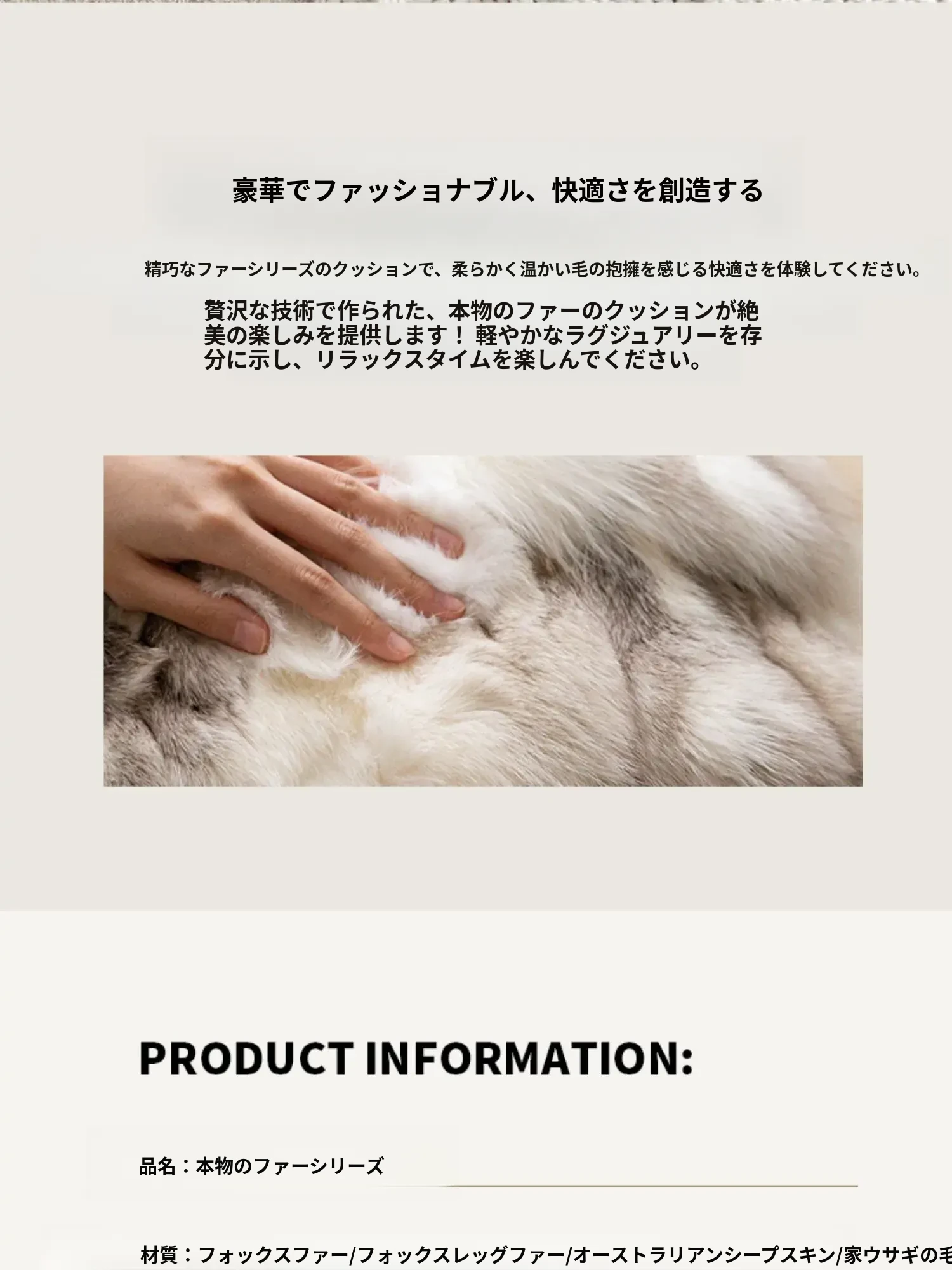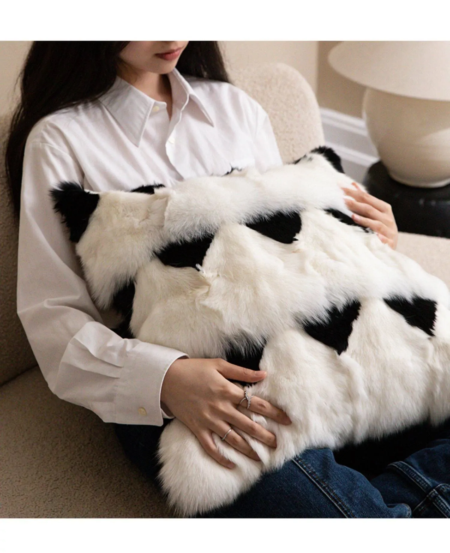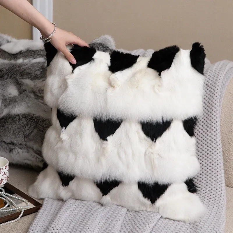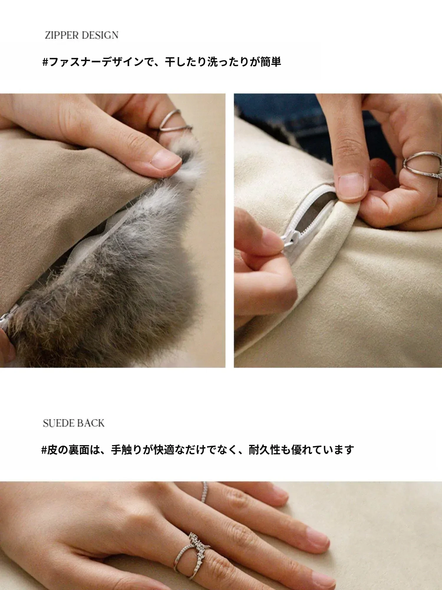 ミニマルデザインの本物のフォックスファー抱き枕 - 高級感あふれるリビングソファ用ファークッション、ベッドヘッドや窓辺にぴったりの腰枕。心地よさとスタイルを兼ね備えたアイテムで、お部屋を華やかに演出!
