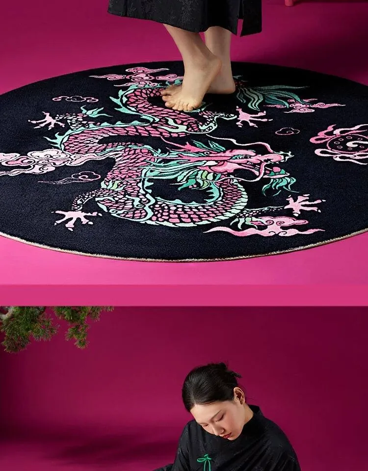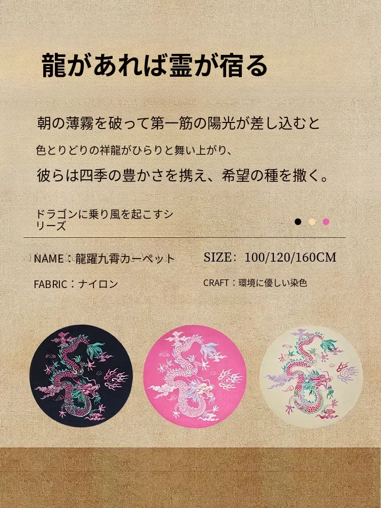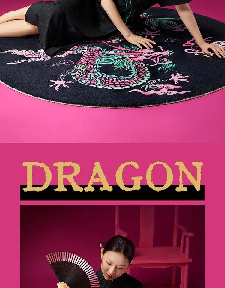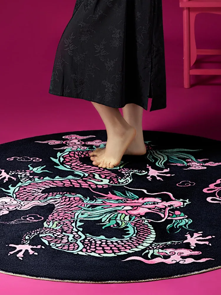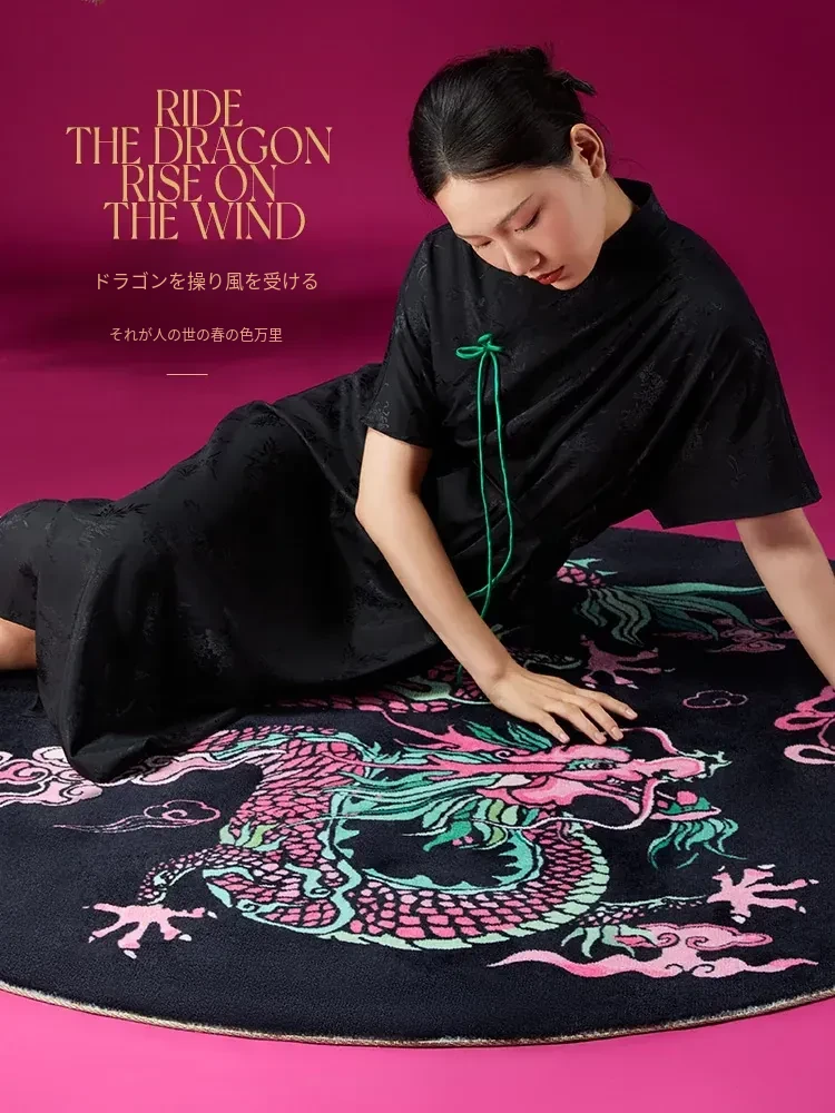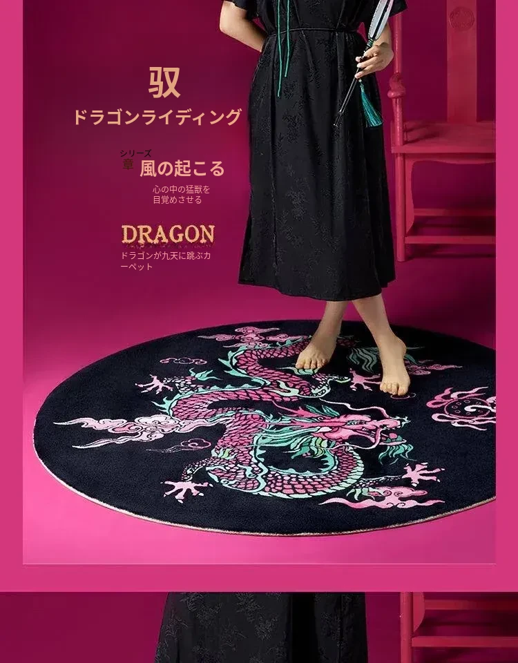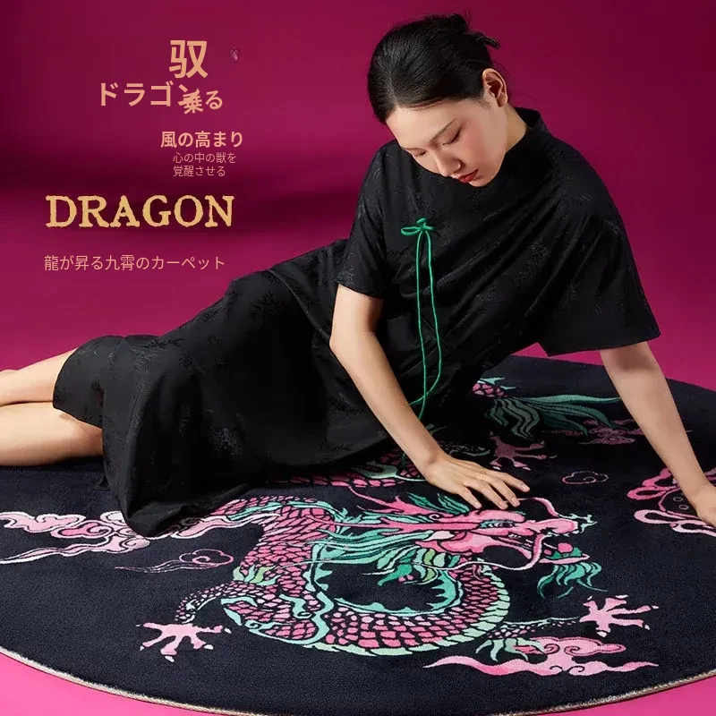 驭龍乗風起シリーズ-龍跃九霄黒色ナイロンカーペット-円形