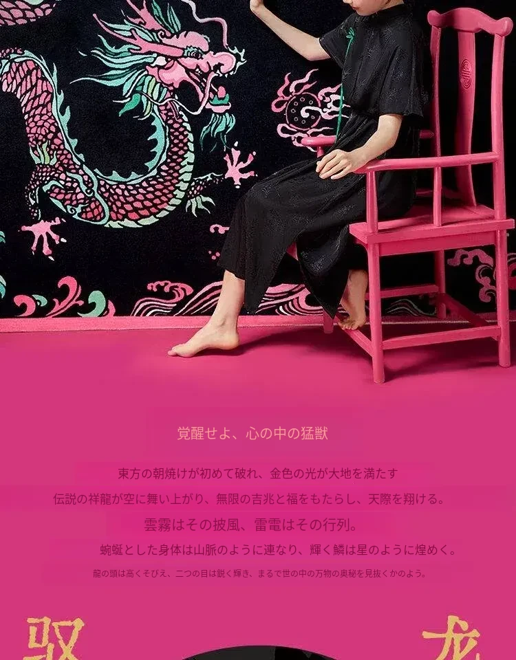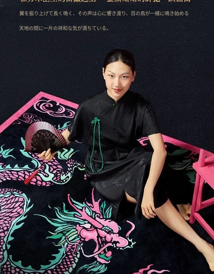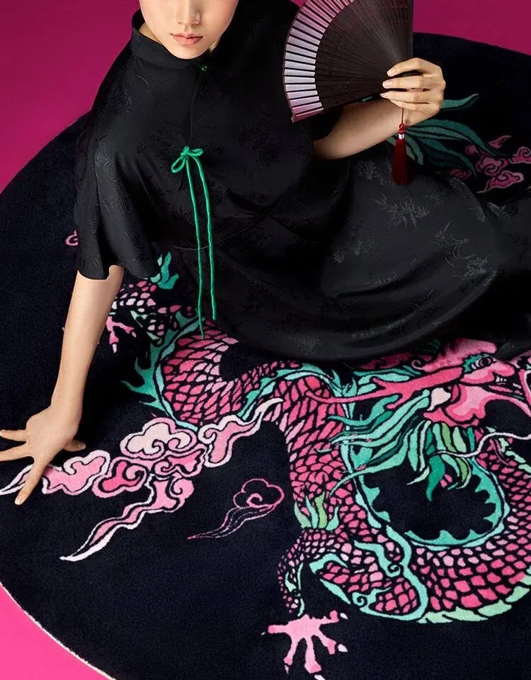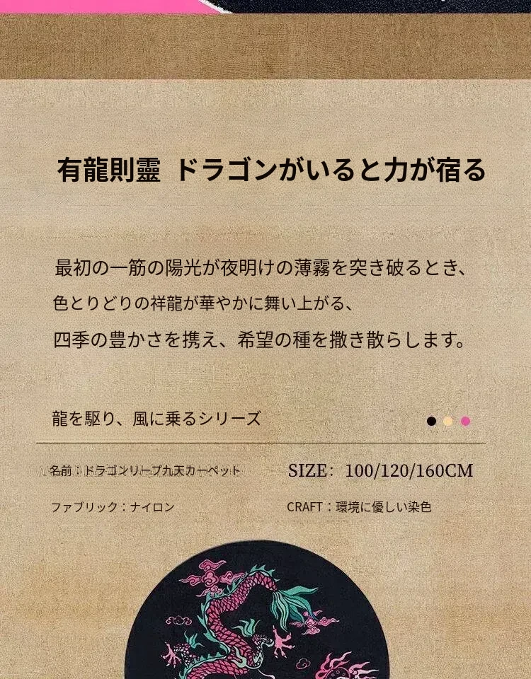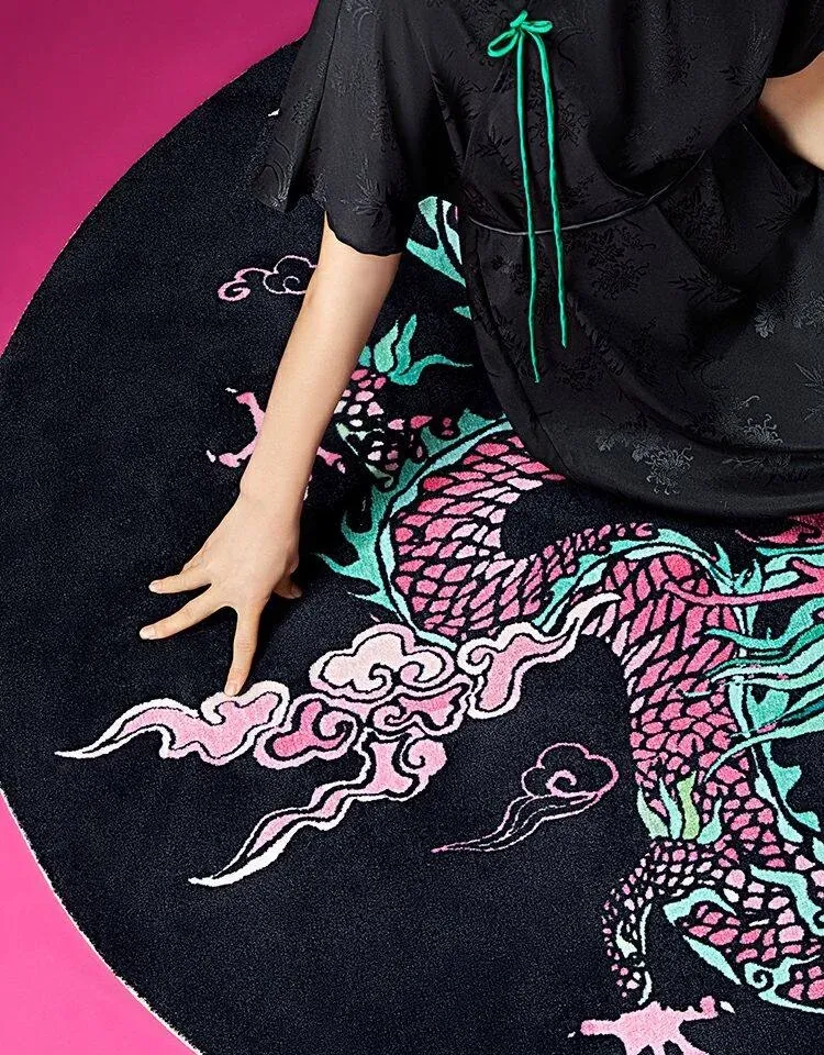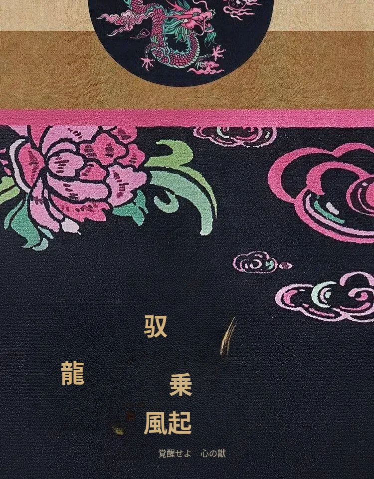 驭龍乗風起シリーズ-龍跃九霄黒色ナイロンカーペット-円形