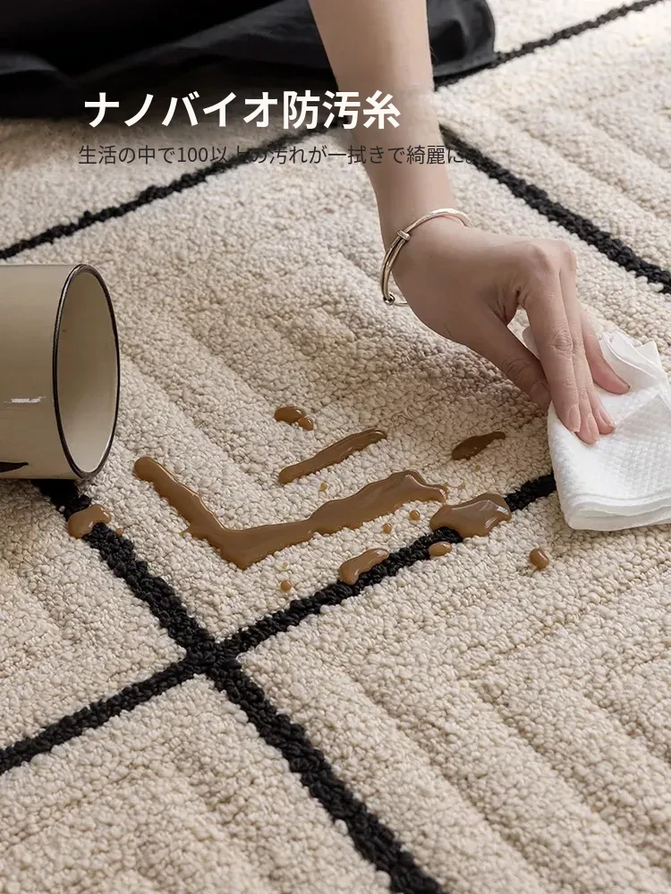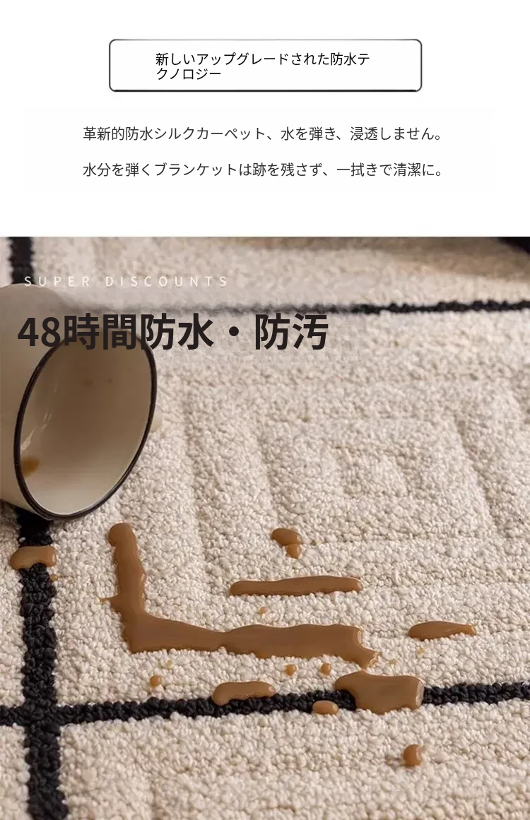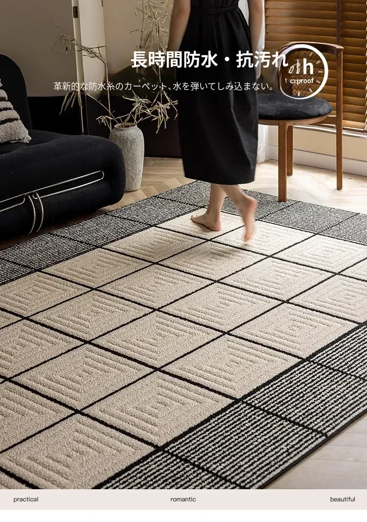 モダンシンプルなリビングルームカーペット|防水・防汚仕様|ソファやテーブル下に最適|厚手で防音効果あり|クローゼットやベッドサイドにもぴったり!おしゃれで機能的なインテリアを実現!