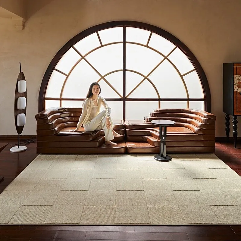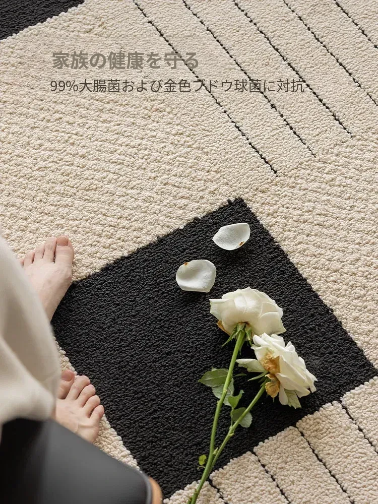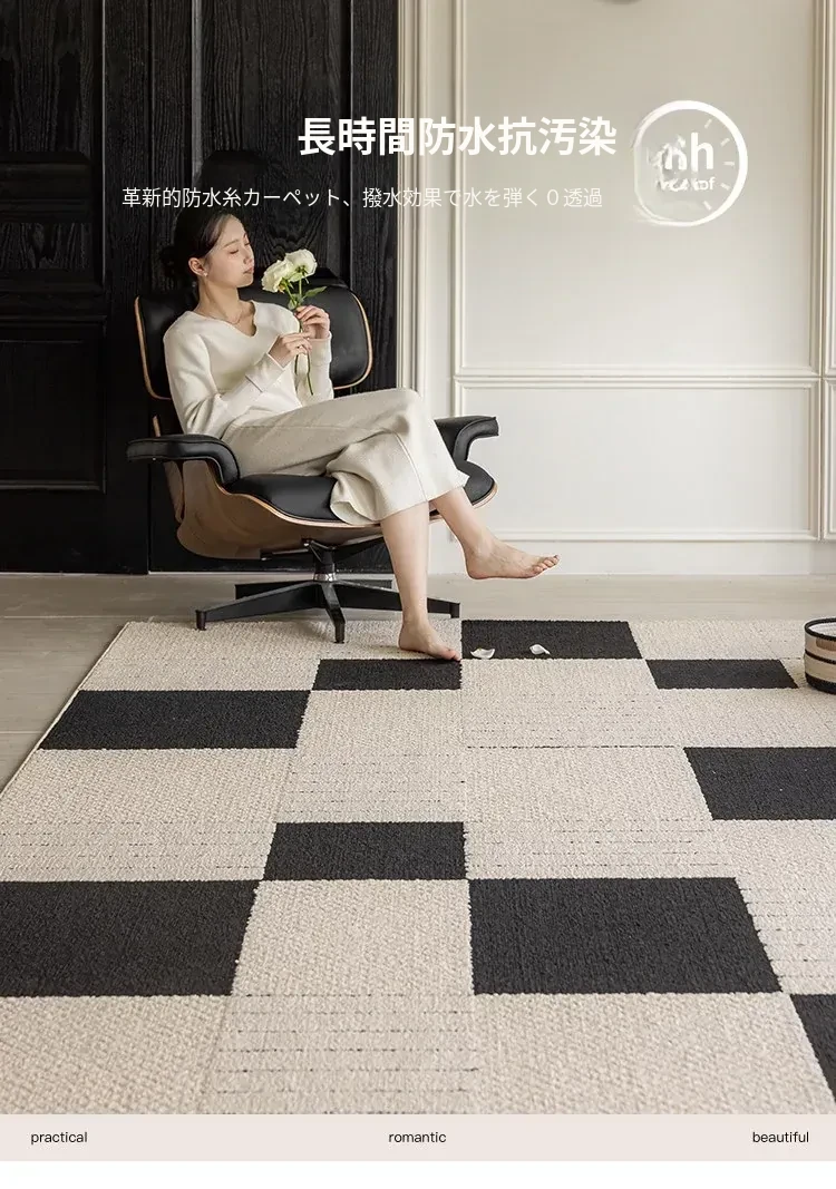 現代的シンプルなリビング用カーペット - 高級感溢れるお手入れ不要のロッキングチェア&ソファ用ブランケット。防水・防汚で、汚れに強いテーブルマット。あなたのリビングをスタイリッシュに演出します!